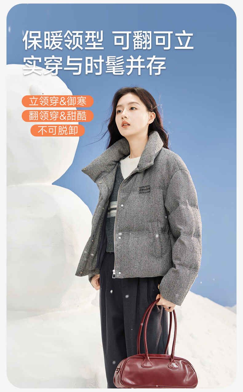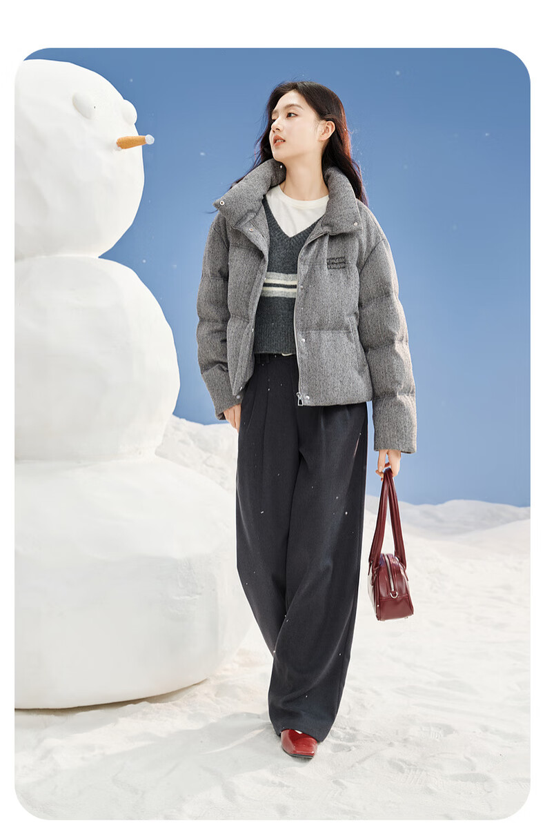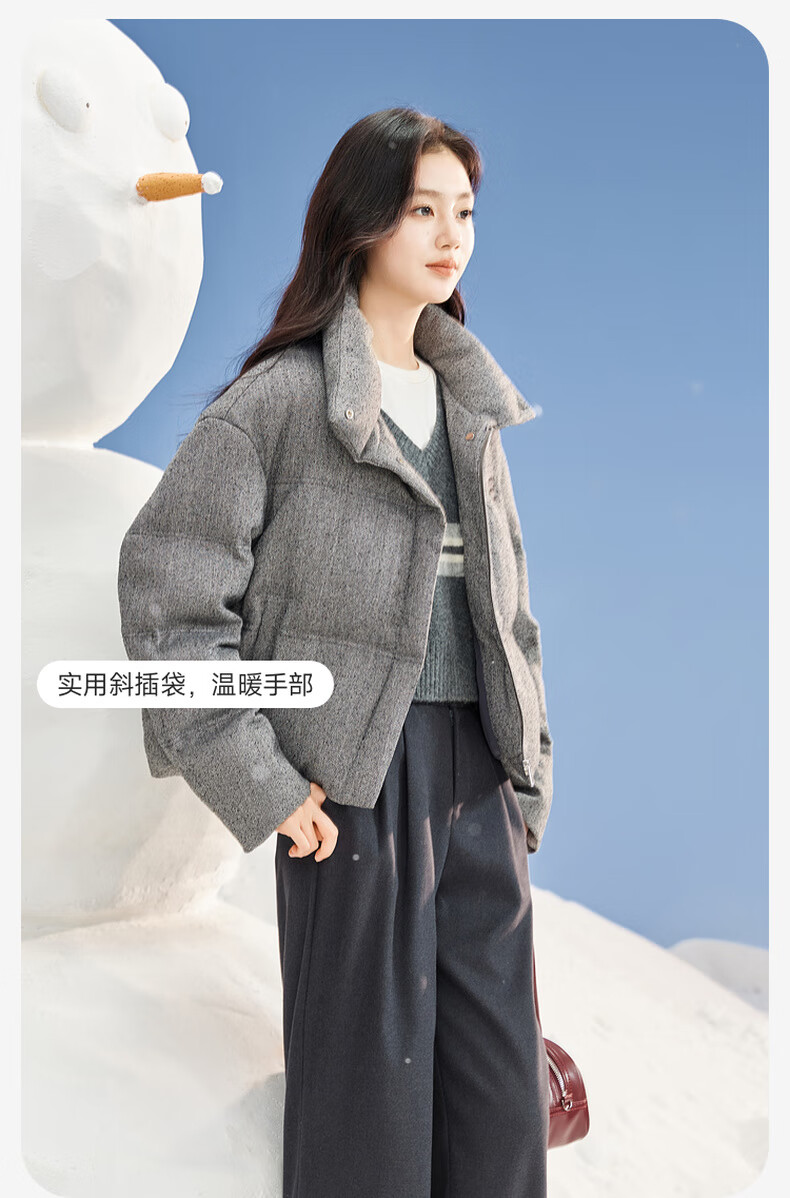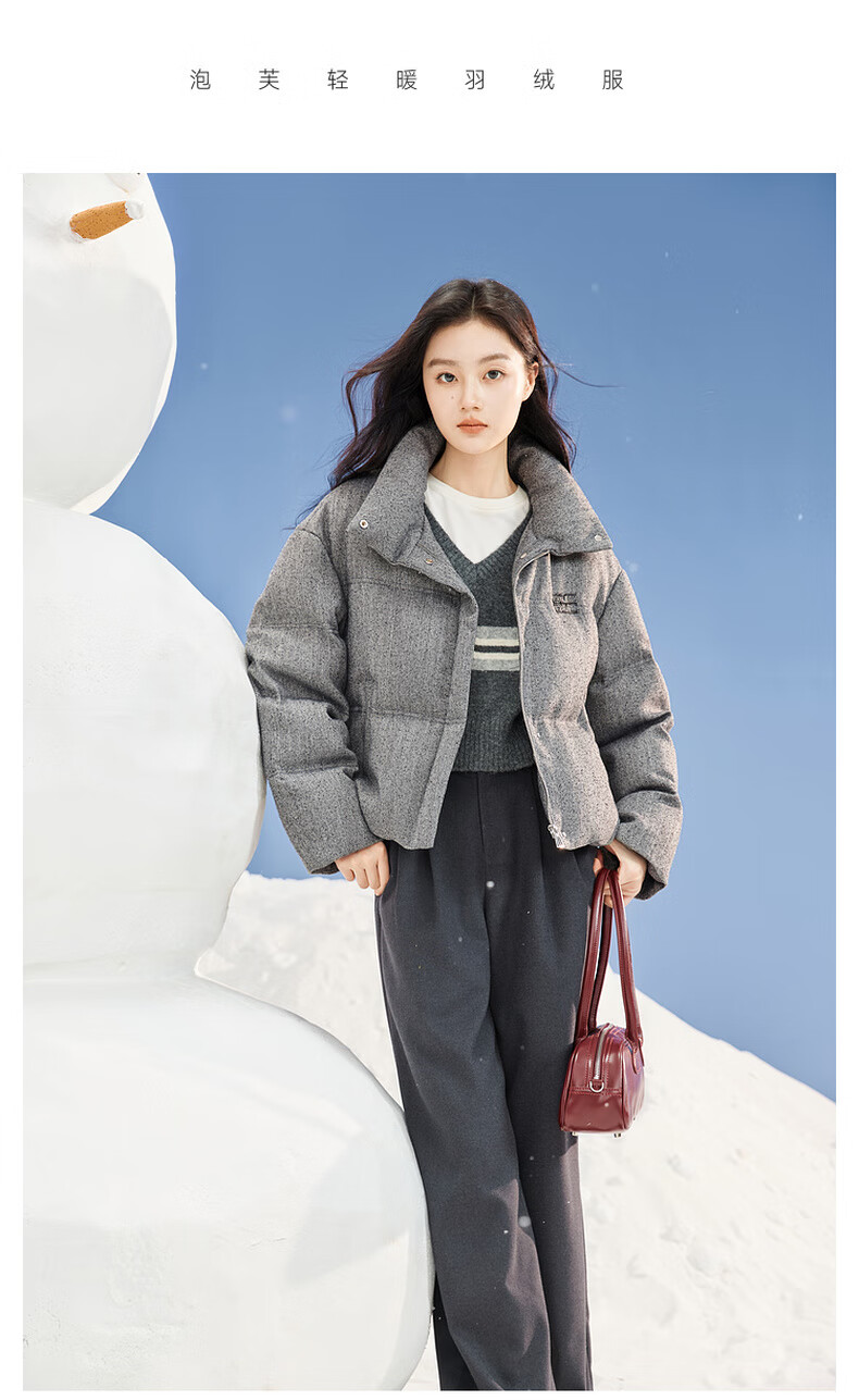 Xiangying Stand Collar Gray Down Jacket Women's Short 2025 Winter New Small High-end Bread Jacket Gray S