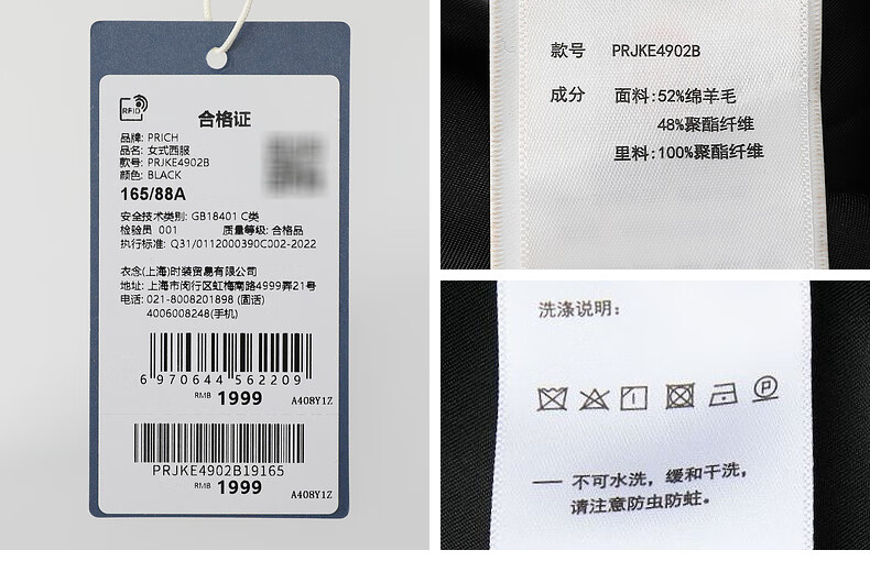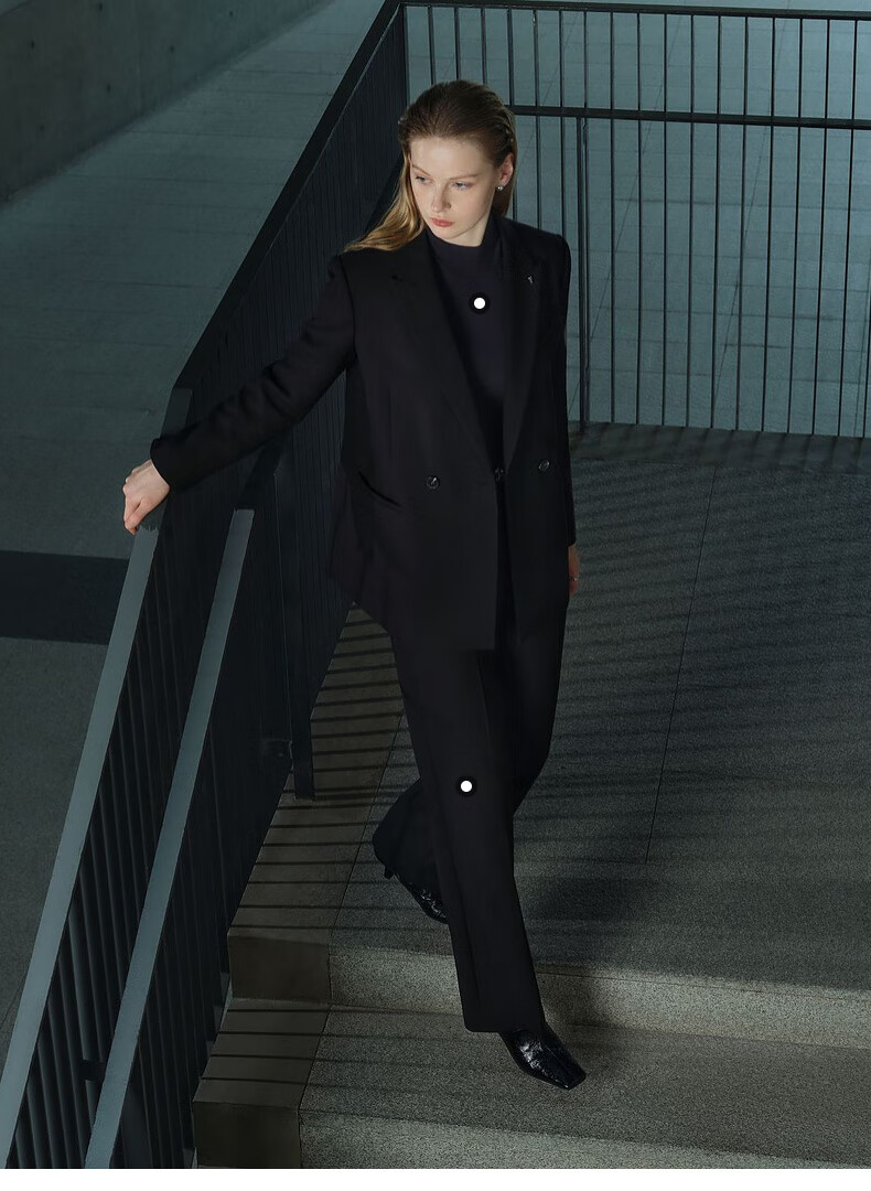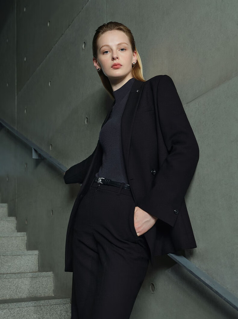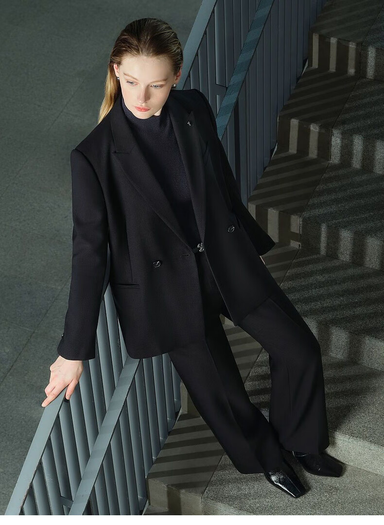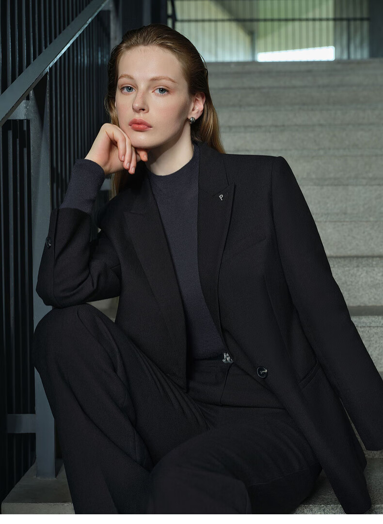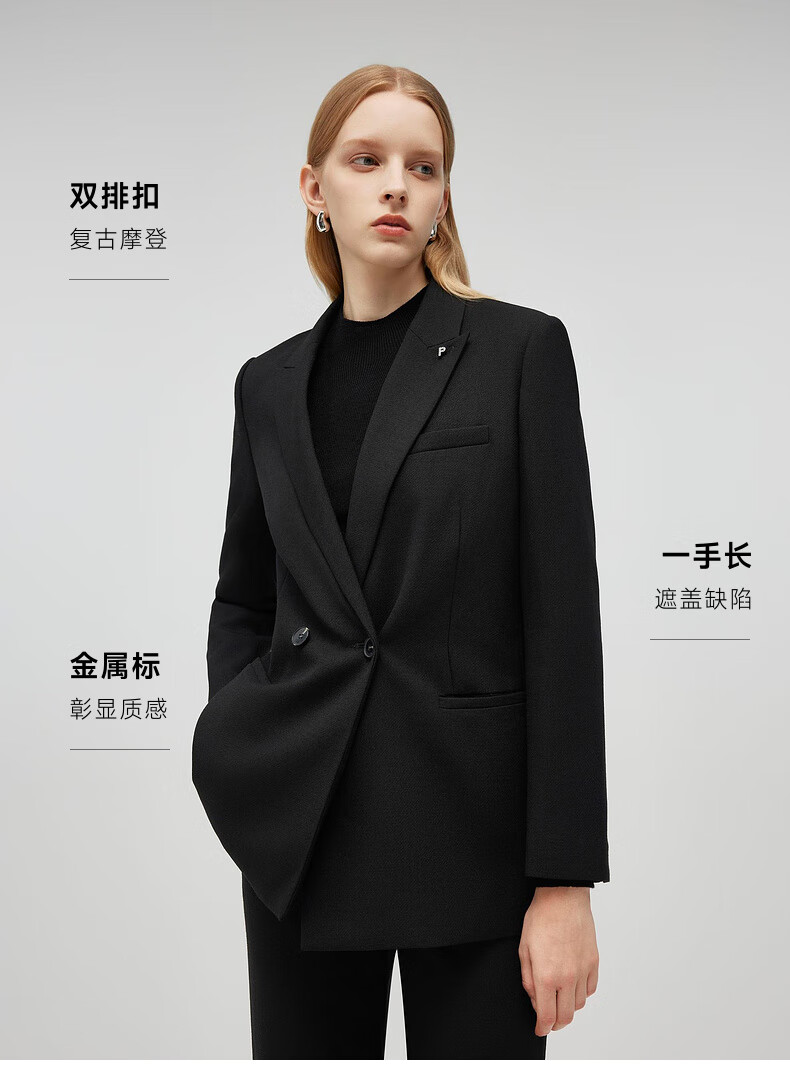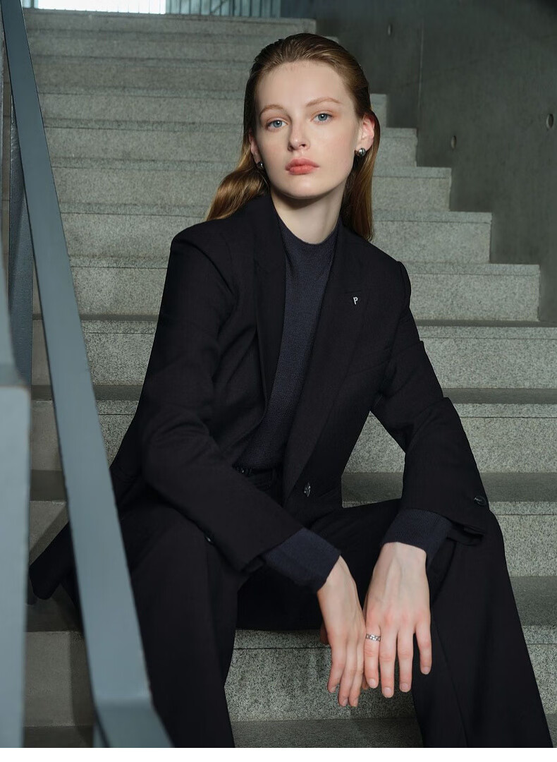 PRICH Merino Wool Double-breasted Suit Suit Spring and Autumn New Loose Slim Jacket Women 19 Black Suit L 165