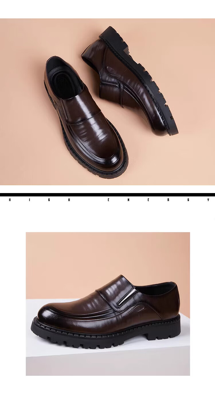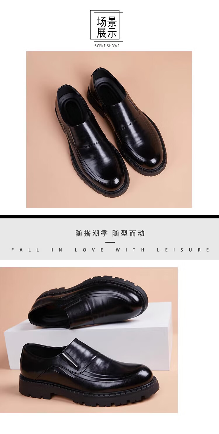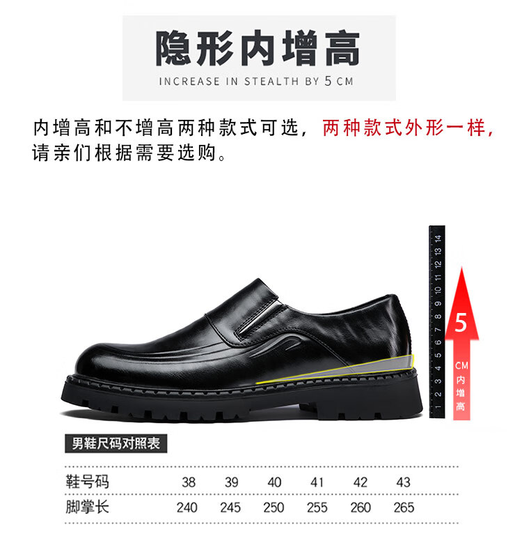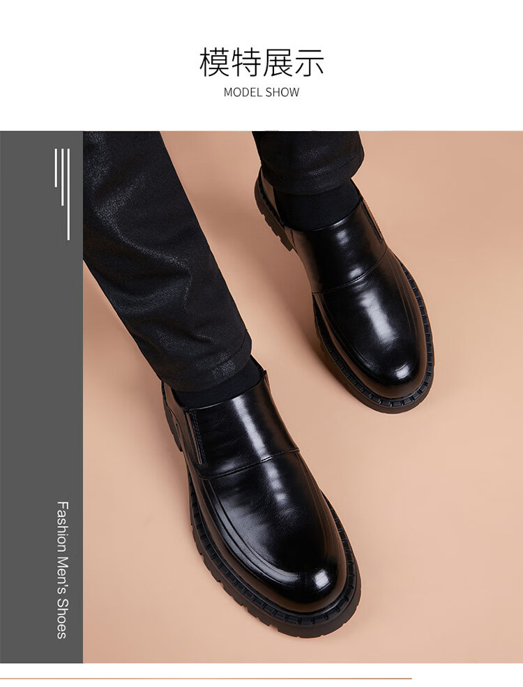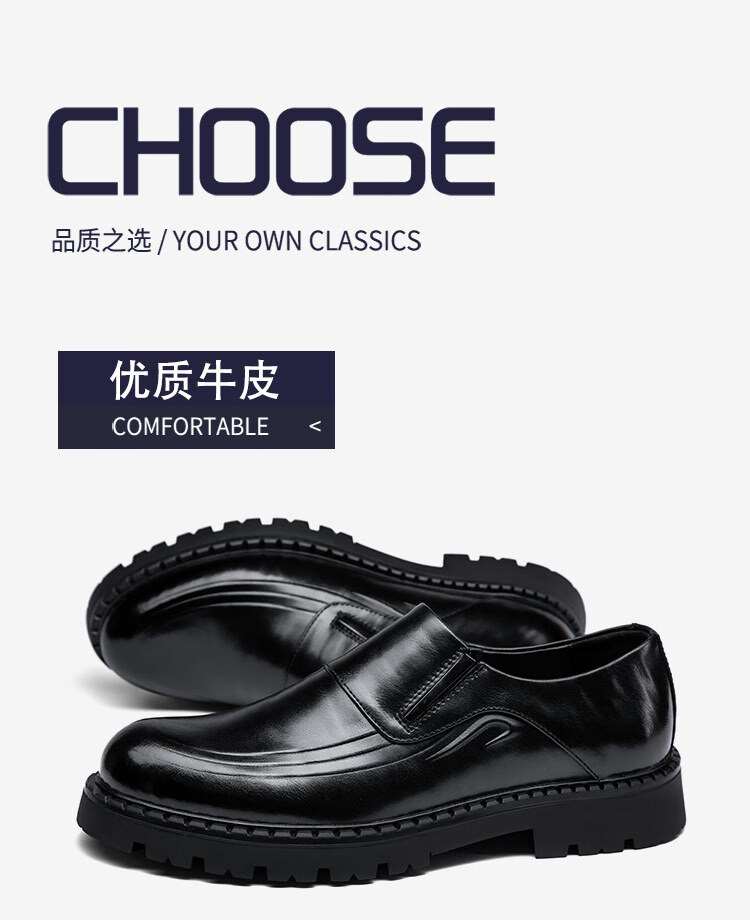 CARTELO casual leather shoes for men, slip-ons, soft leather business men's shoes, autumn fashionable genuine leather thick-soled inner height-increasing derby shoes, black, non-increasing 40