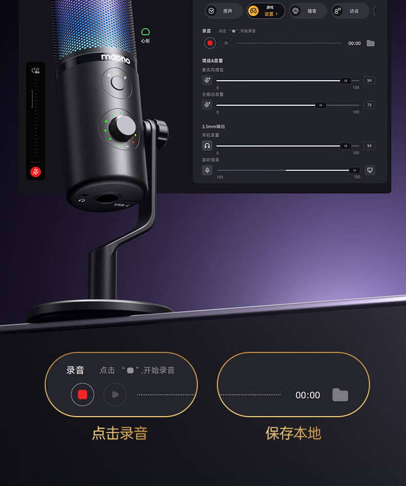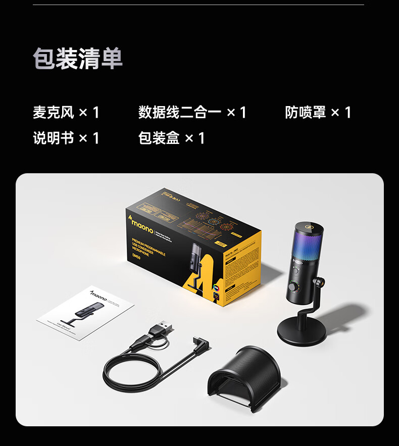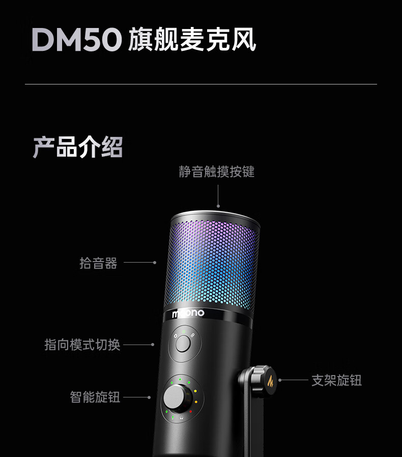 Maono live broadcast microphone computer desktop game e-sports noise reduction radio microphone USB desktop microphone mobile phone recording singing condenser microphone bracket anchor dedicated Maono DM50 DM50 cantilever model (noise reduction + reverberation + voice change) free software adjustment
