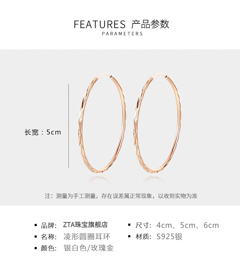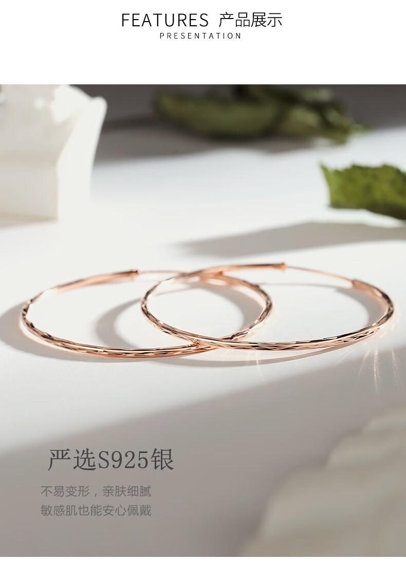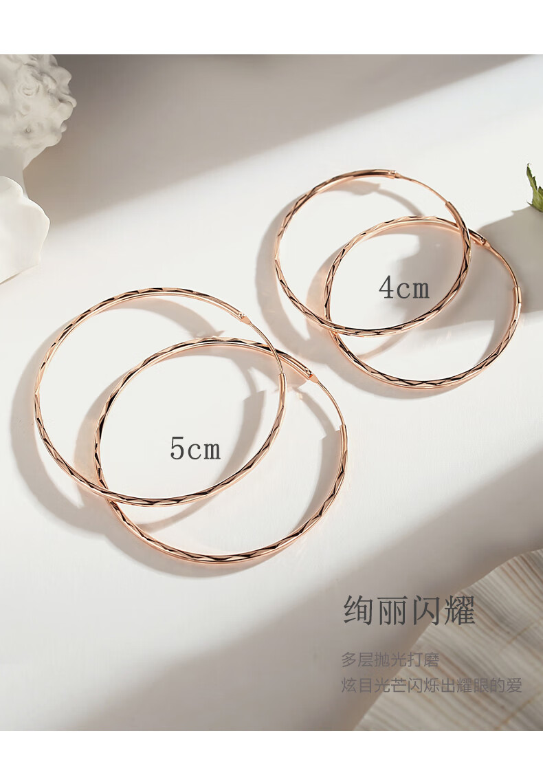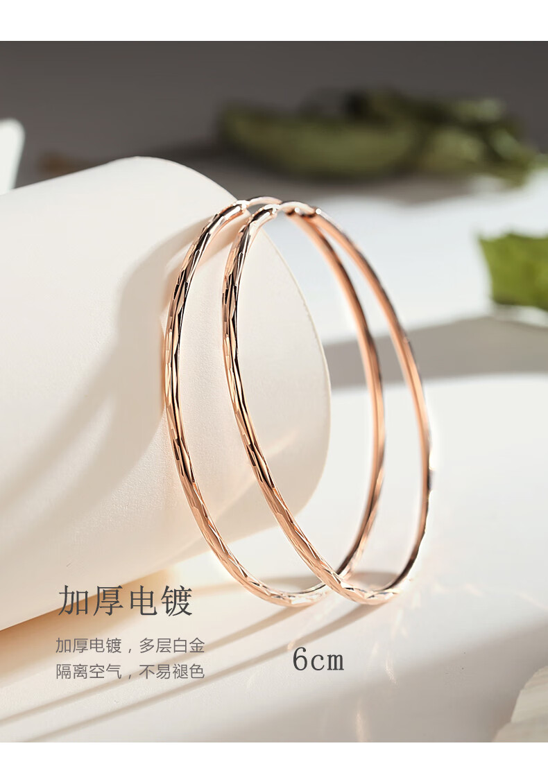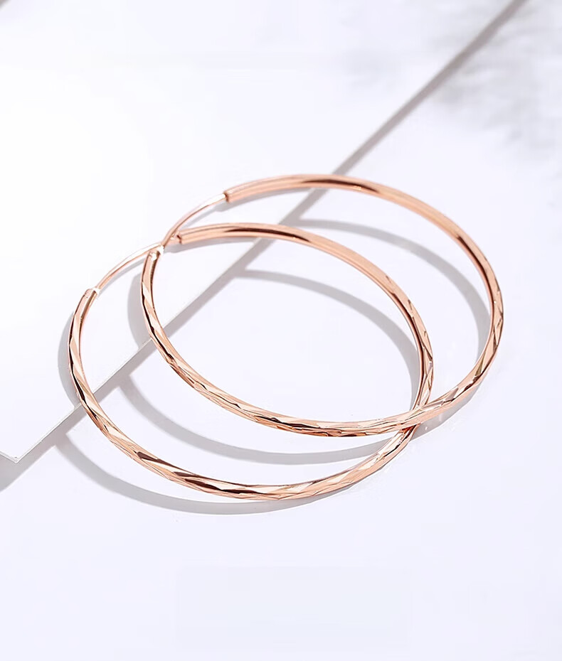 18K gold earrings, plain hoops, large earrings for women, gold and silver rose gold summer earrings 2024, extra large rose gold earrings (diameter 6 cm)