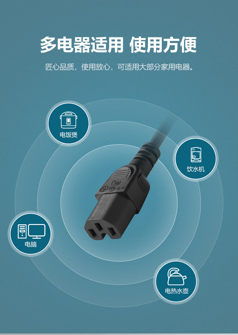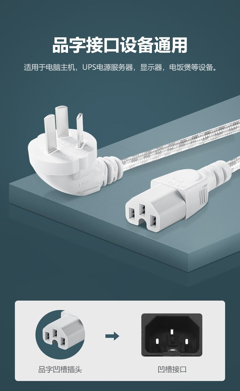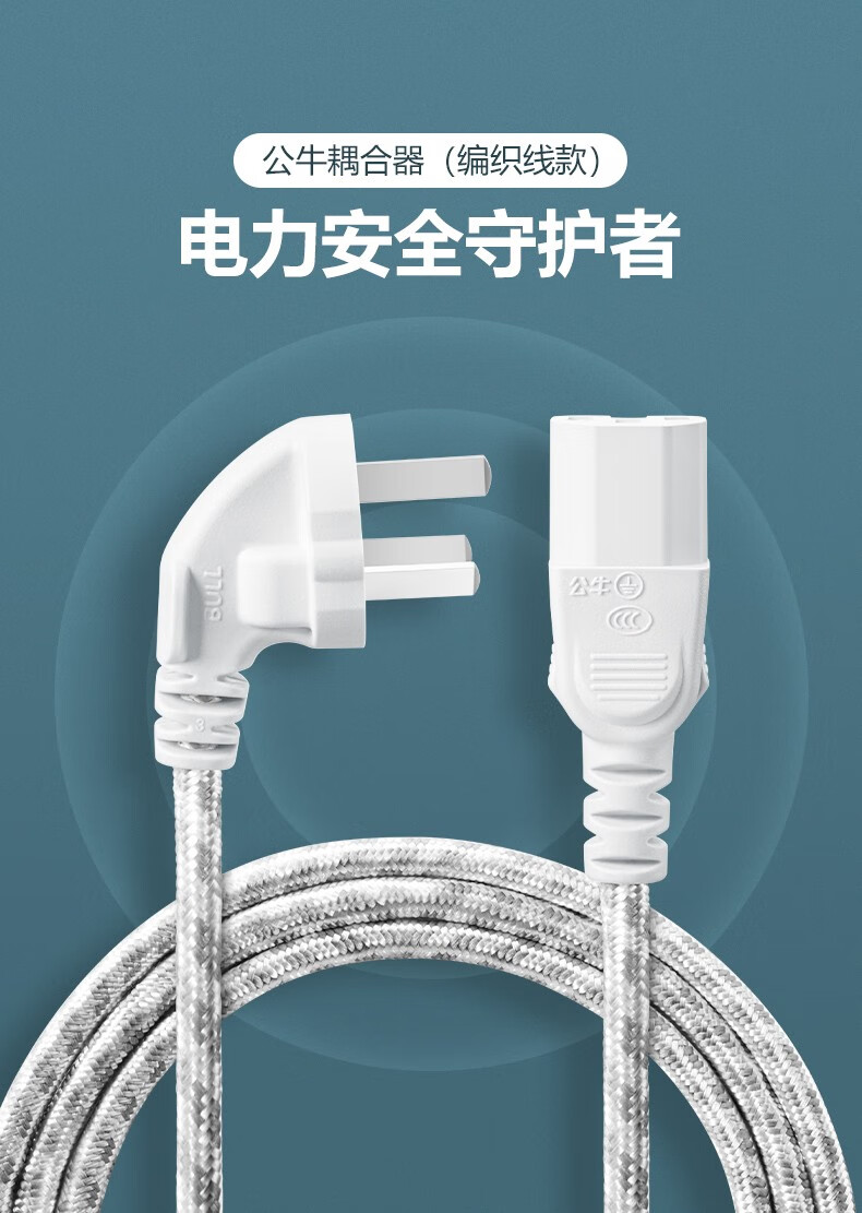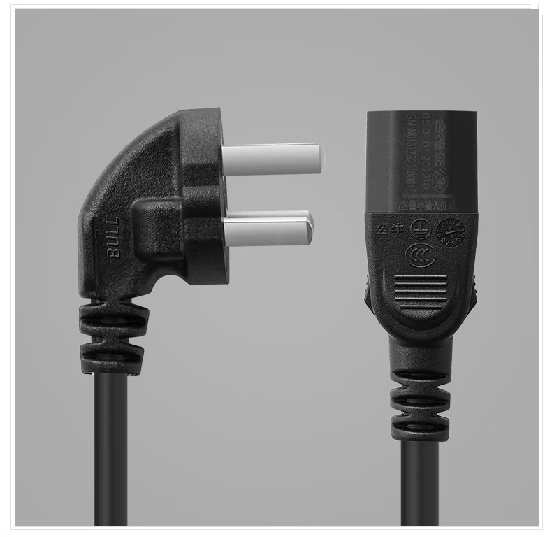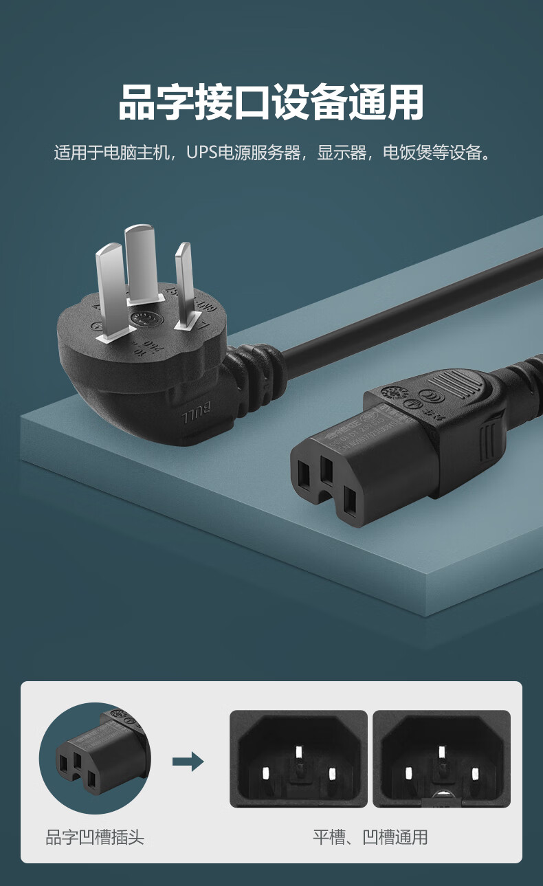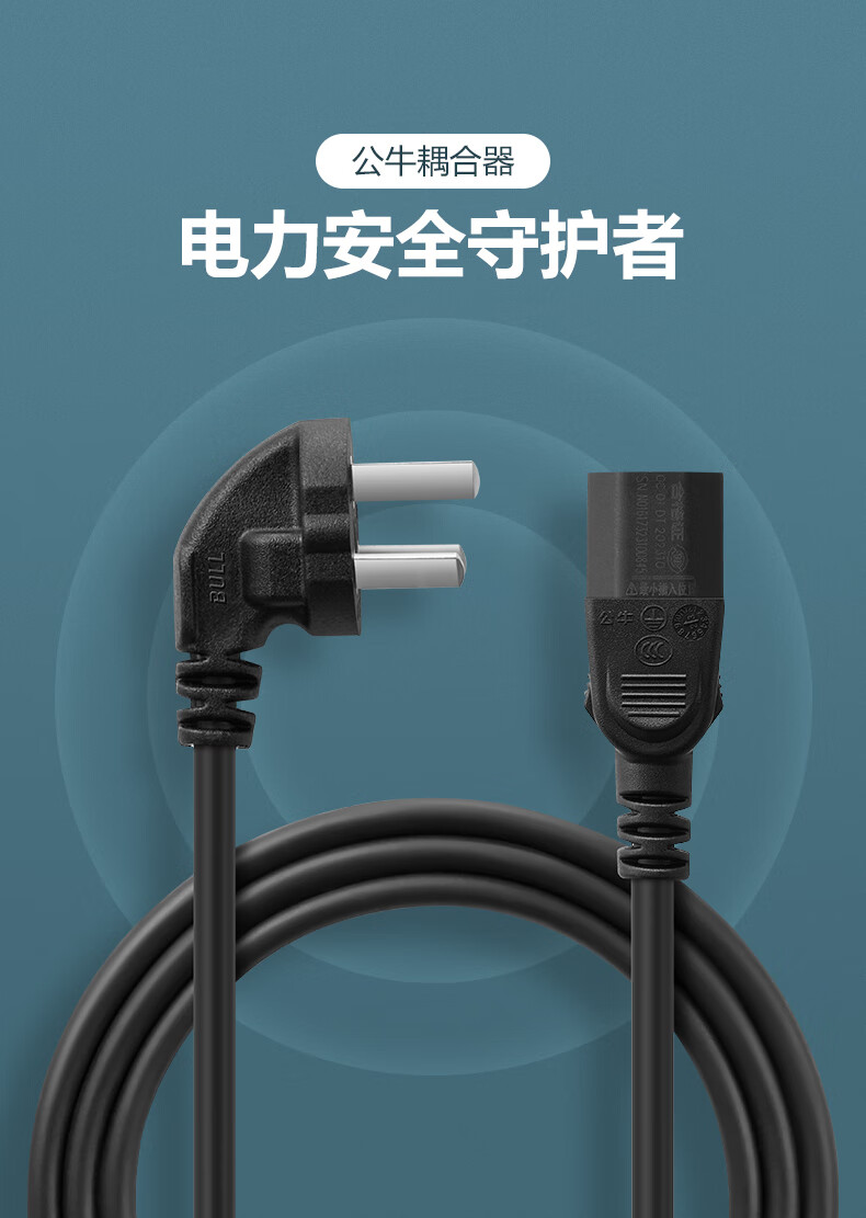 公牛电源线三孔通用电脑主机显示器三芯带插头连接线电饭锅电饭煲电炒锅线平口凹槽品字口耦合器插座