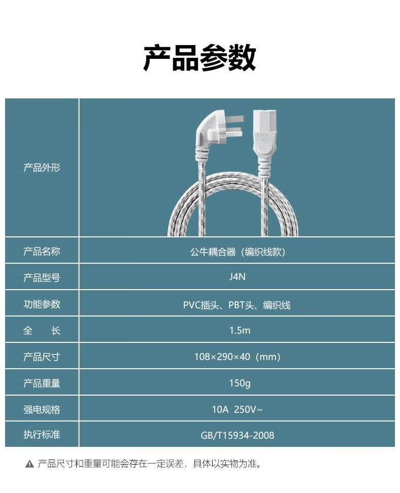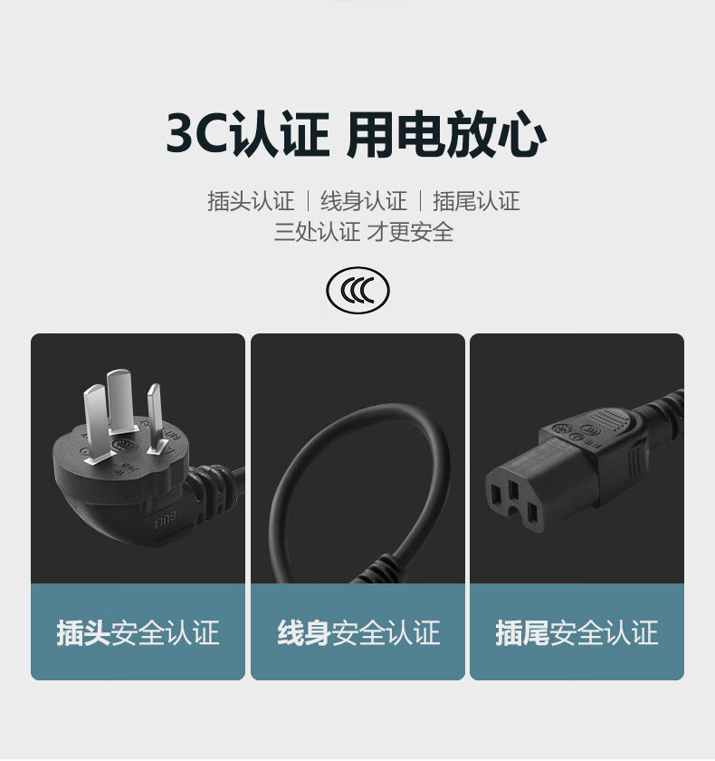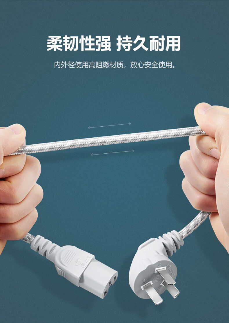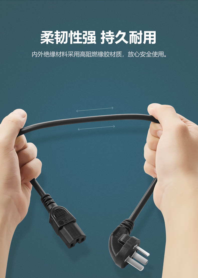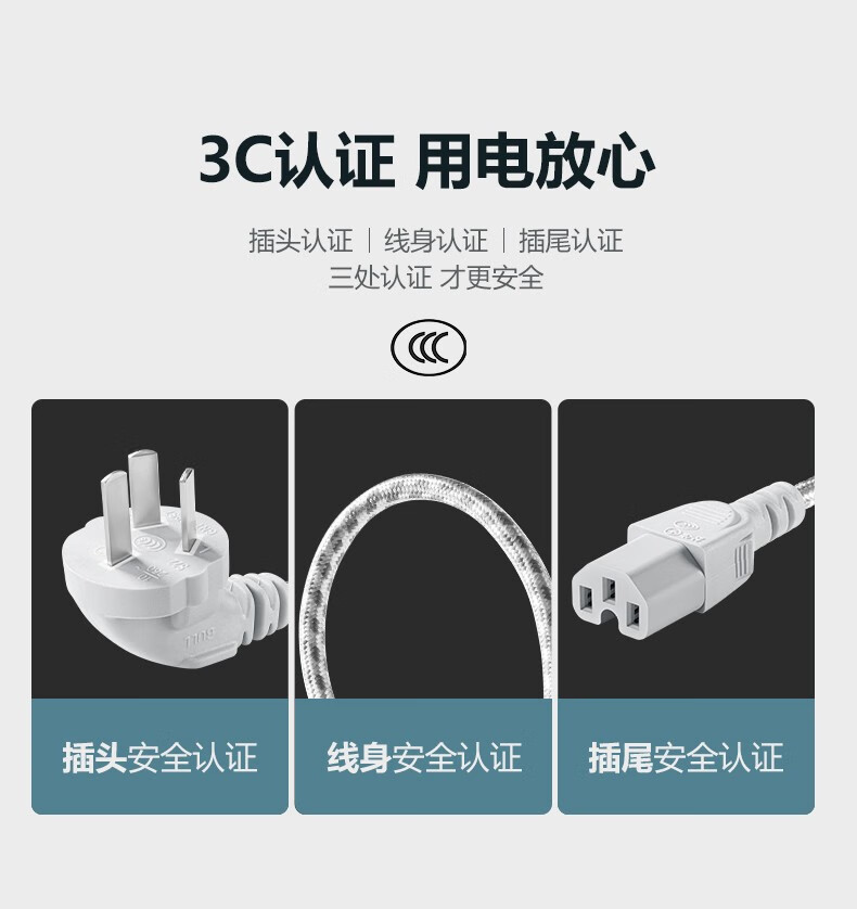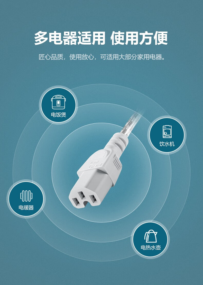 公牛电源线三孔通用电脑主机显示器三芯带插头连接线电饭锅电饭煲电炒锅线平口凹槽品字口耦合器插座