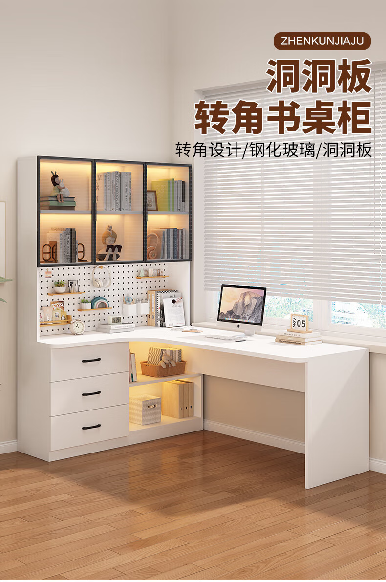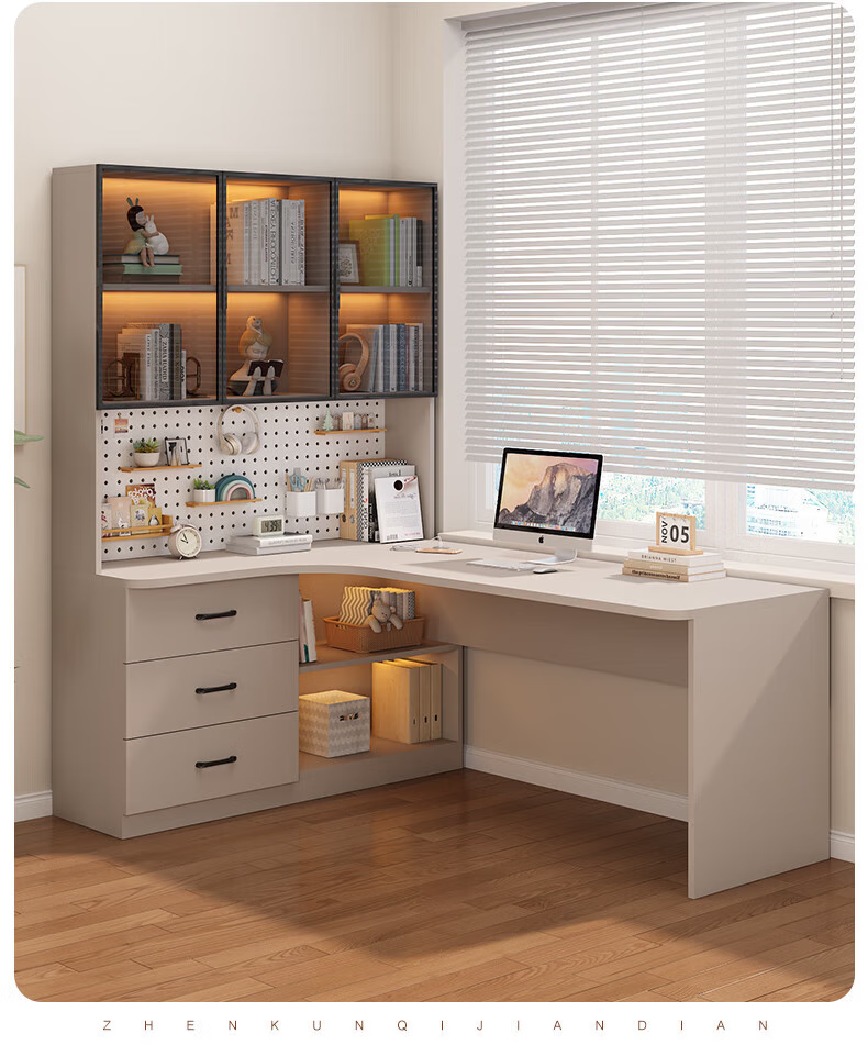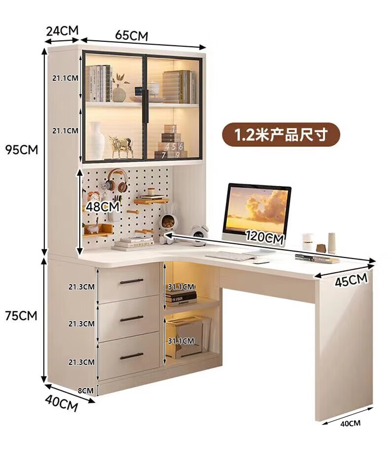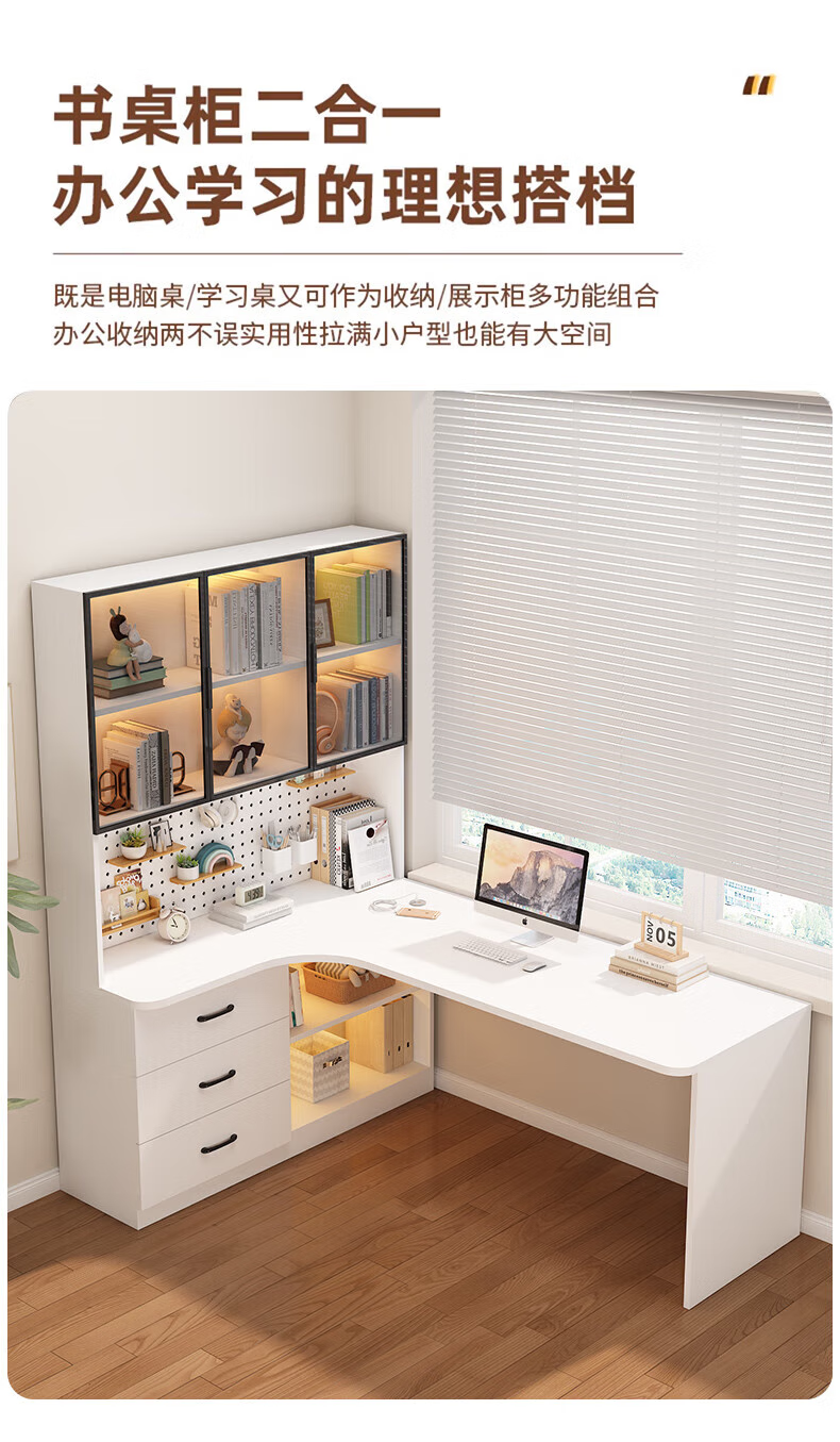 Solid wood corner computer desk bedroom children's study desk simple desktop office desk bookshelf integrated combination solid wood ecological board cream white - bookcase on the left 120*65*170 bookcase two glass doors