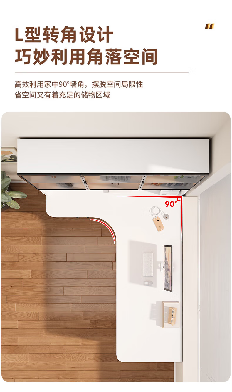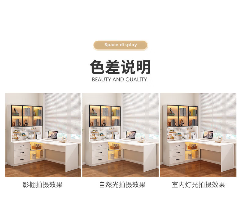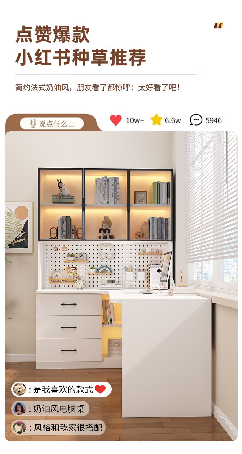 Solid wood corner computer desk bedroom children's study desk simple desktop office desk bookshelf integrated combination solid wood ecological board cream white - bookcase on the left 120*65*170 bookcase two glass doors