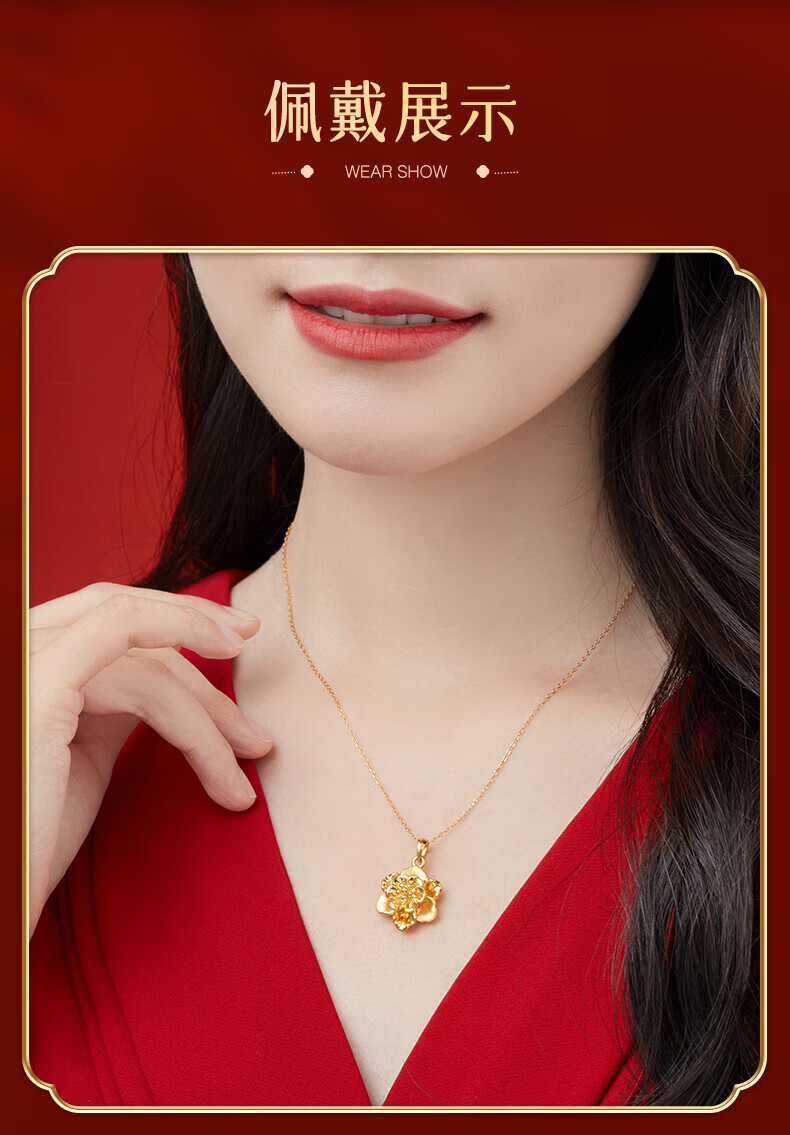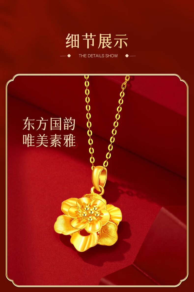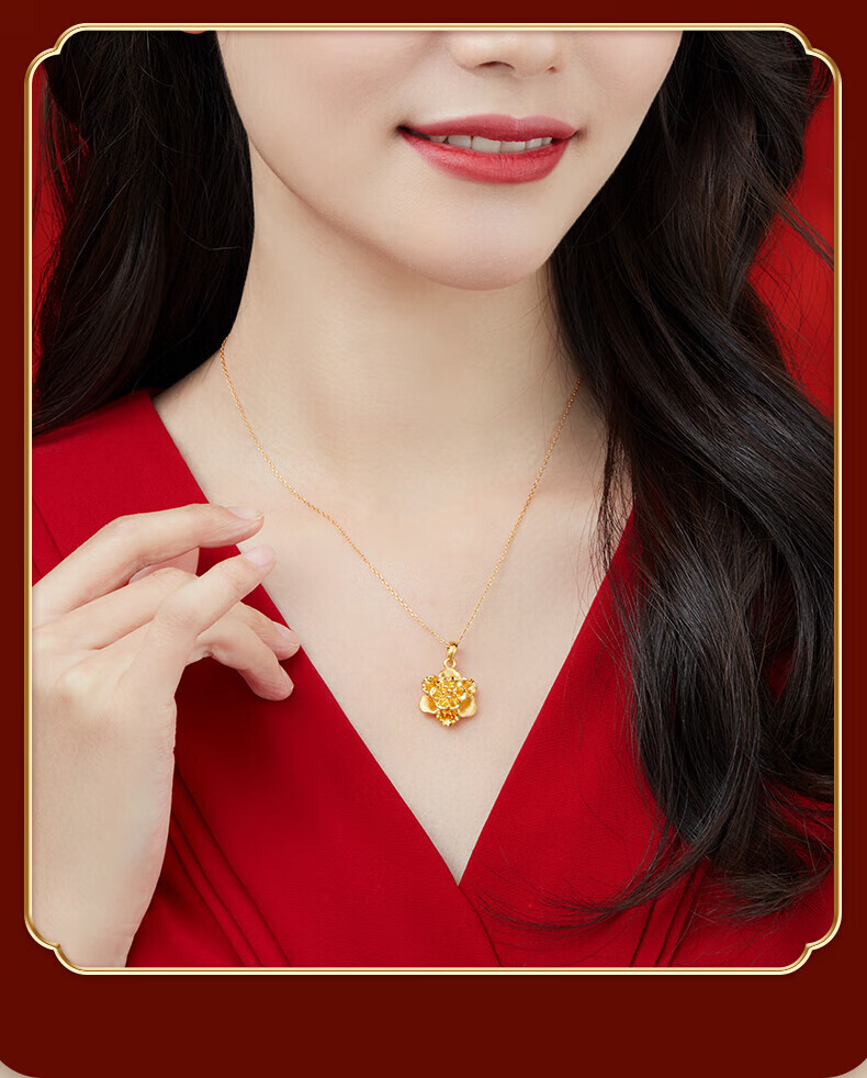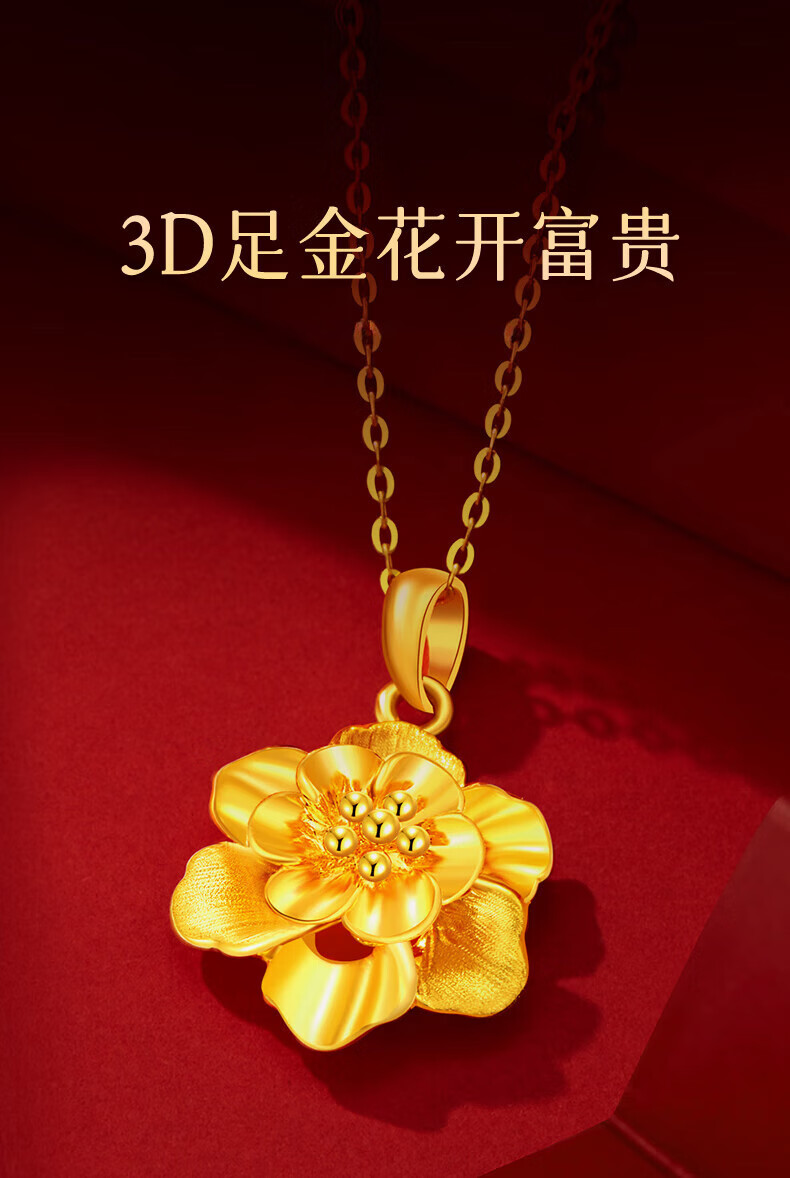 Lao Fengxiang gold necklace, pure gold peony flower pendant, hard gold clavicle chain, birthday gift for wife, girlfriend and best friend. The gold pendant weighs about 1g + comes with a 925 silver chain and comes with a brand gift box.