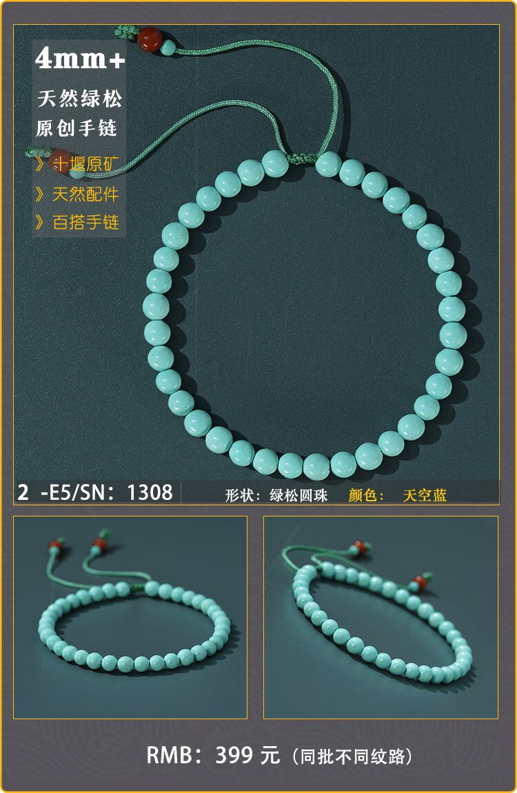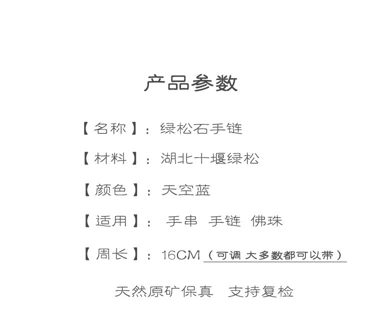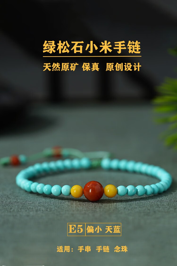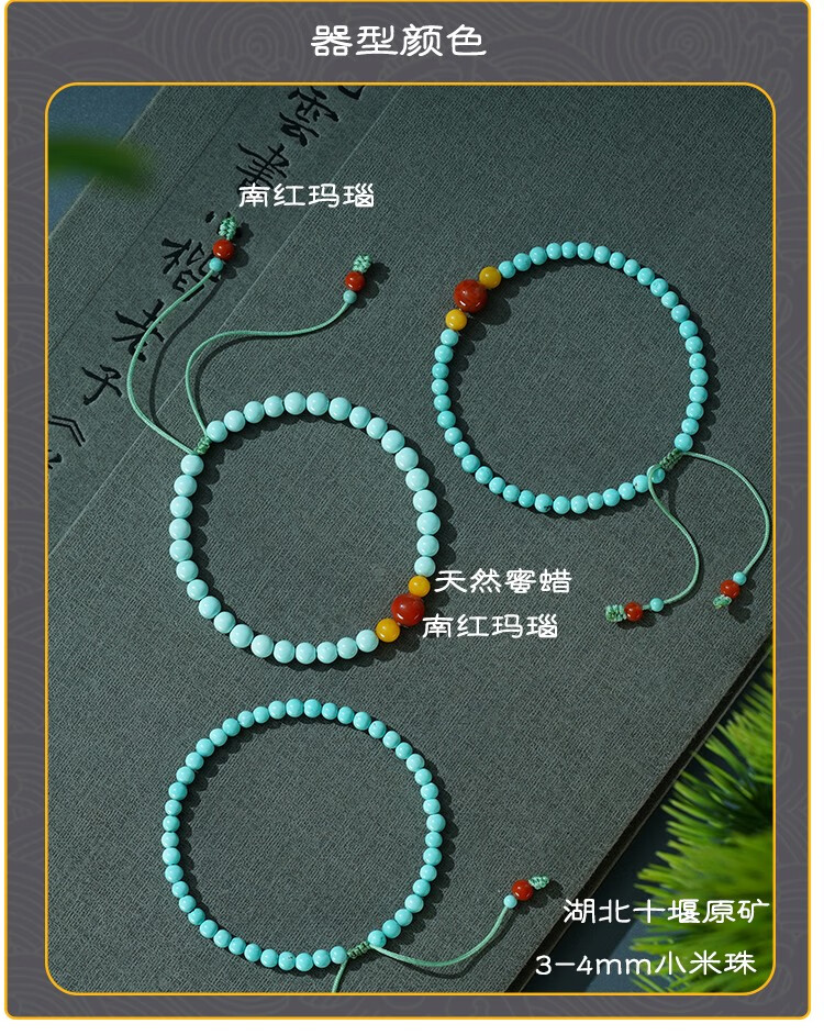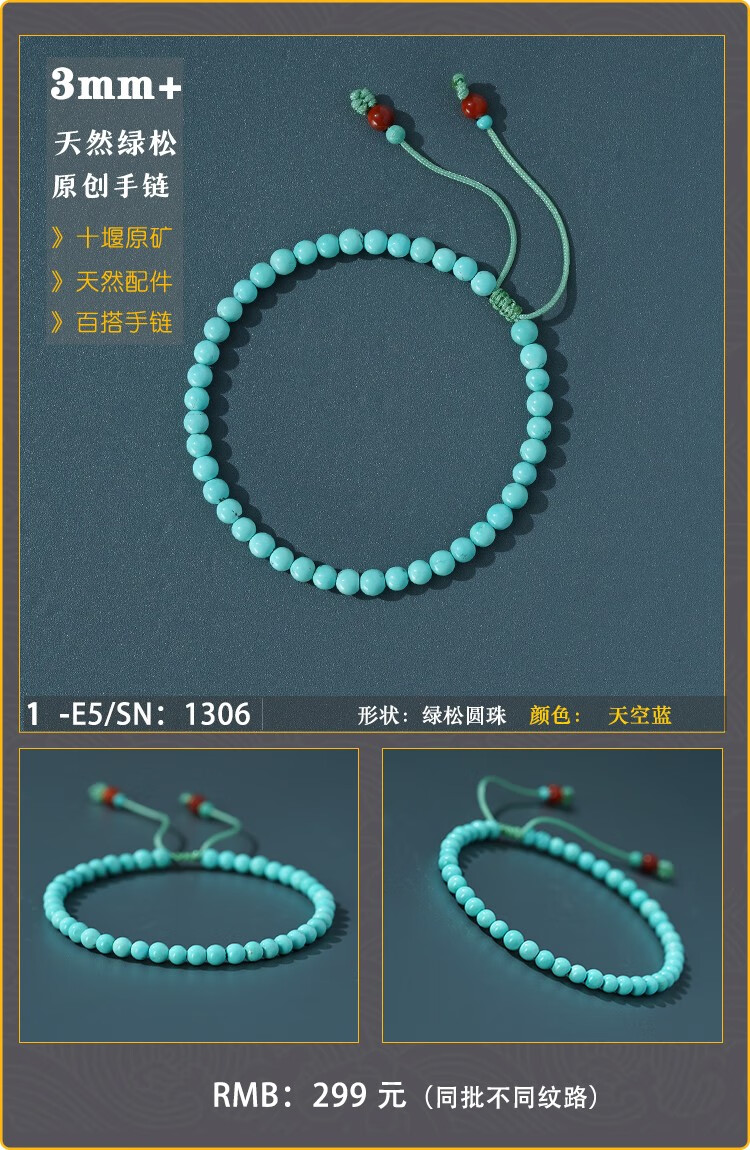 Muqin Natural Mineral Turquoise Bracelet from Zhushan Mine in Shiyan, Hubei Province, Sky Blue Grass and Flower Blue No Iron Wire Turquoise Bracelet 3mm+ Plain Style/E5