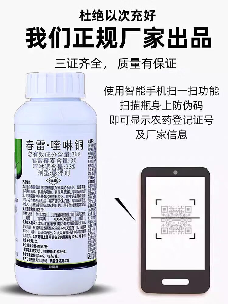 36% kasugamycin quinolinone grape downy mildew fruit tree citrus ulcer angular spot bacterial pesticide fungicide 1000g (1 bottle)