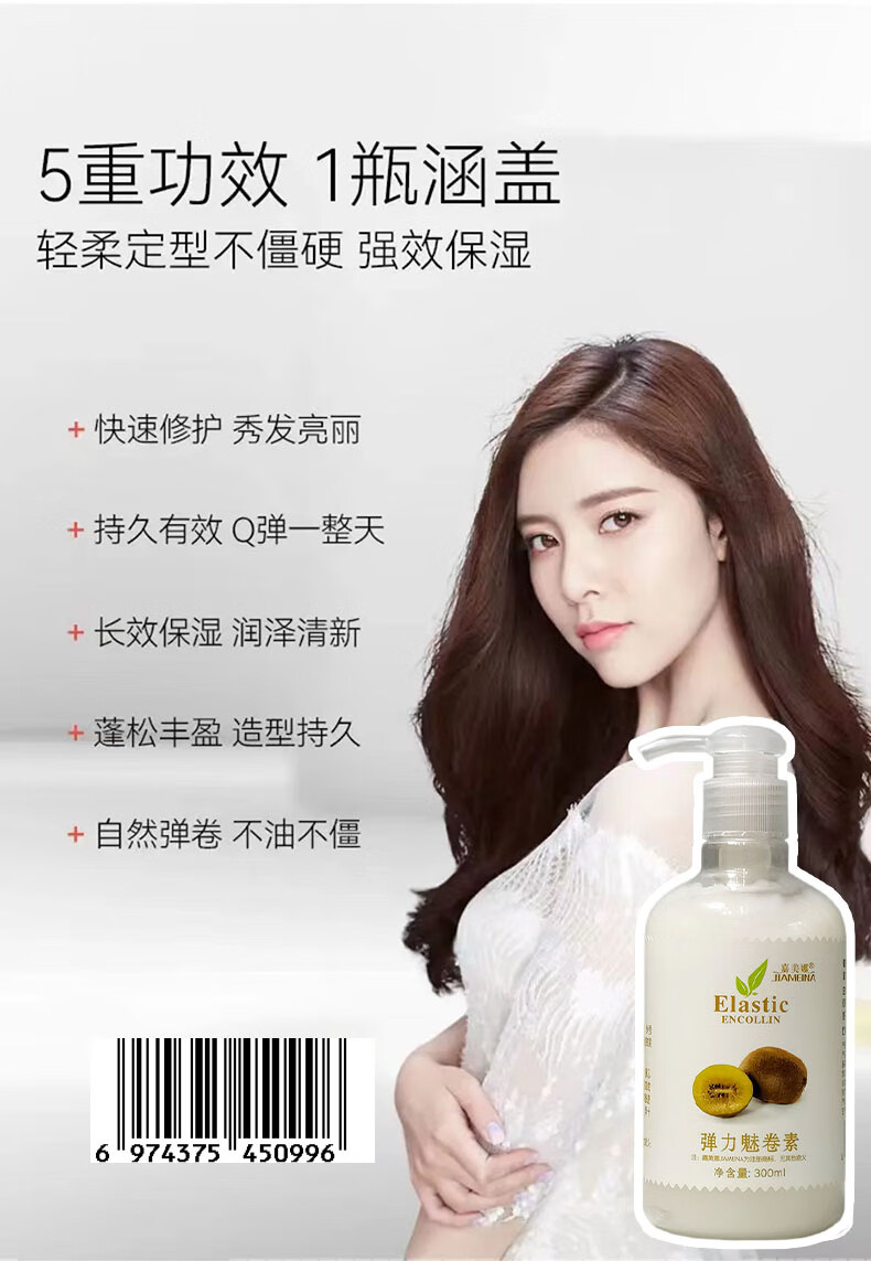 Carmena elastin for women's curly hair, moisturizing, lasting styling, elasticity, anti-frizz and fluffy essence, post-perm hair care and styling 300ml 1 bottle Carmena kiwi fruit elastin