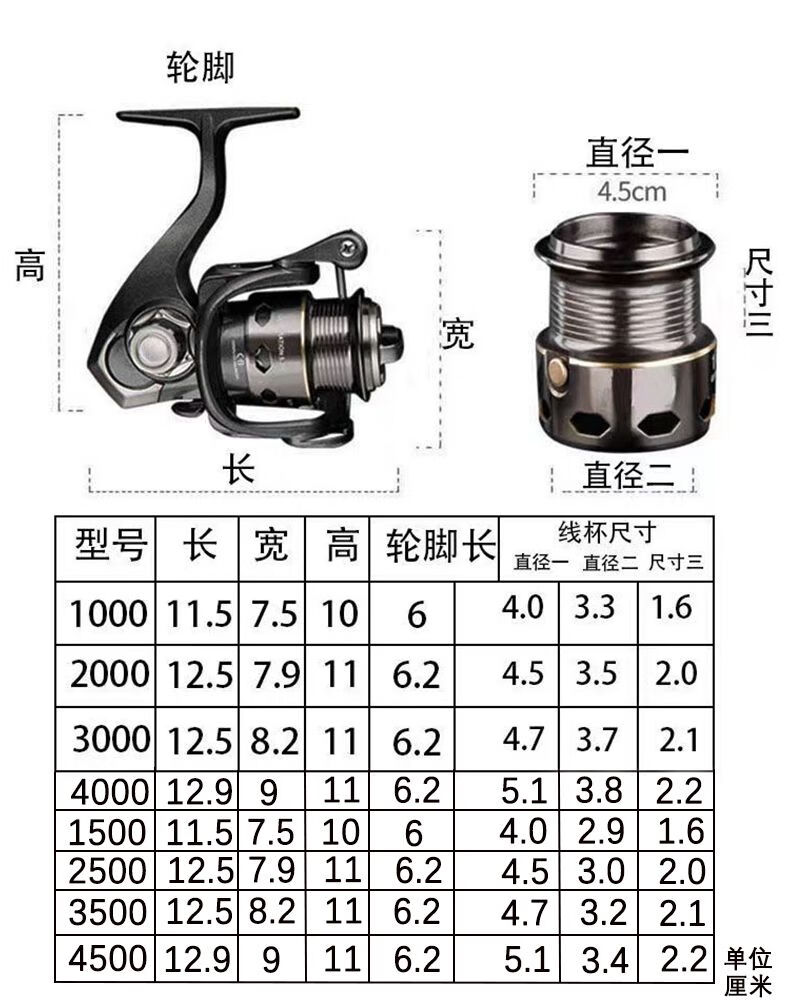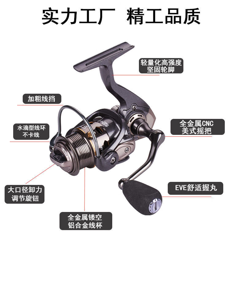 Himanolua micro-object spinning wheel inclined mouth shallow line cup 1000 long-range no gap all-metal fish wheel horse mouth 1000 micro-object special inclined mouth shallow line cup