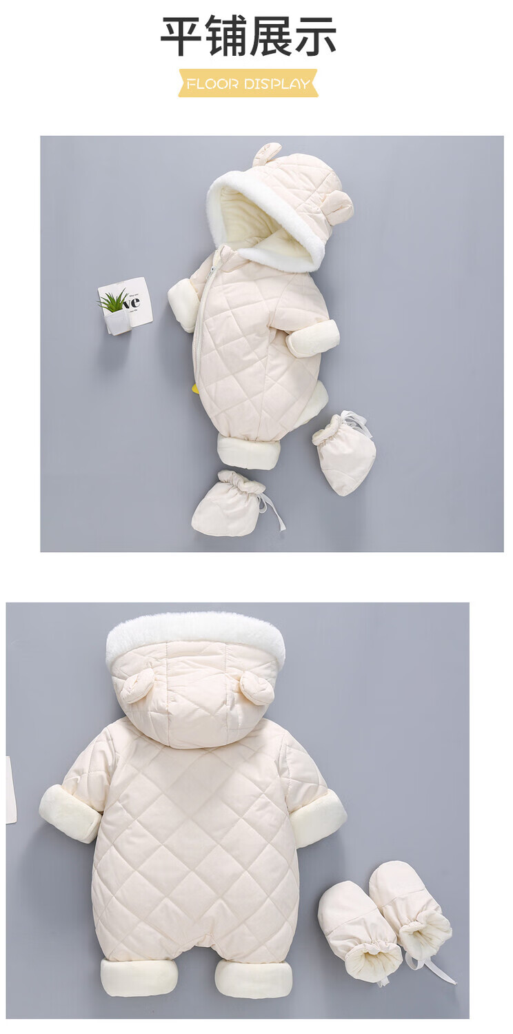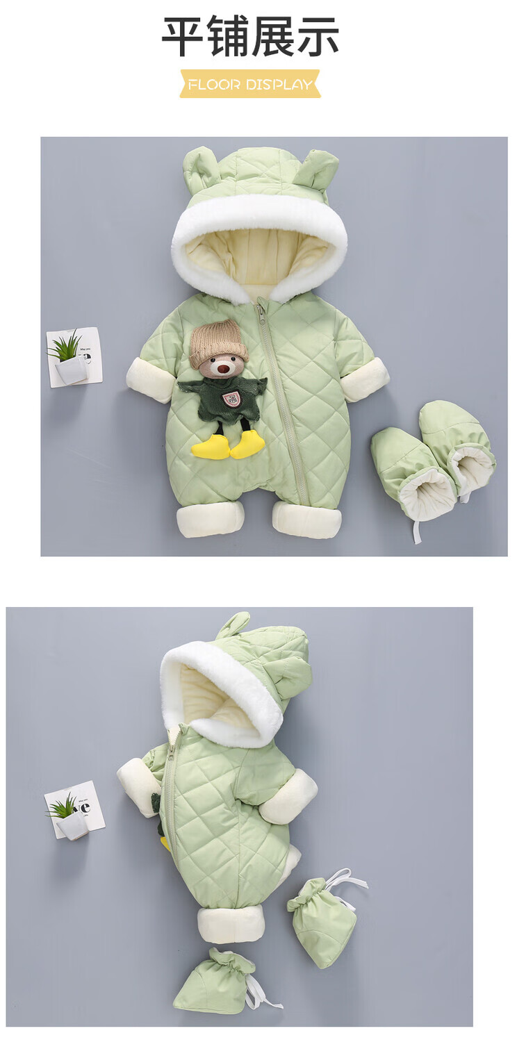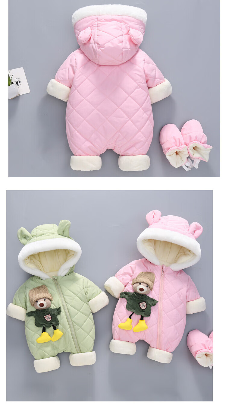 G.duck brand children's clothing baby clothes plus velvet thickening warm harem full moon winter clothing newborn onesie outer wear romper pink 66cm