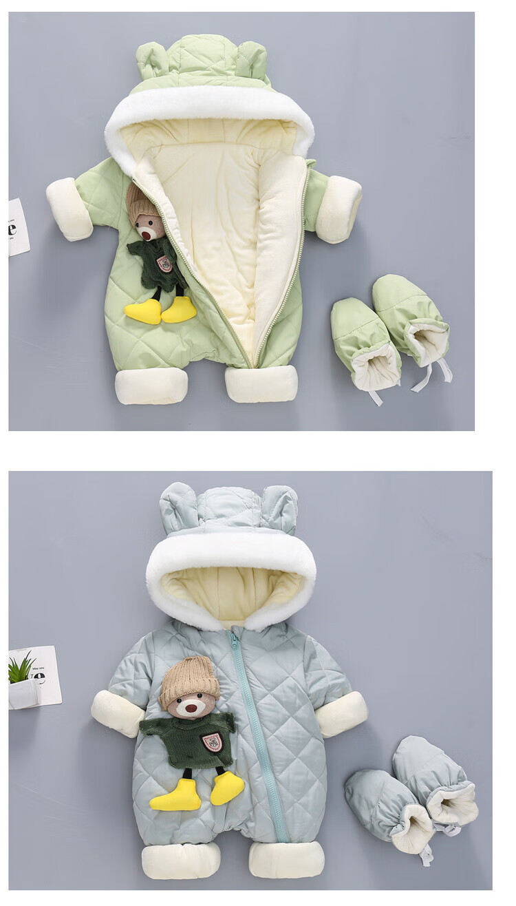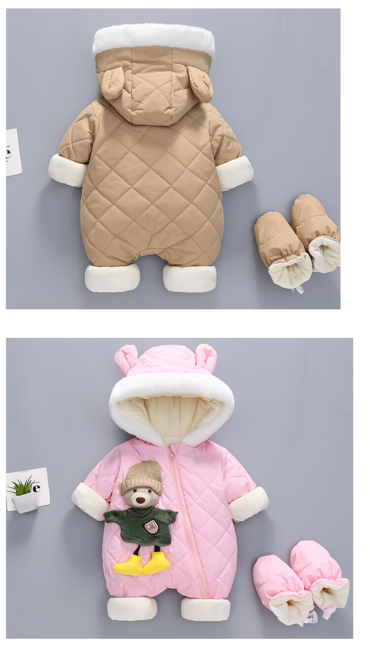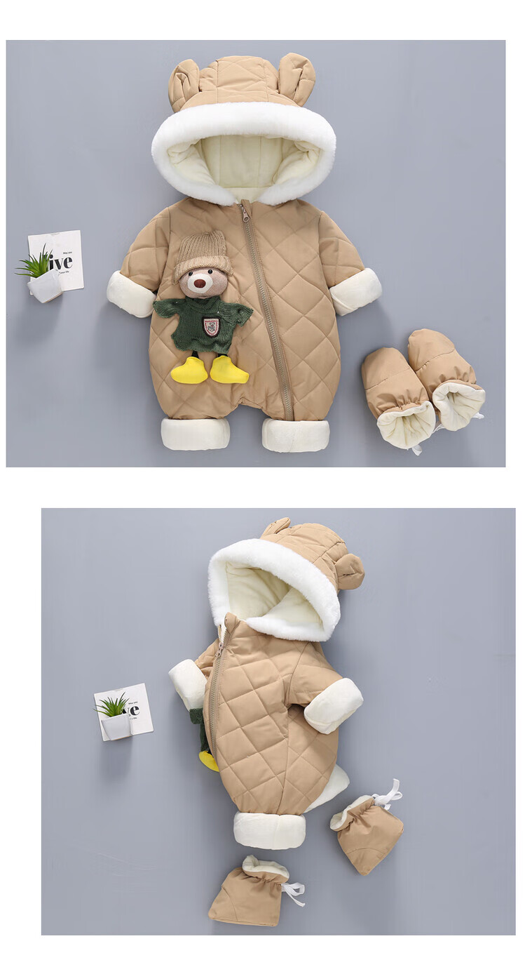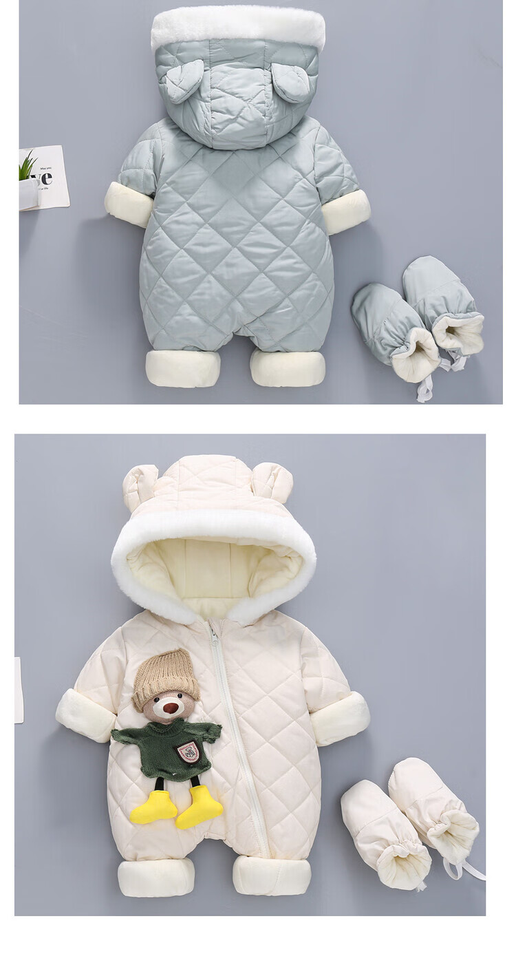 G.duck brand children's clothing baby clothes plus velvet thickening warm harem full moon winter clothing newborn onesie outer wear romper pink 66cm