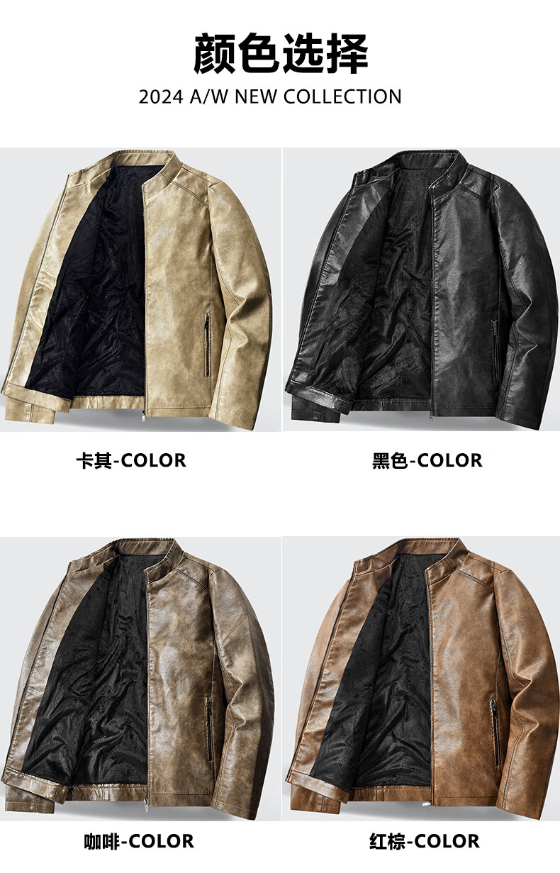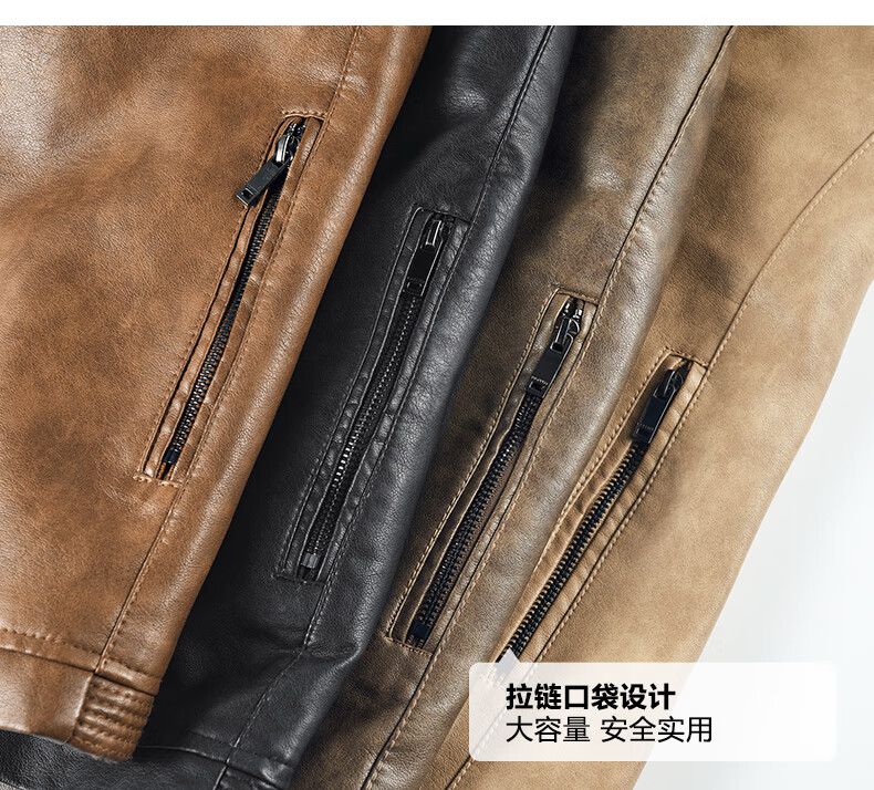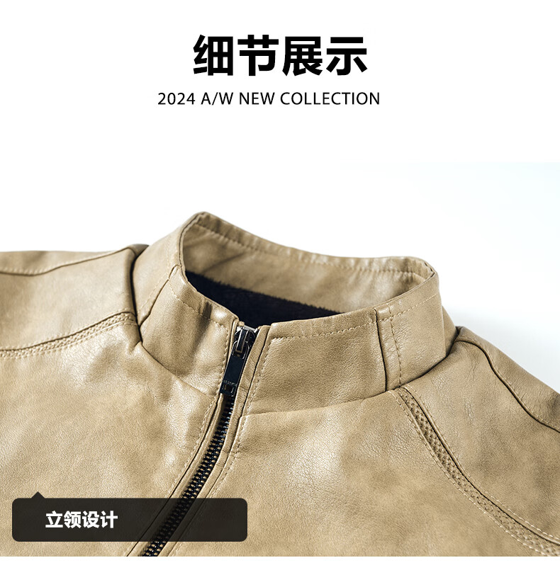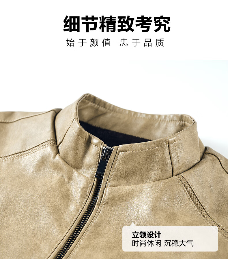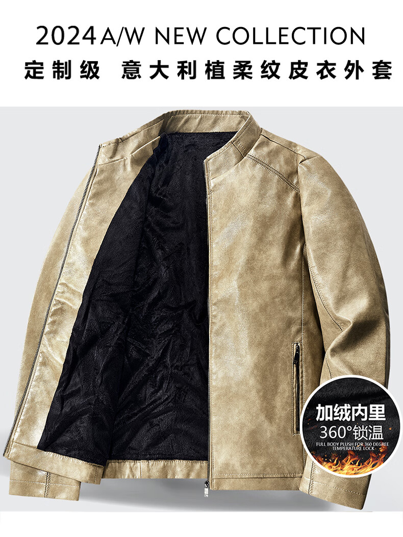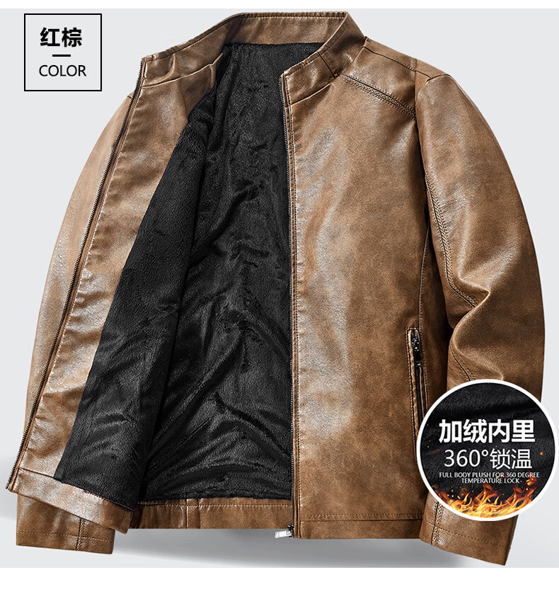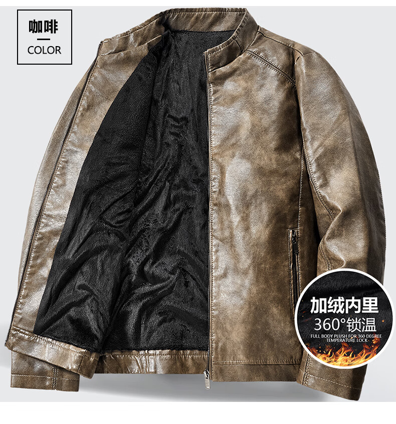 Edenbo/Attenborough plus velvet leather jacket autumn and winter men's stand-up collar fashionable casual leather jacket warm men's jacket coffee M