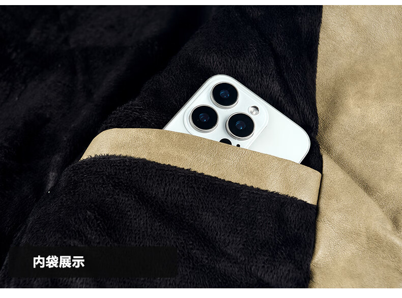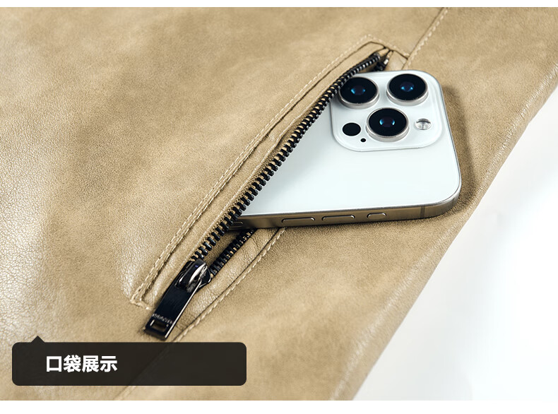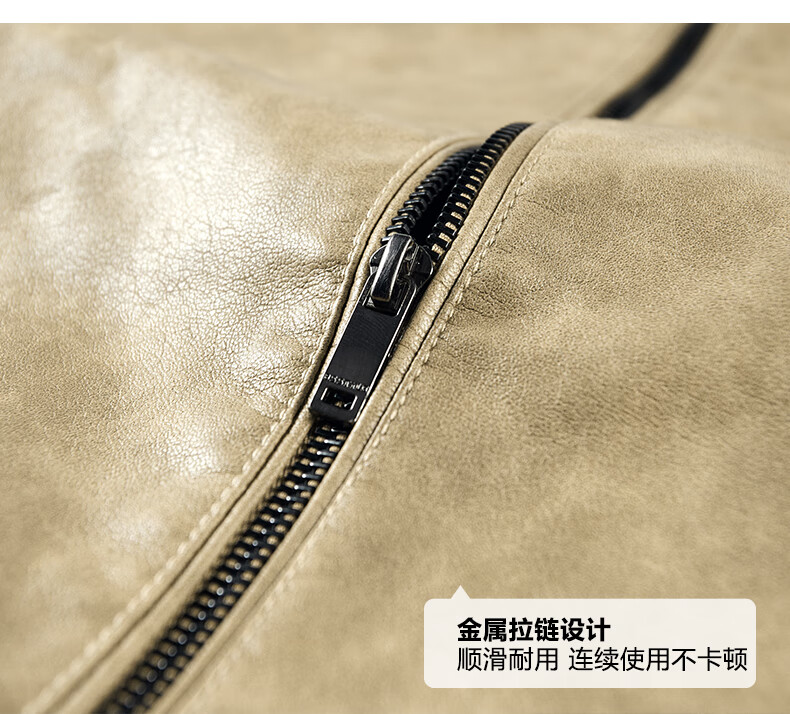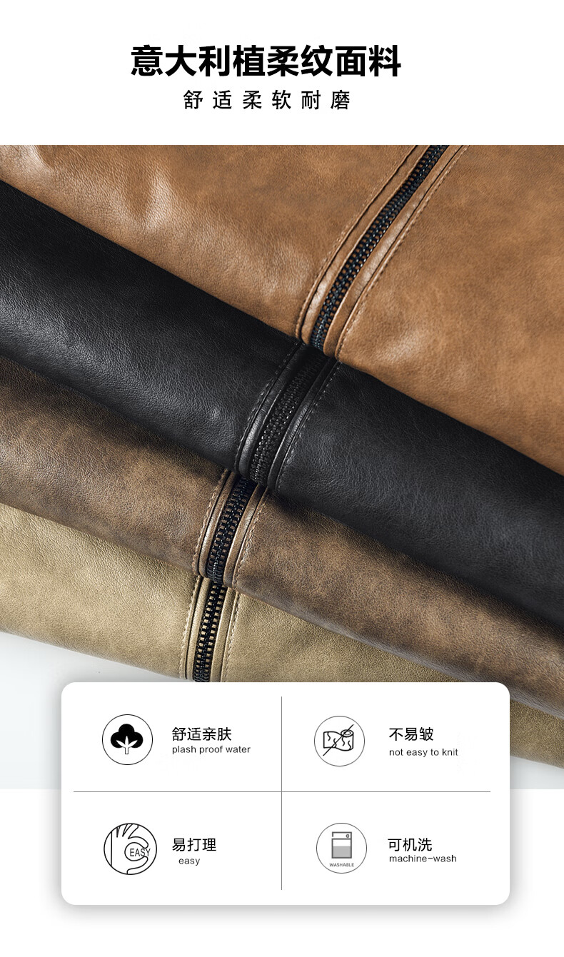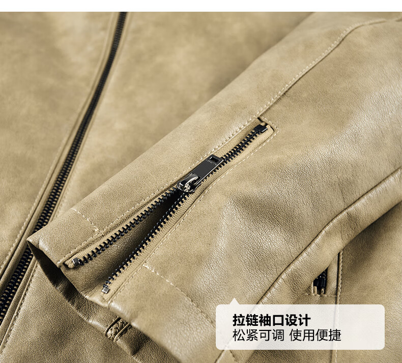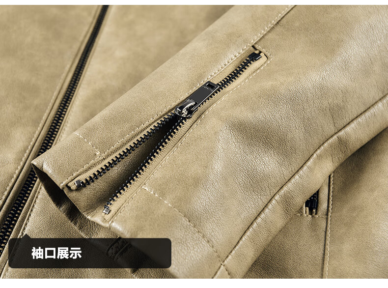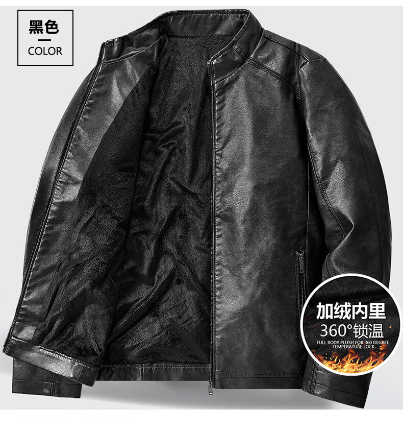Edenbo/Attenborough plus velvet leather jacket autumn and winter men's stand-up collar fashionable casual leather jacket warm men's jacket coffee M