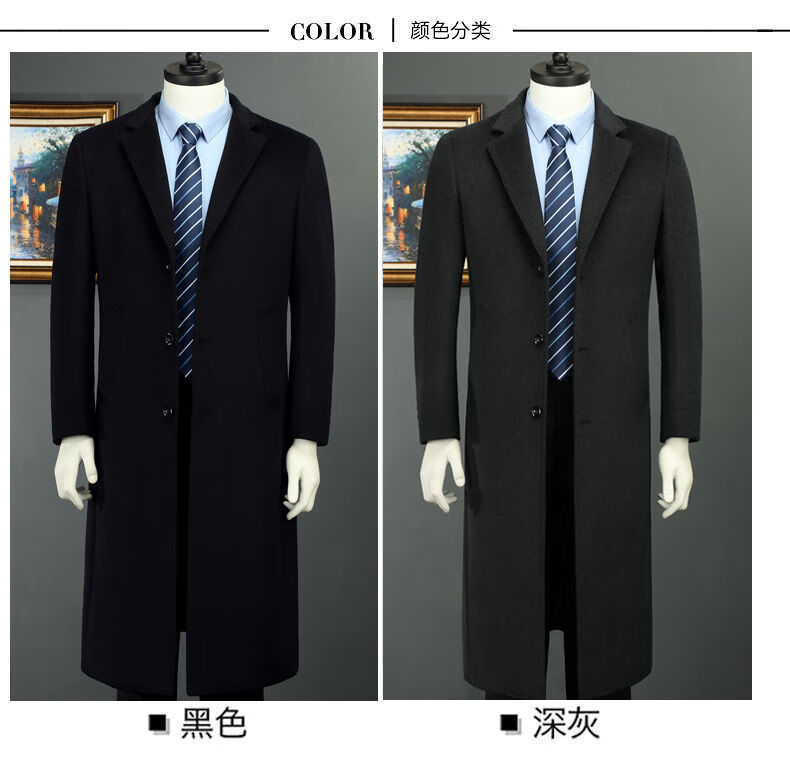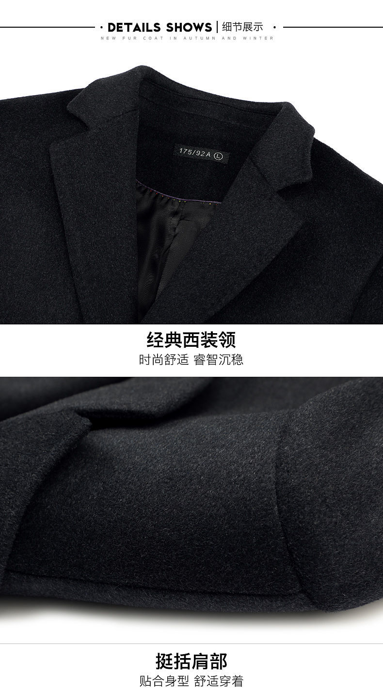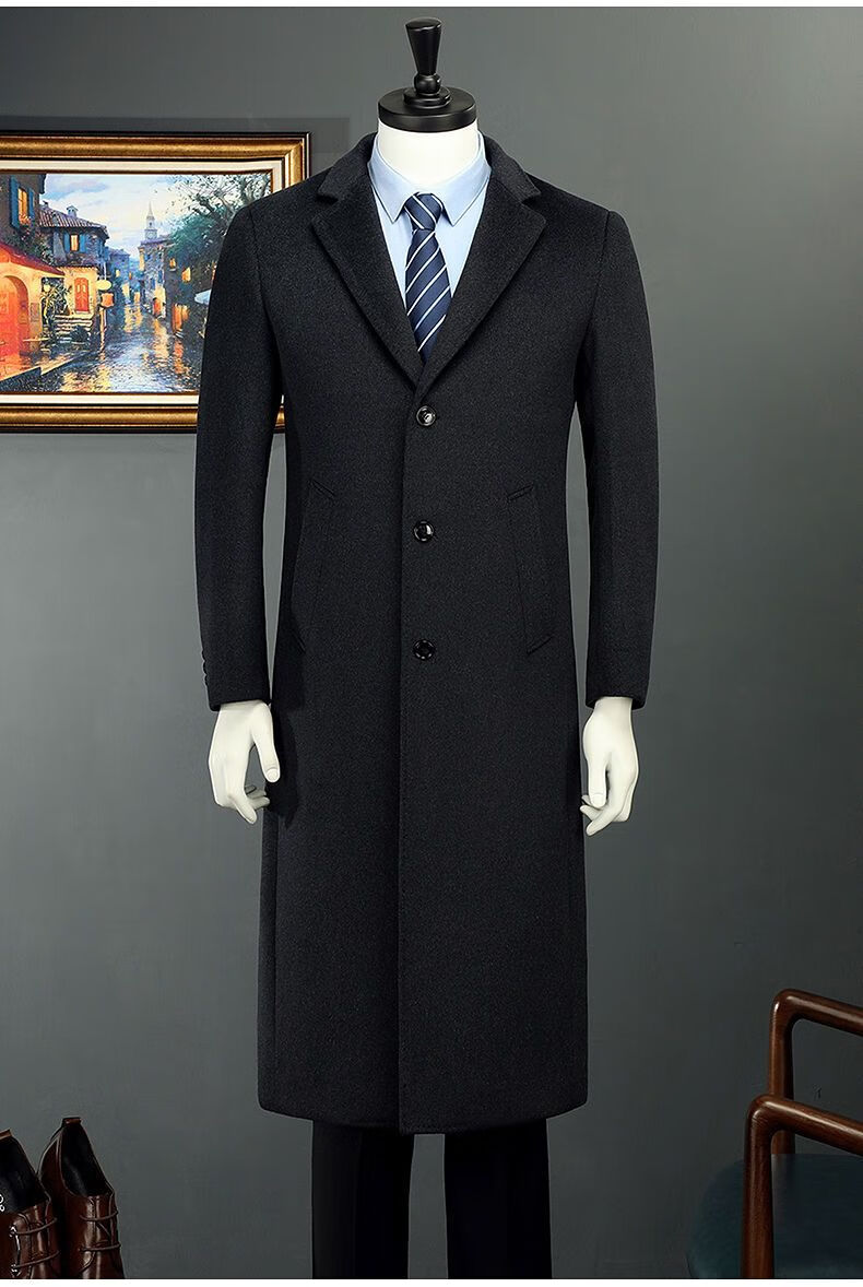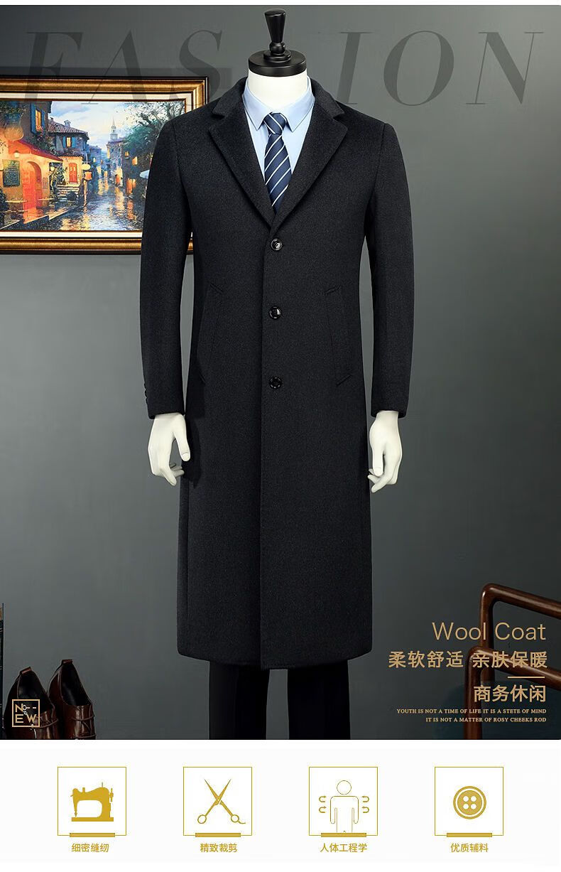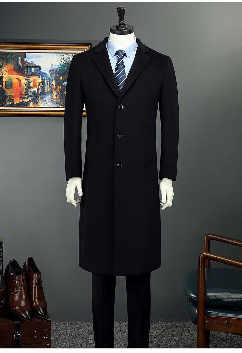 Woodpecker (TUCANO) men's coat men's long middle-aged knee-high suit collar Korean style autumn and winter windbreaker woolen high-end brand coat black long 2XL 125-140Jin Jin equals 0.5 kg