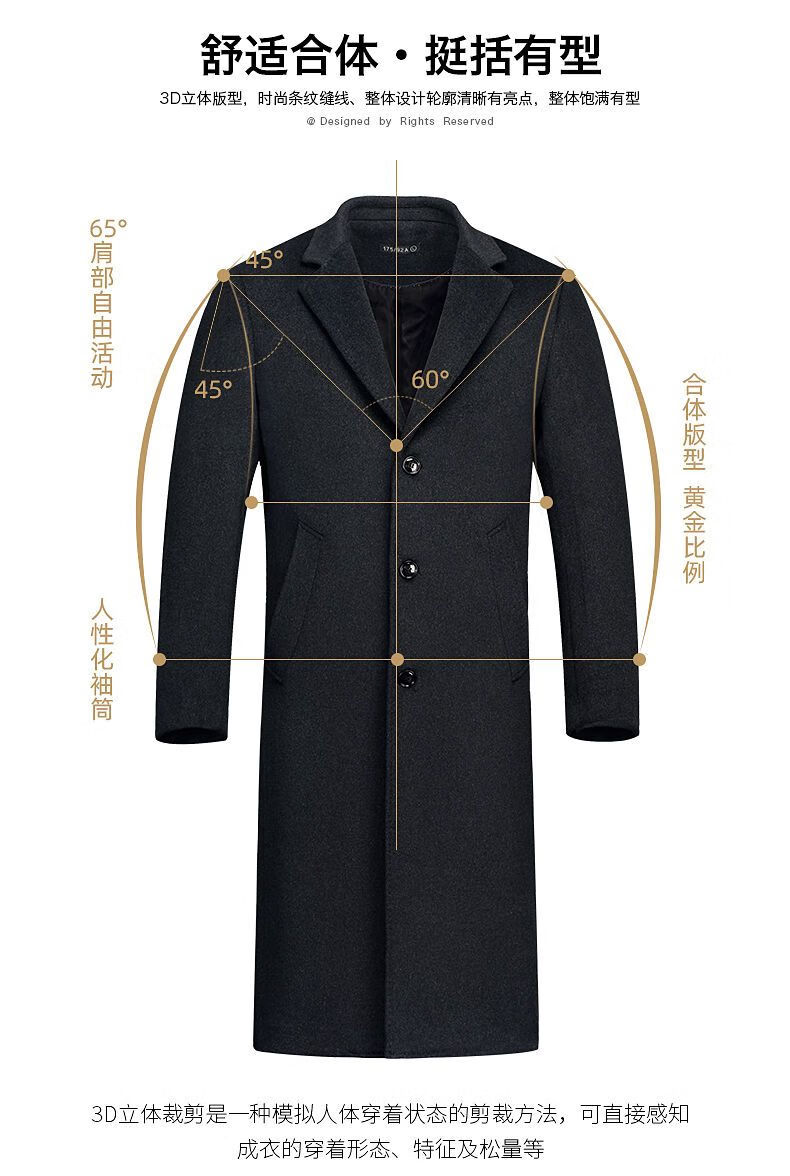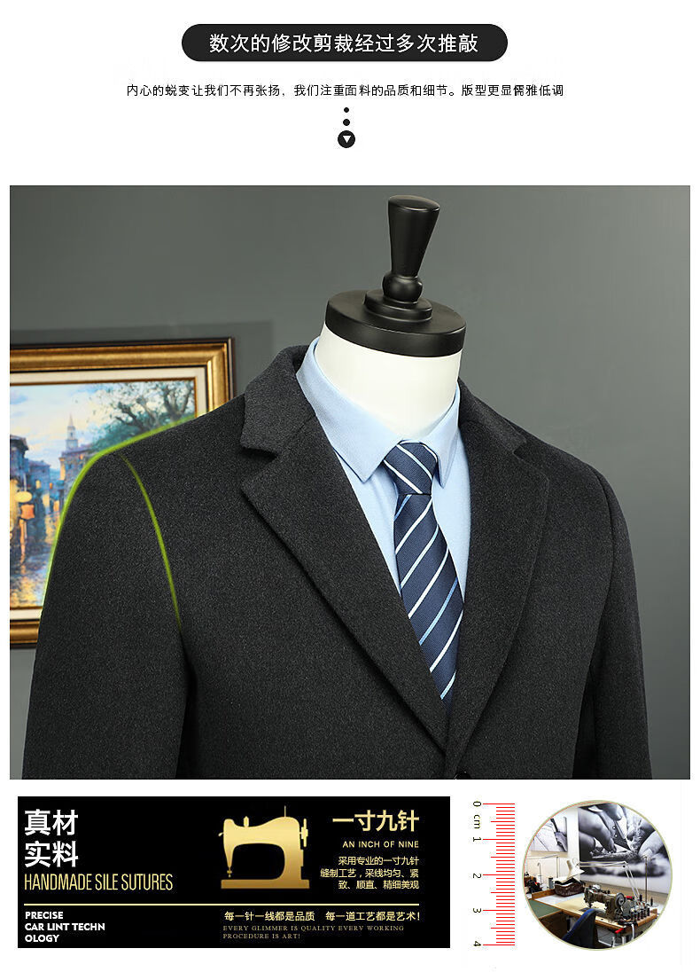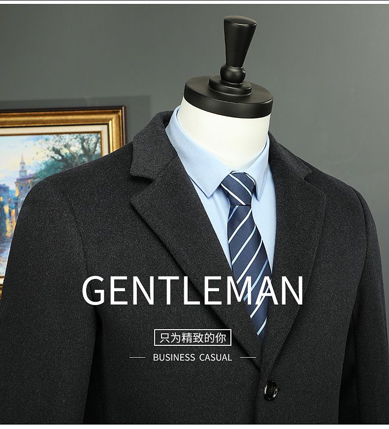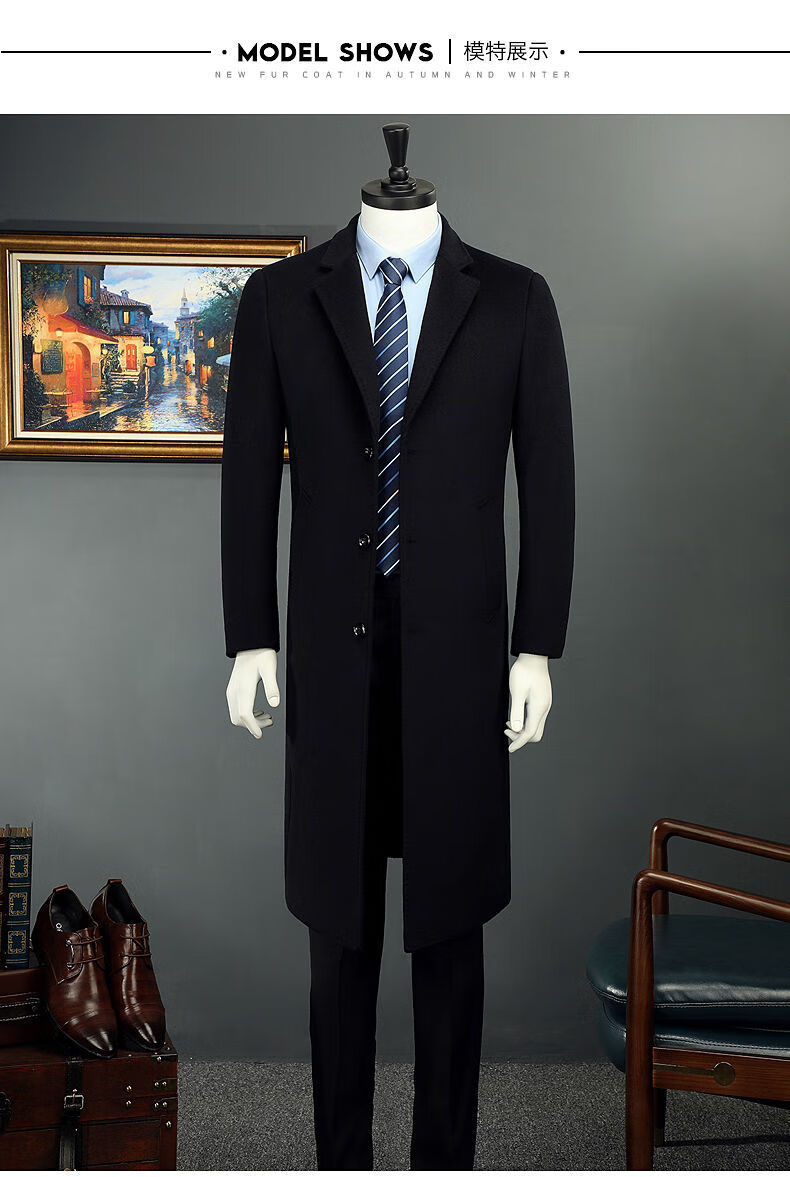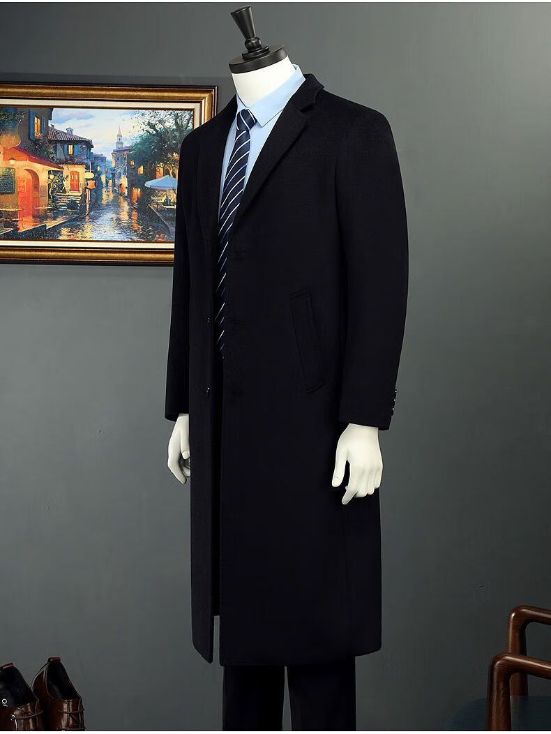 Woodpecker (TUCANO) men's coat men's long middle-aged knee-high suit collar Korean style autumn and winter windbreaker woolen high-end brand coat black long 2XL 125-140Jin Jin equals 0.5 kg