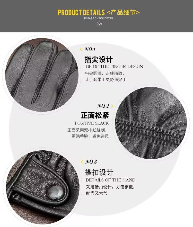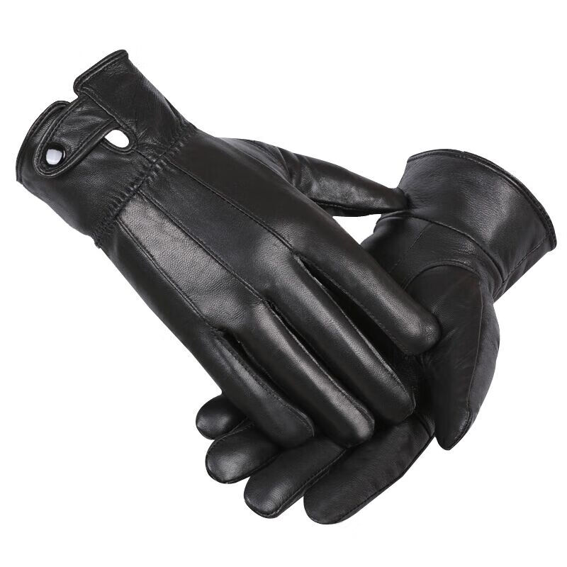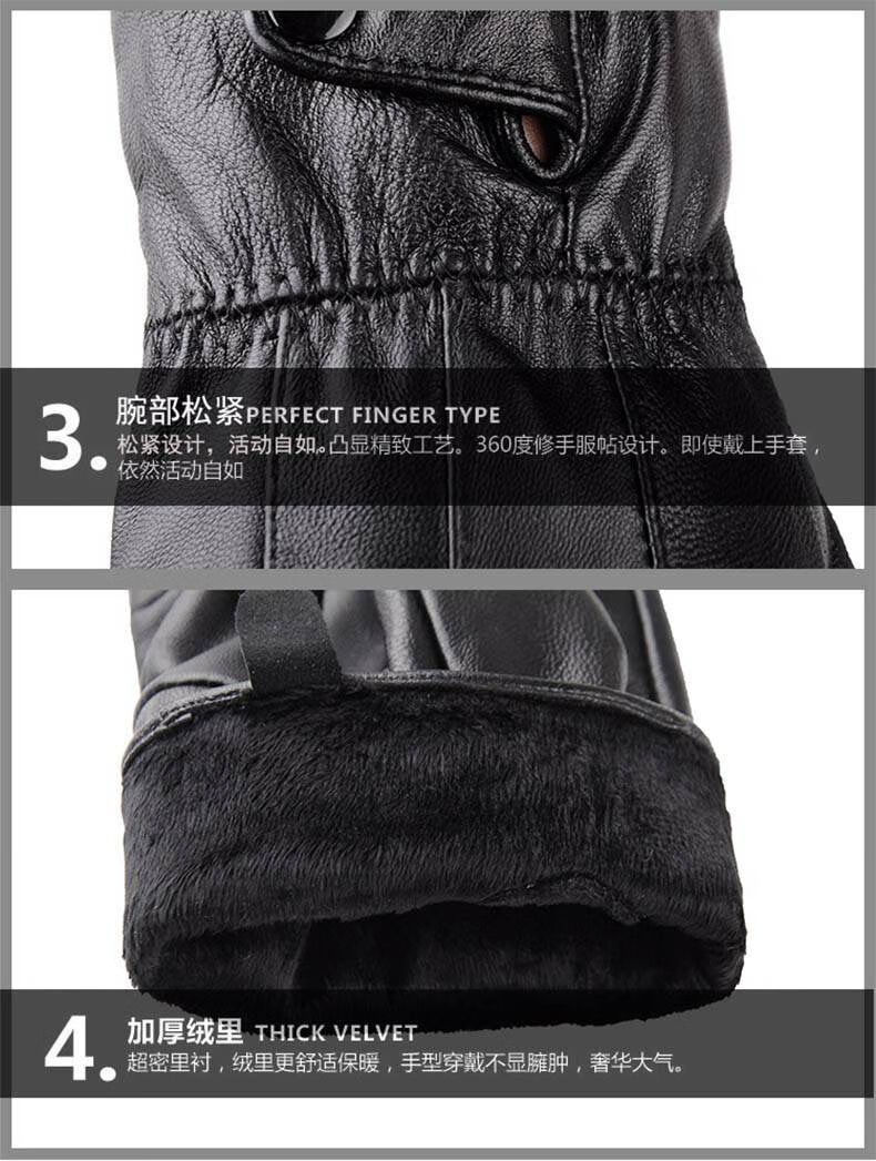 European sheepskin gloves men's velvet thickened genuine leather warm winter riding electric vehicle motorcycle waterproof and windproof gloves pure sheepskin men's buttons one size