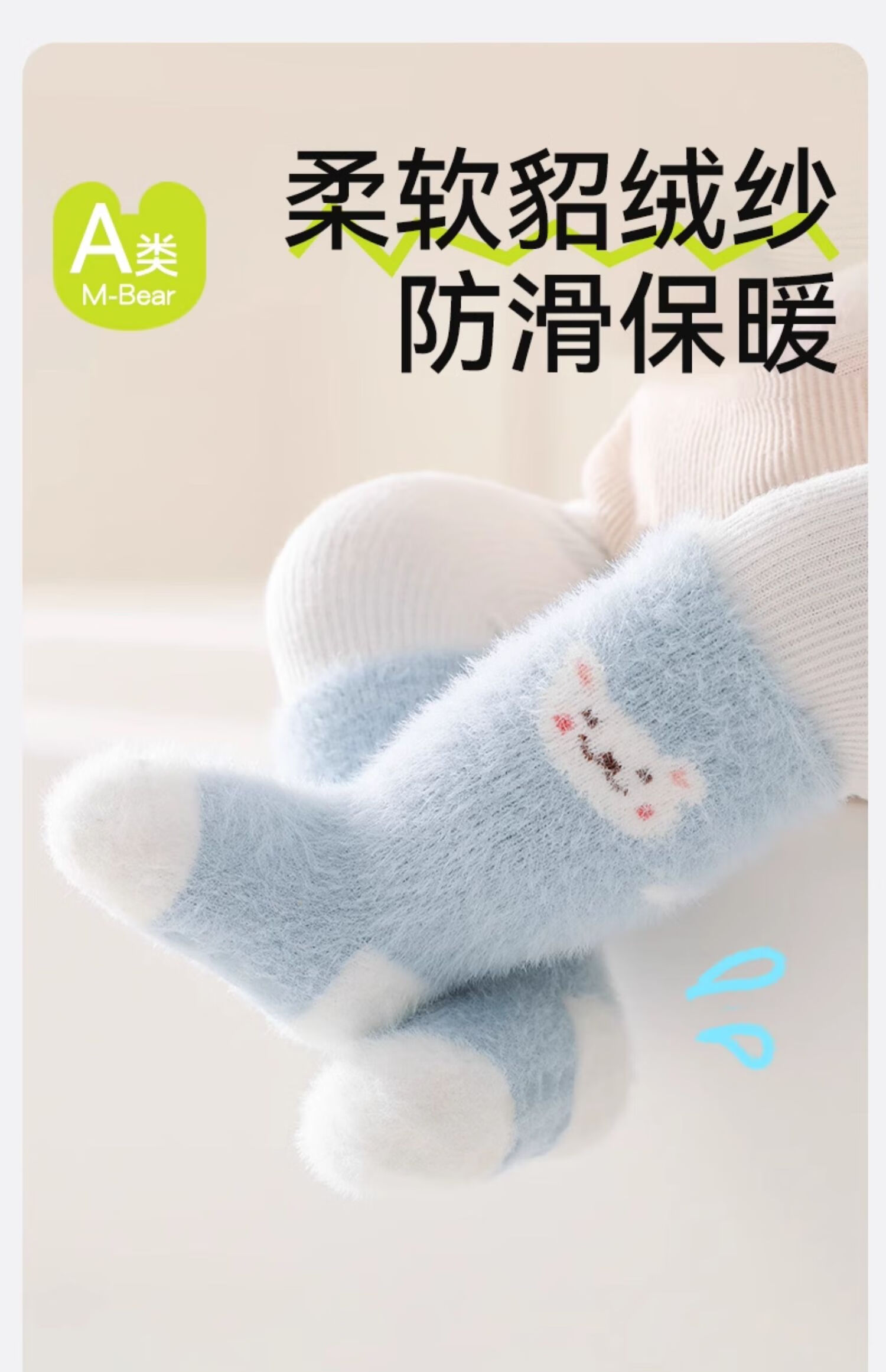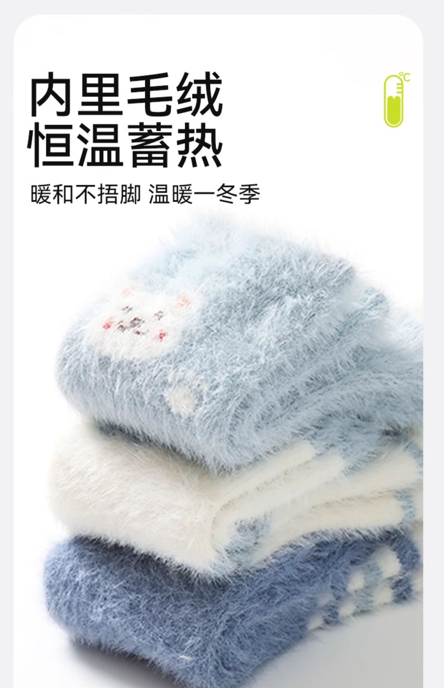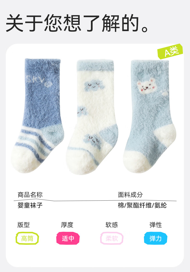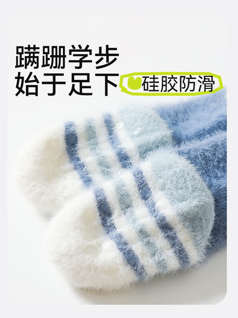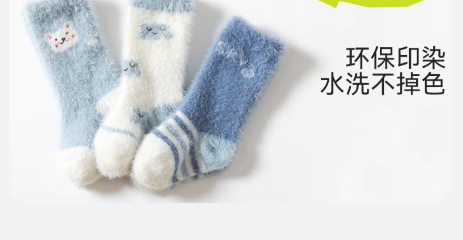 Mianqi Bear Floor Socks Baby Winter Velvet Thickened Mid-calf Warm Socks Baby Autumn and Winter Non-Slip Toddler Newborn Stockings Cream White Rabbit Thickened Warm 3 Pairs 2-3 Years Old (Recommended Foot Length 13-15cm)