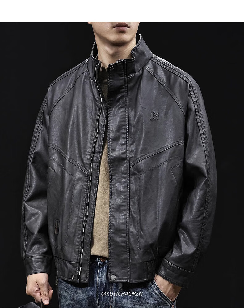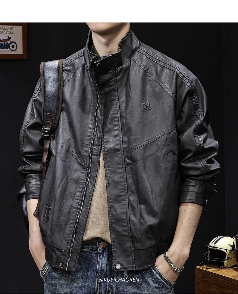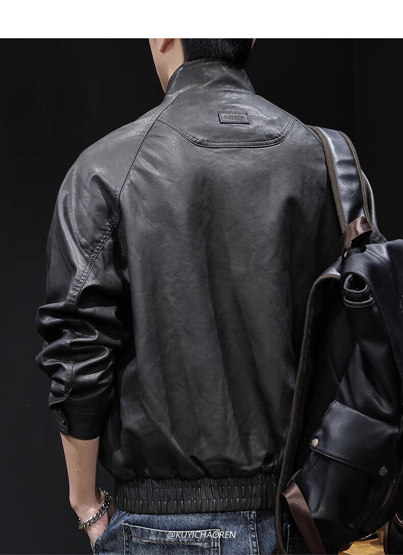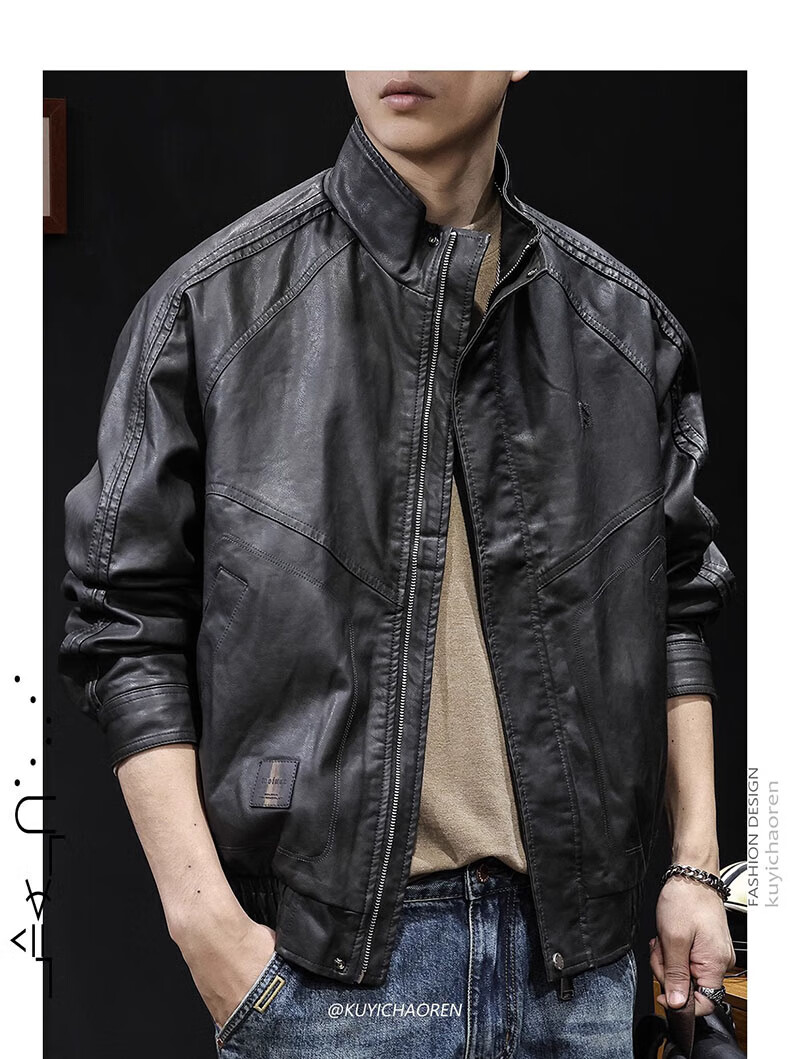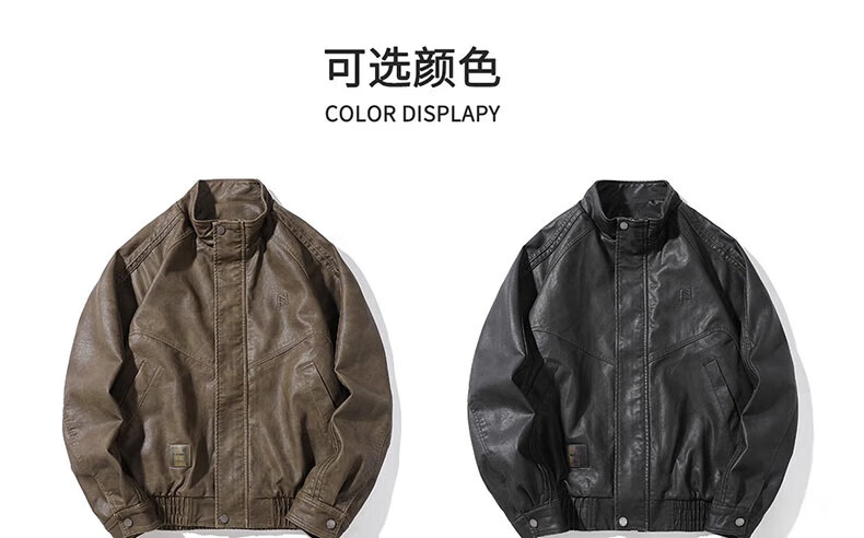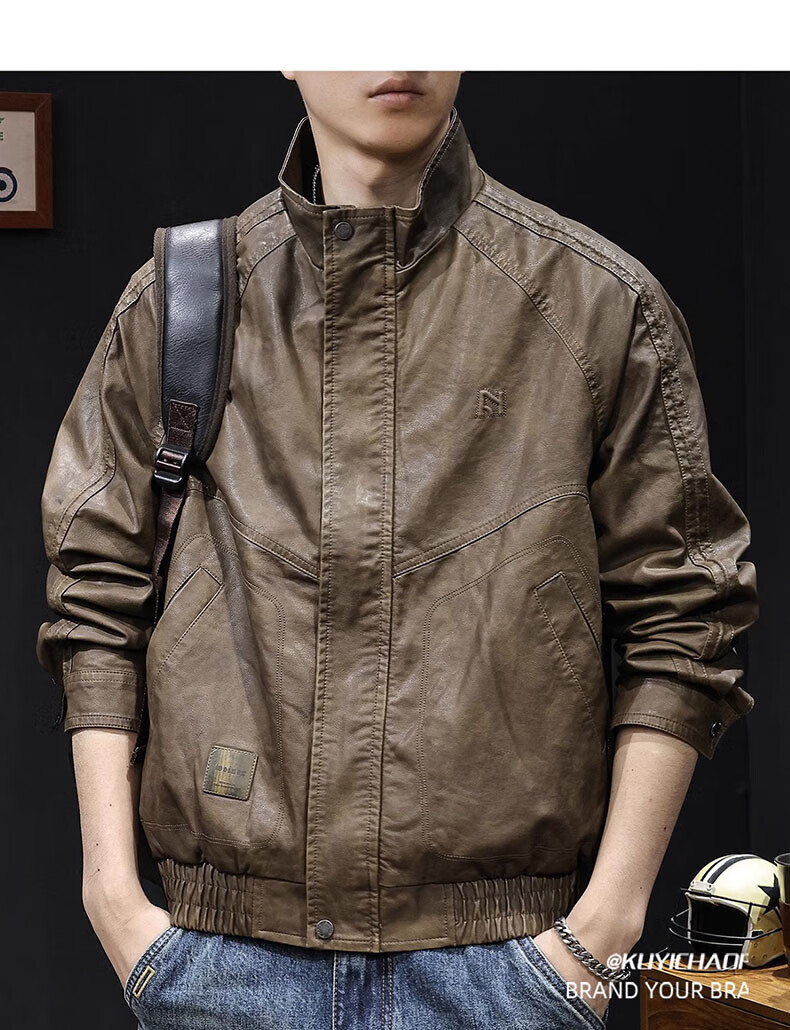 Lexin trendy high-end stand-collar motorcycle leather jacket for men in autumn and winter new men's velvet large size American retro trendy brand tops brown velvet thickened 3XL 180-200Jin Jin is equal to 0.5 kg