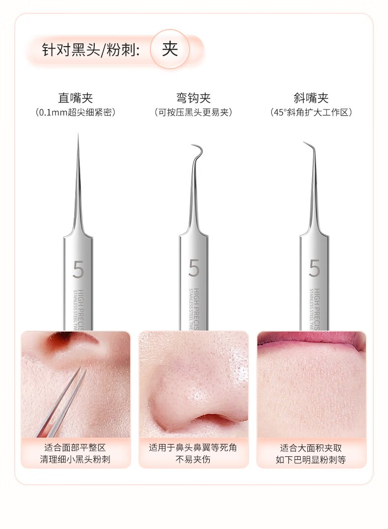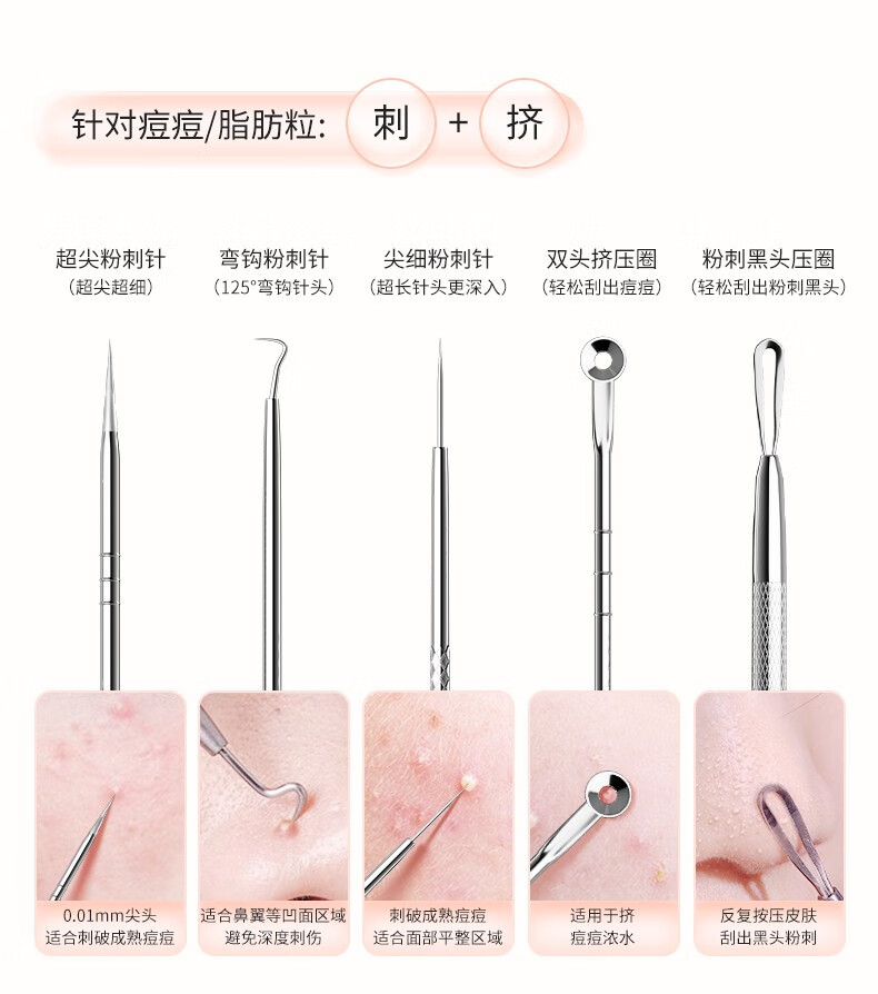 JIAHEMEI acne needle set, blackhead removal needle, acne picking needle, cell clip, acne artifact tweezers, acne needle, beauty tool, ultra-sharp cell clip + ultra-sharp fine needle + storage box