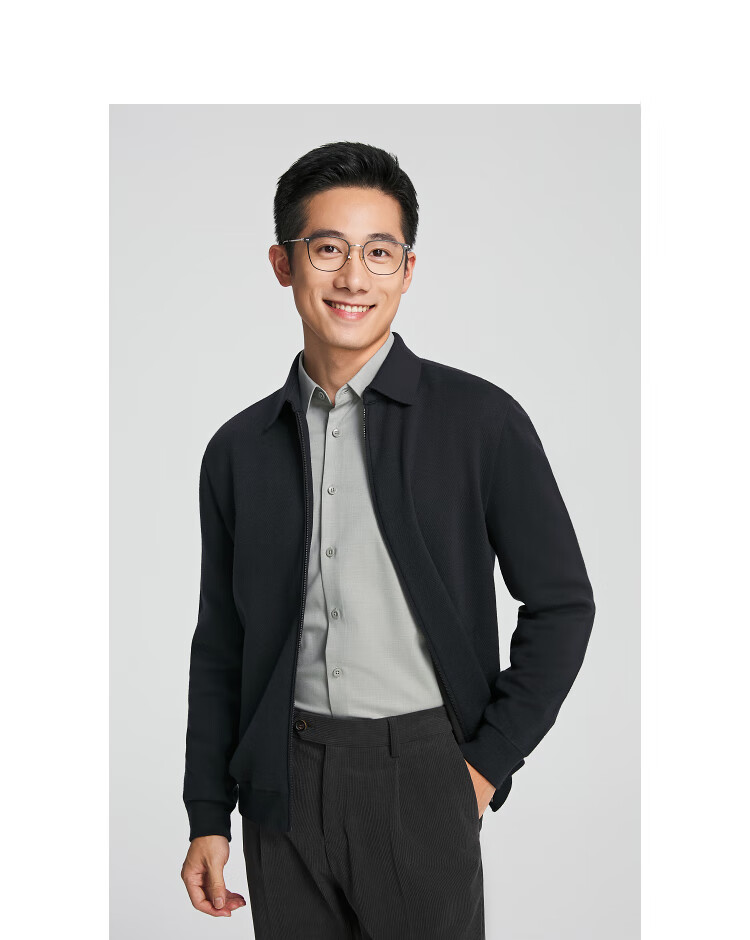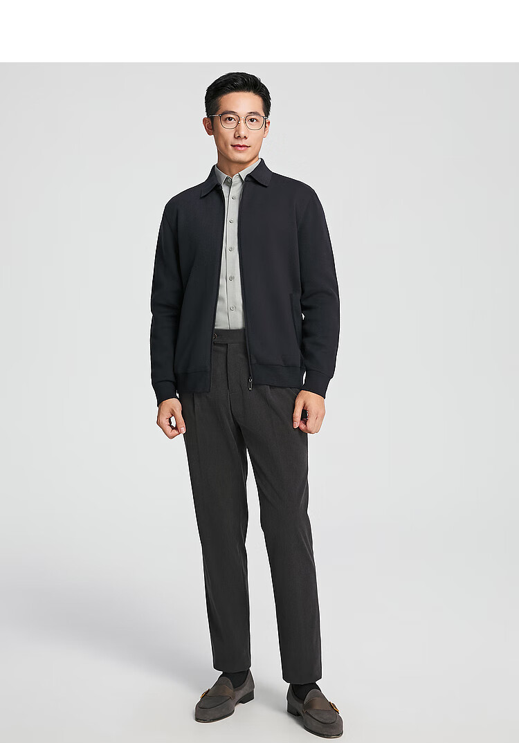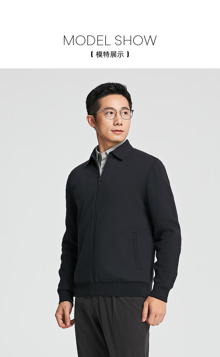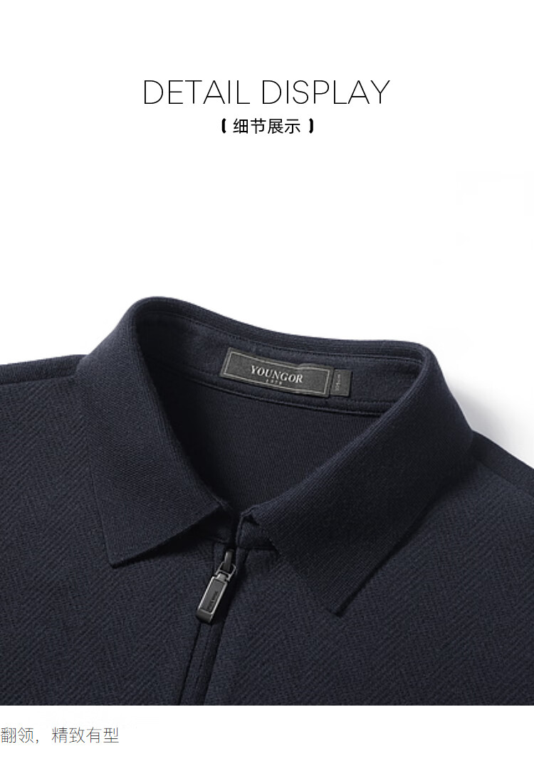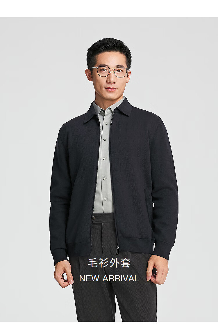 YOUNGOR sweater men's young men's sweater lapel zipper cardigan wool blend autumn outer wear shopping mall same style Navy YWHW615219FFA M 100cm