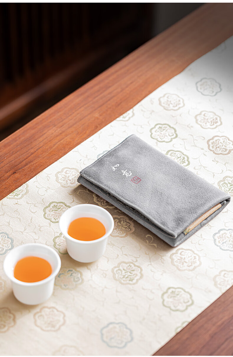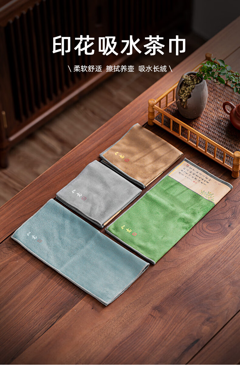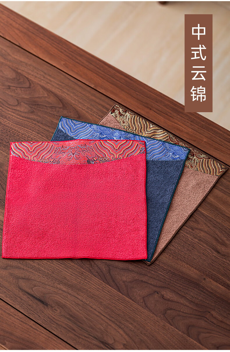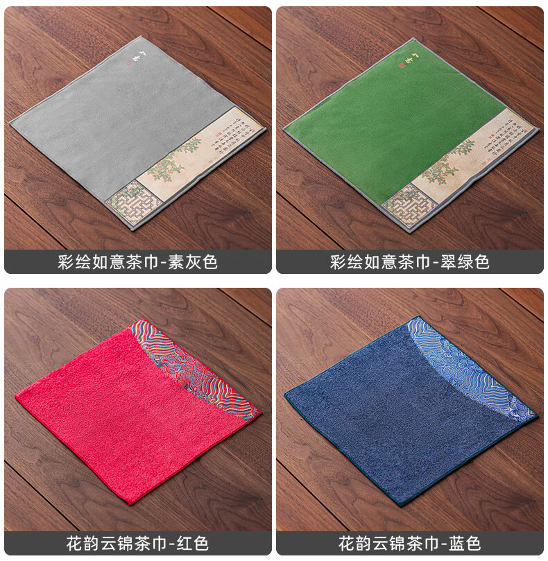 Zheming thickened tea towel cloth absorbent Zen style Chinese tea table special towel rag Chinese style pot towel mat high-end tea cloth painted Ruyi tea towel emerald green