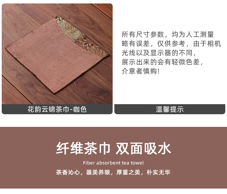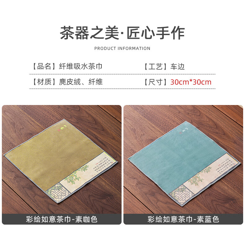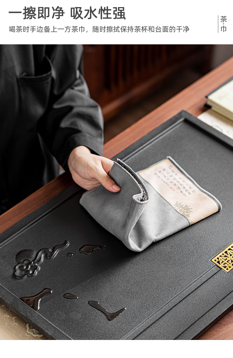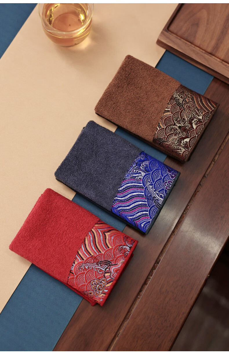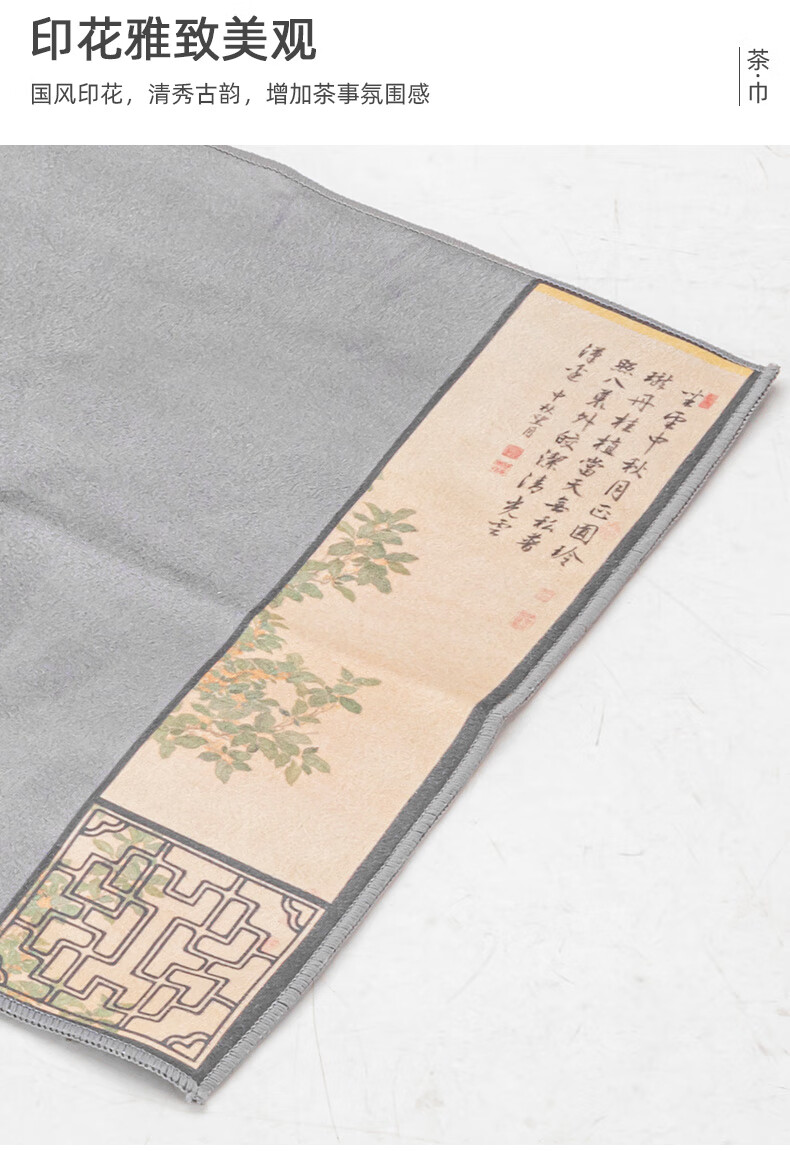 Zheming thickened tea towel cloth absorbent Zen style Chinese tea table special towel rag Chinese style pot towel mat high-end tea cloth painted Ruyi tea towel emerald green