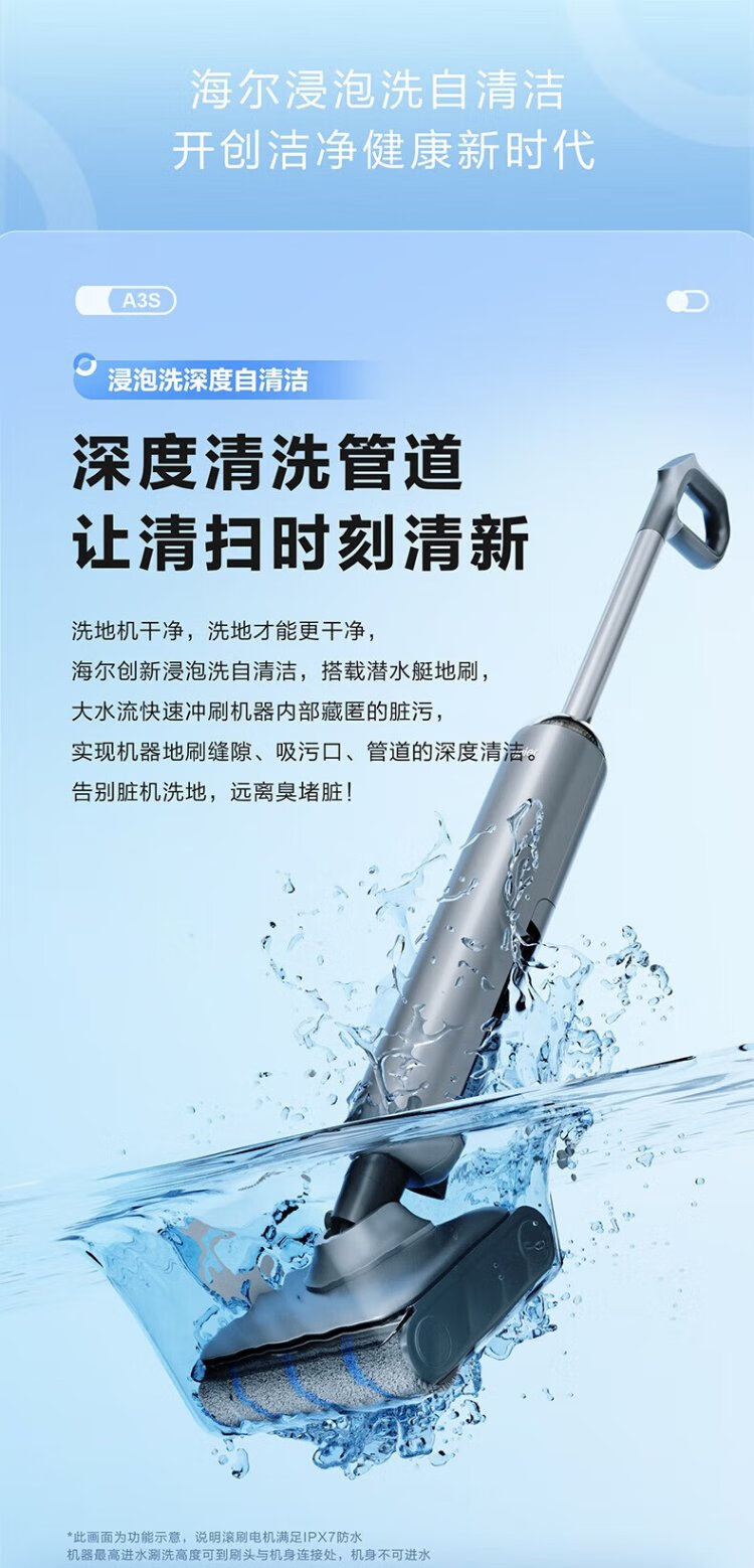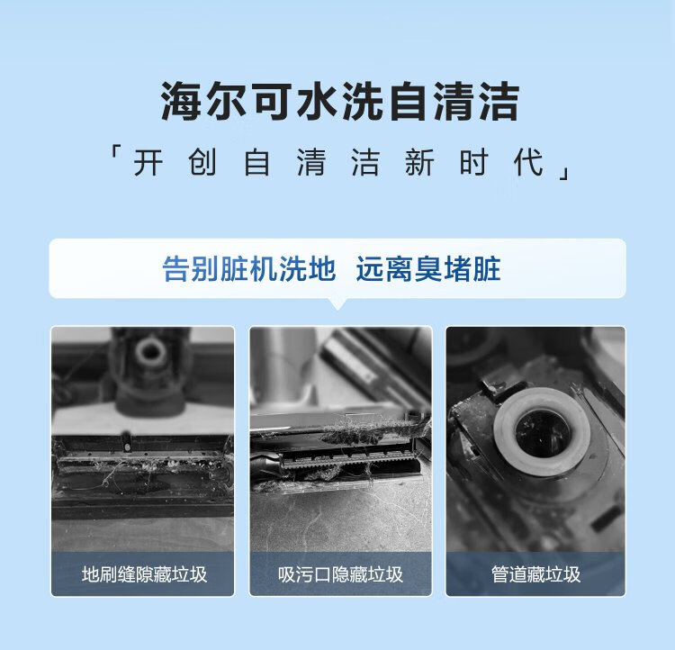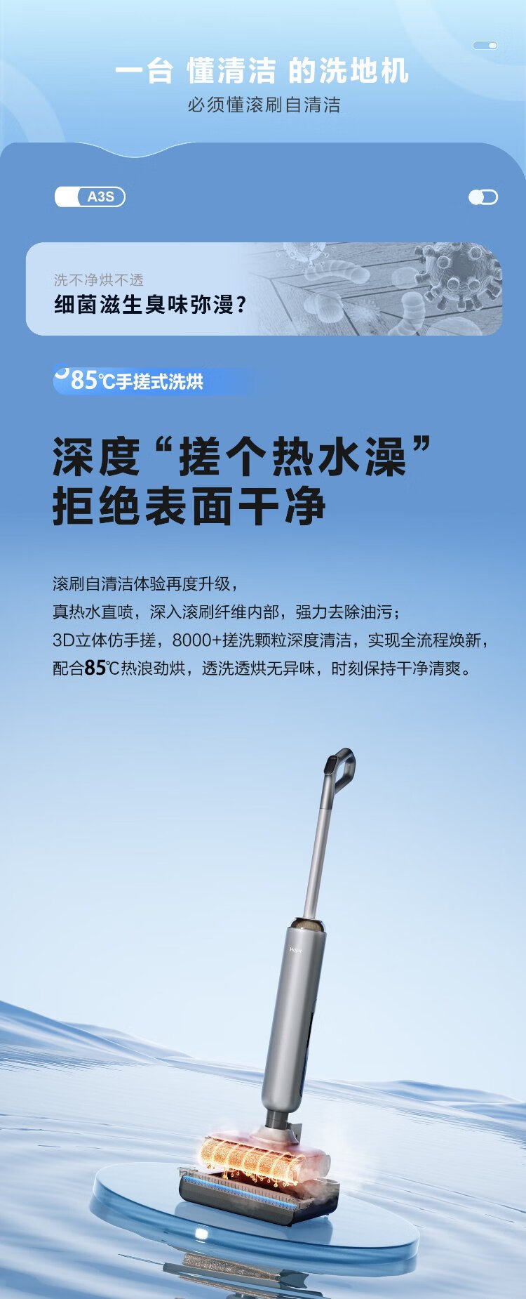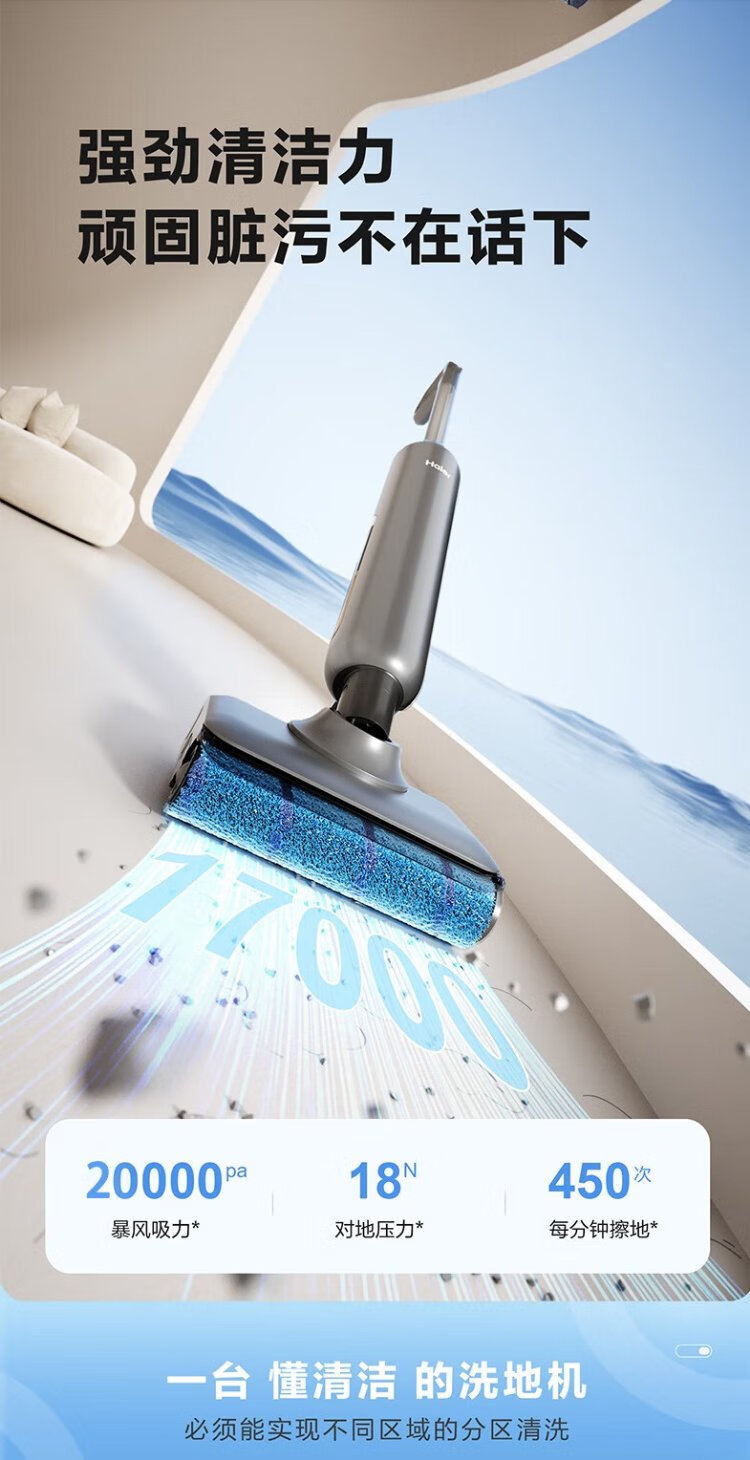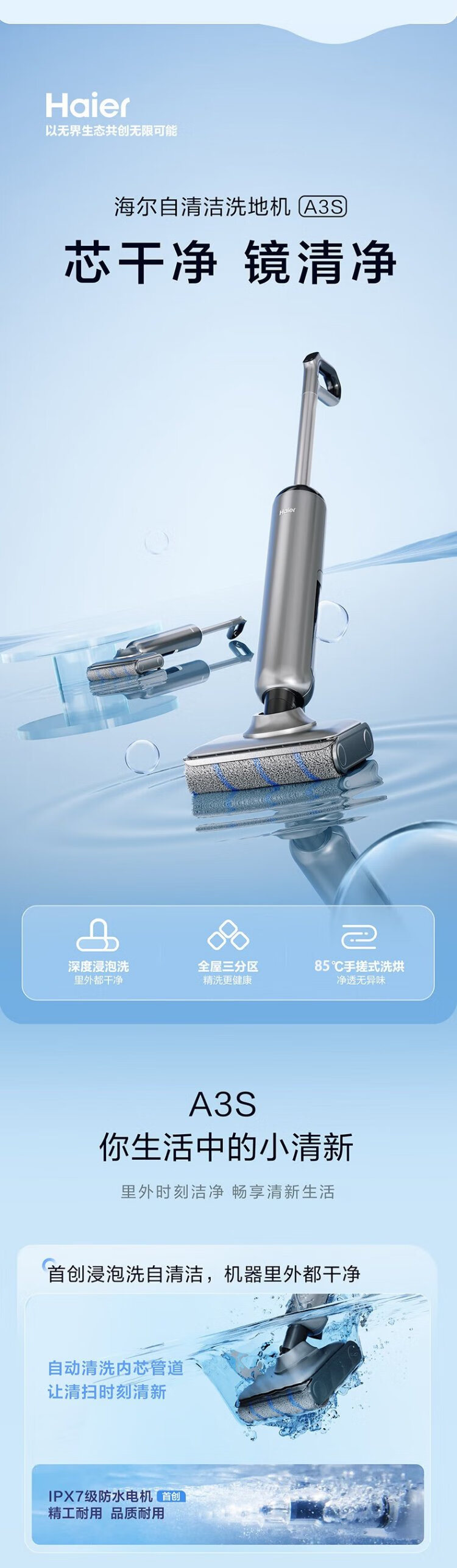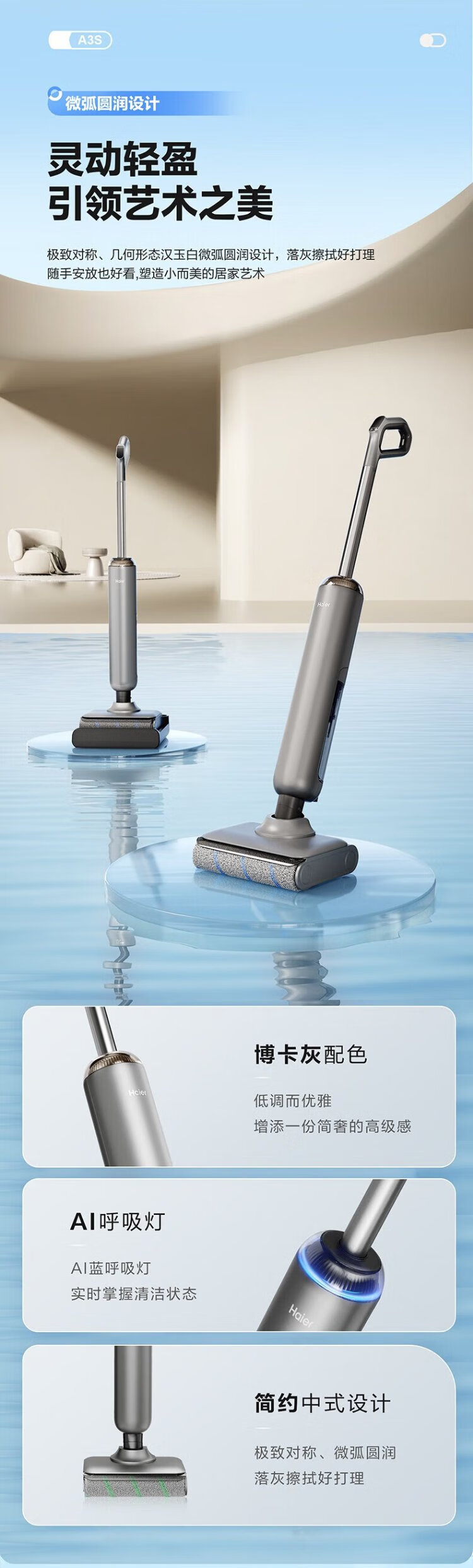 Haier household floor scrubber A3S high temperature 95 hot air 180 flat-laying anti-winding intelligent suction and mopping all-in-one automatic cleaning washing sweeper mop sterilization handheld air vacuum cleaner A3S (elegant piano paint gray version)