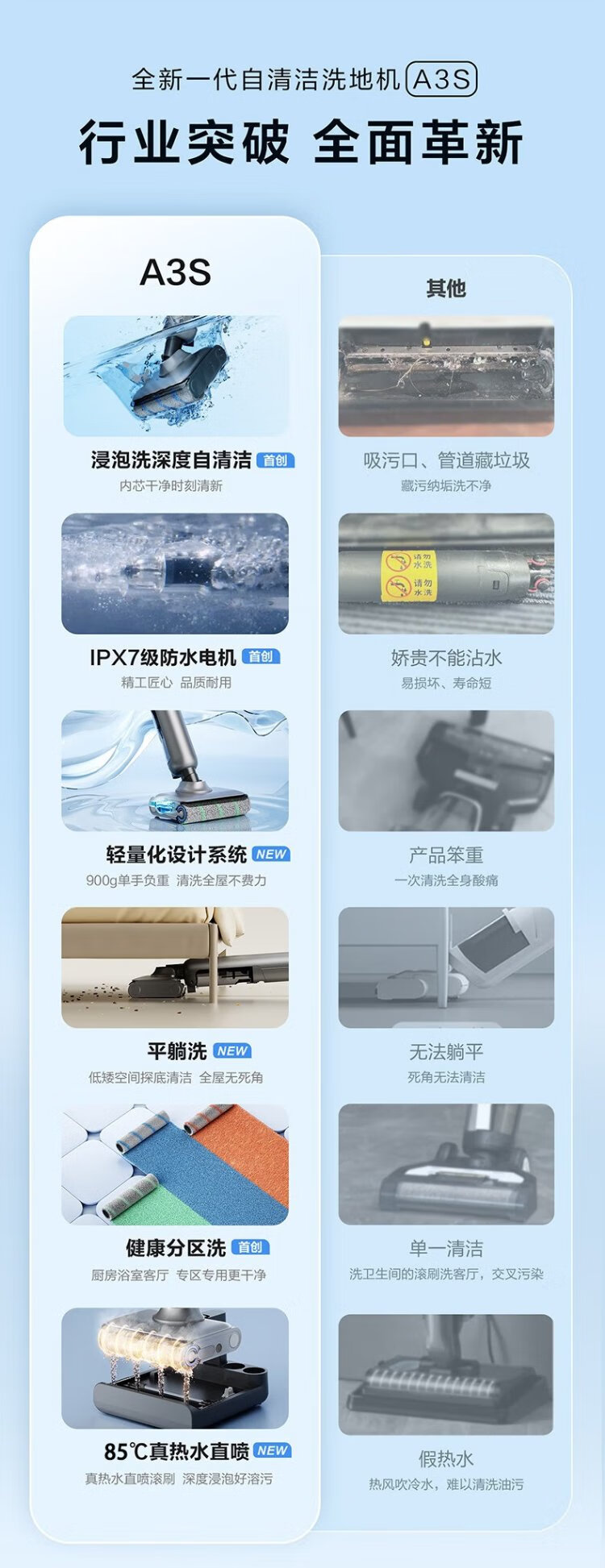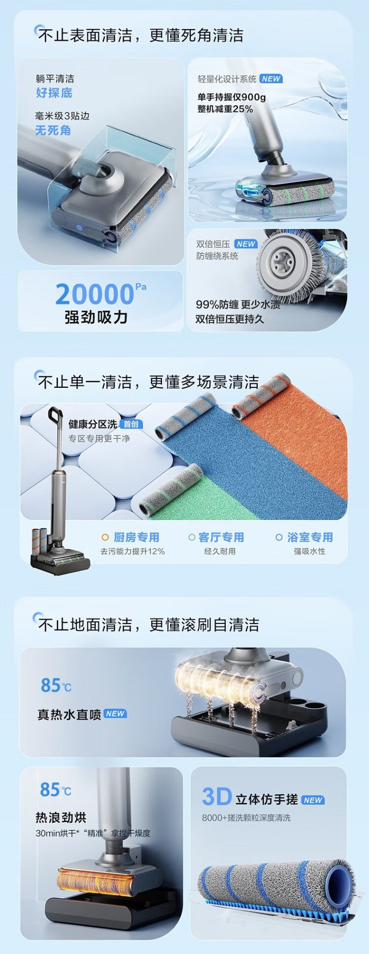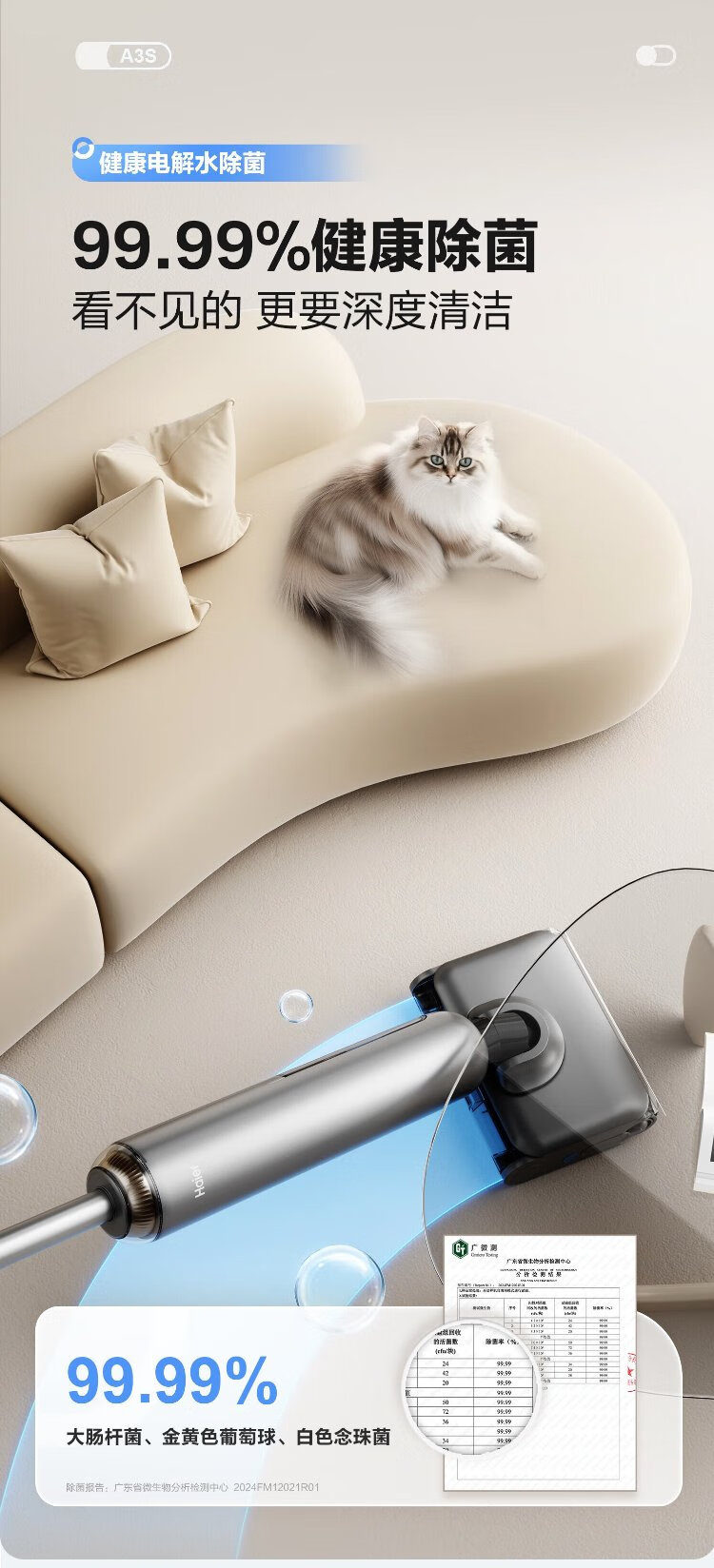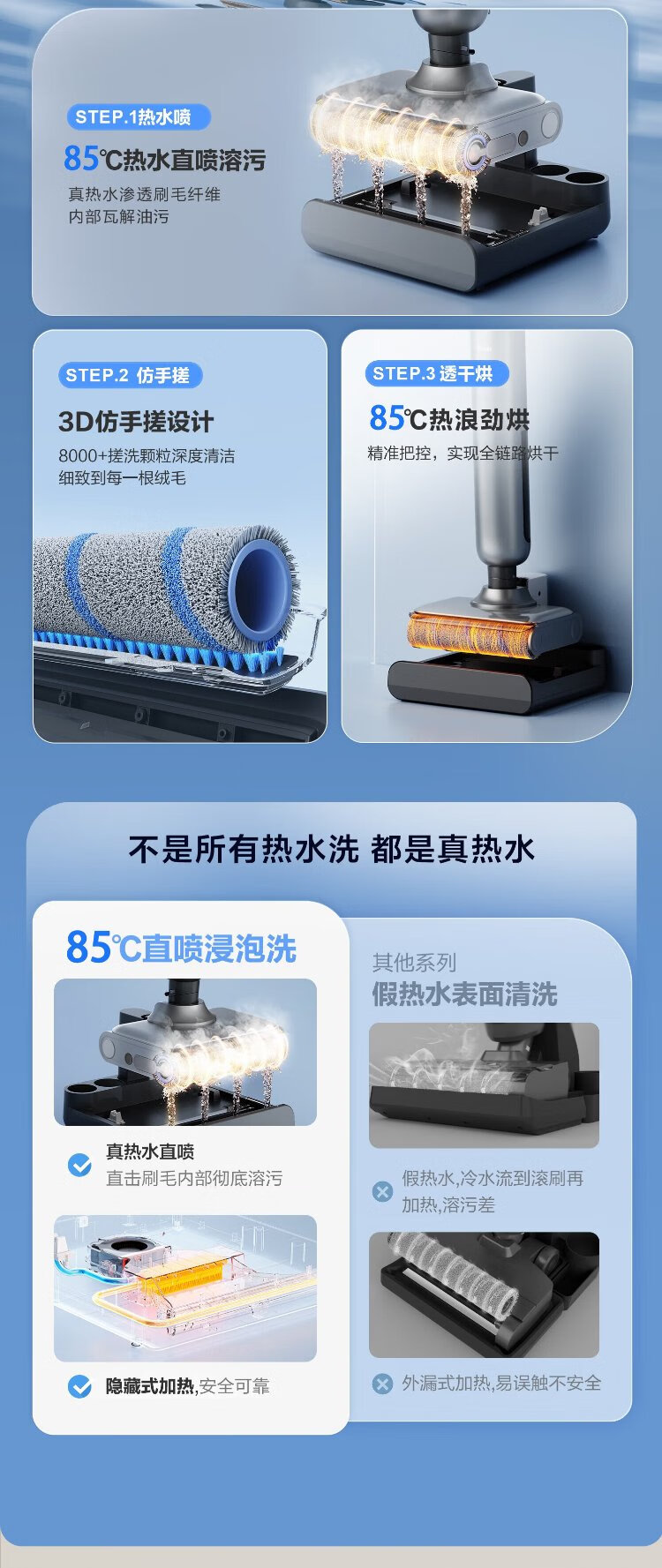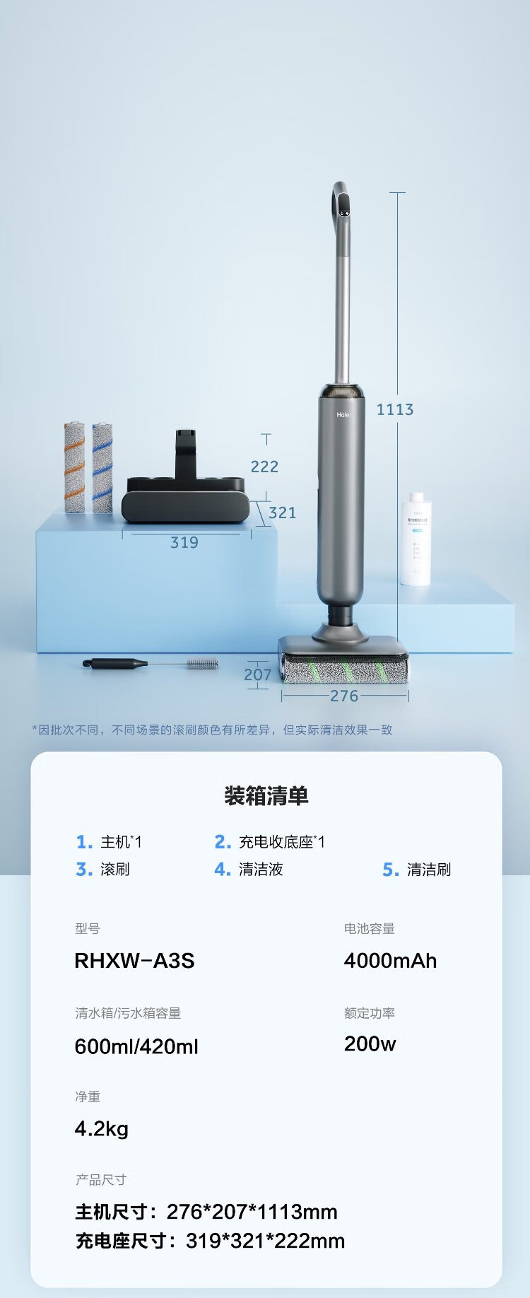 Haier household floor scrubber A3S high temperature 95 hot air 180 flat-laying anti-winding intelligent suction and mopping all-in-one automatic cleaning washing sweeper mop sterilization handheld air vacuum cleaner A3S (elegant piano paint gray version)