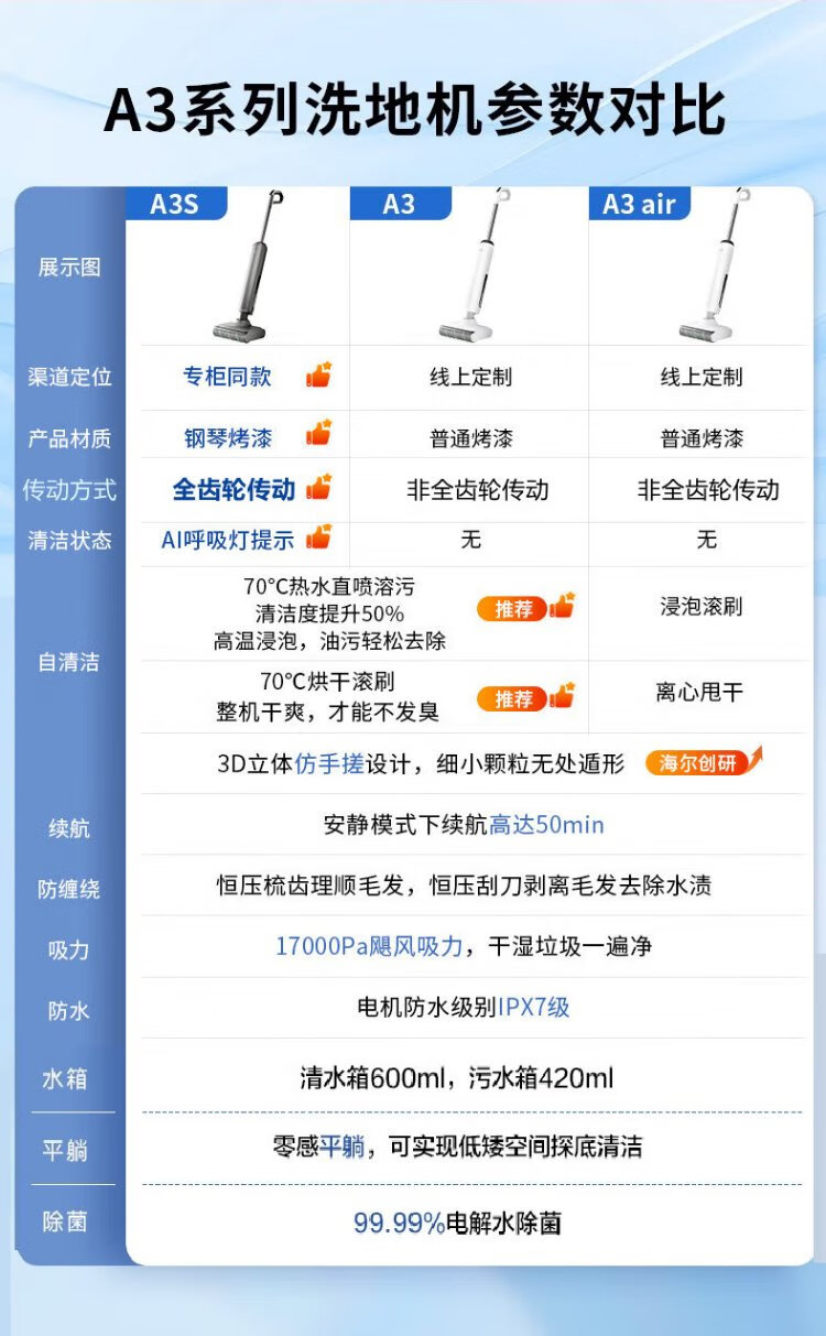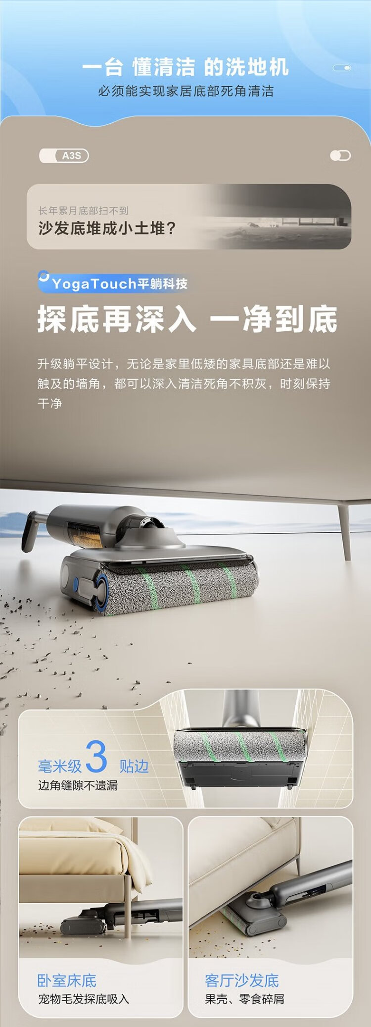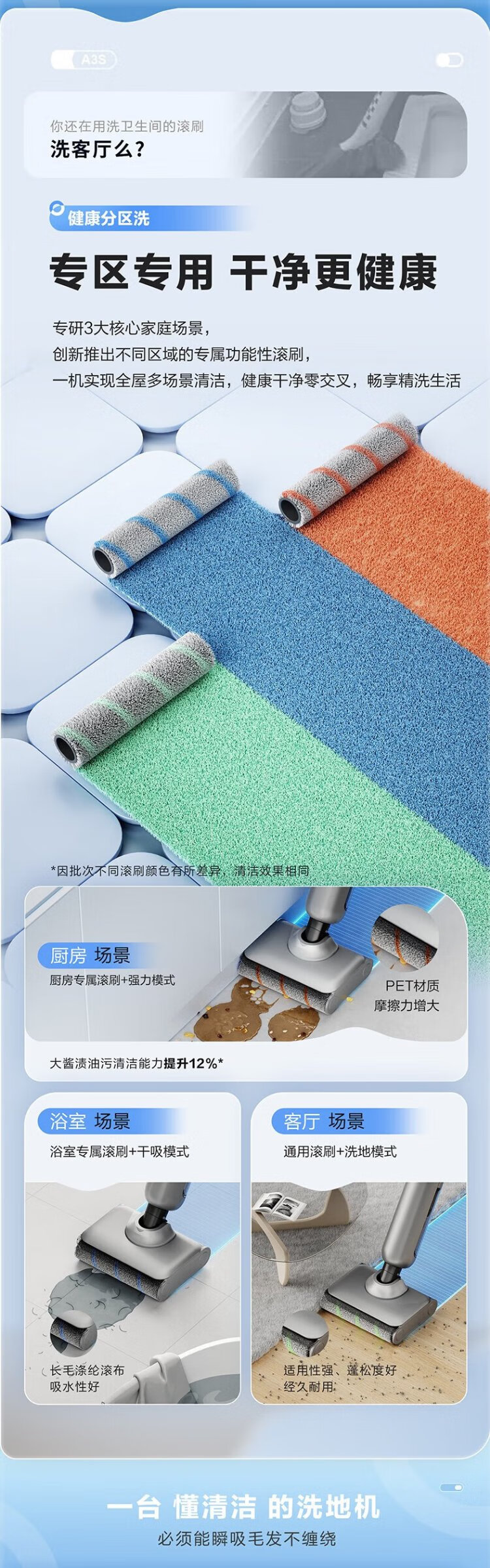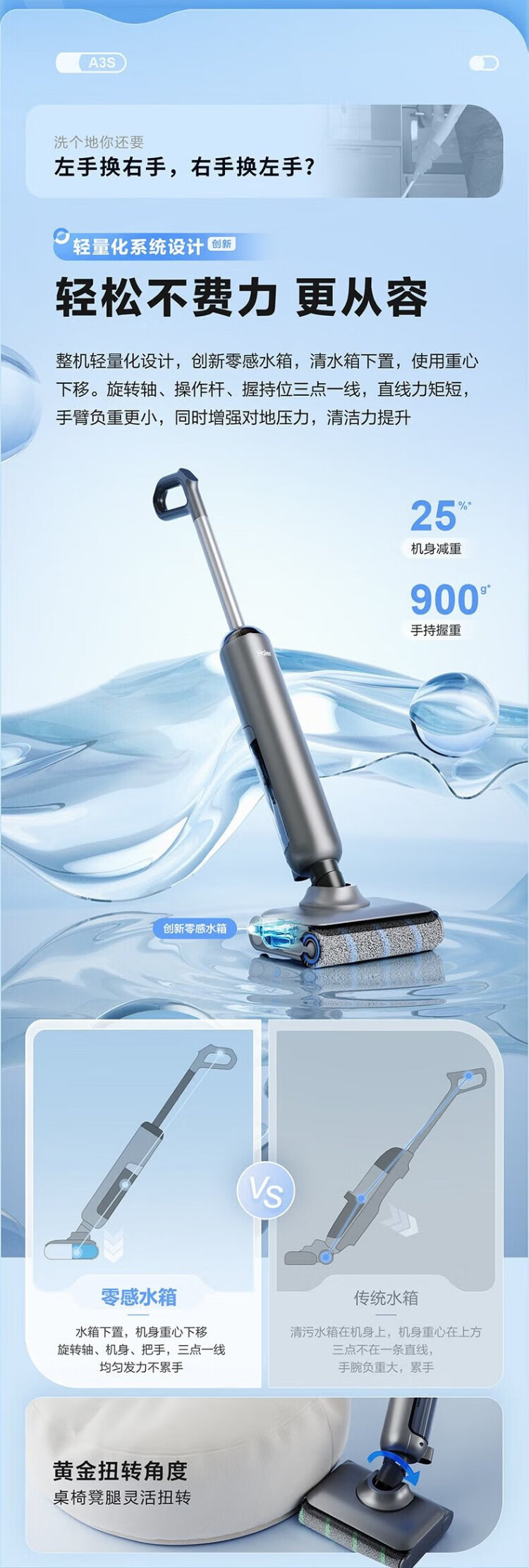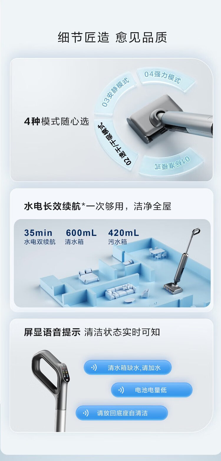 Haier household floor scrubber A3S high temperature 95 hot air 180 flat-laying anti-winding intelligent suction and mopping all-in-one automatic cleaning washing sweeper mop sterilization handheld air vacuum cleaner A3S (elegant piano paint gray version)
