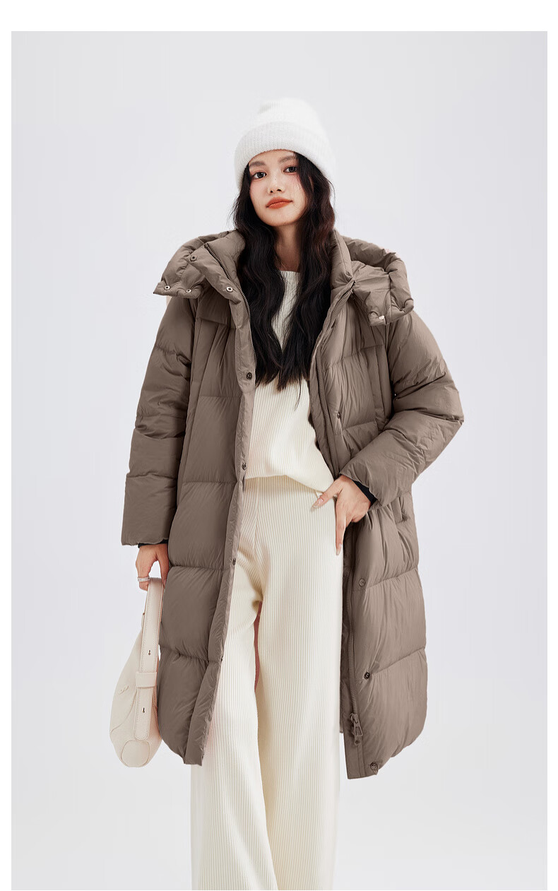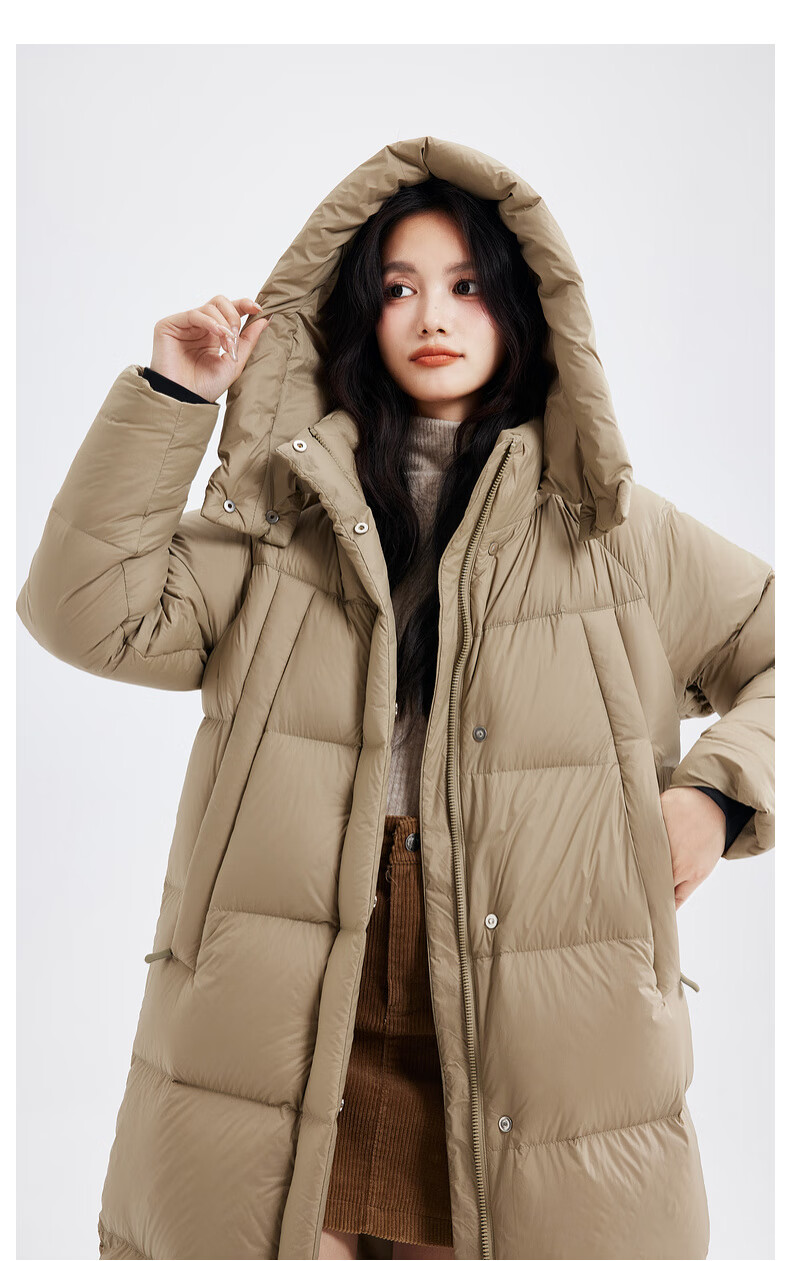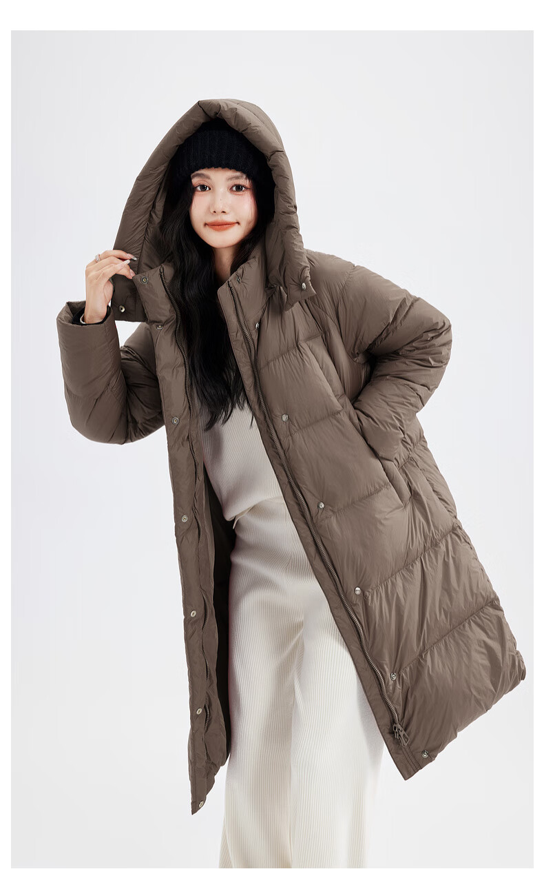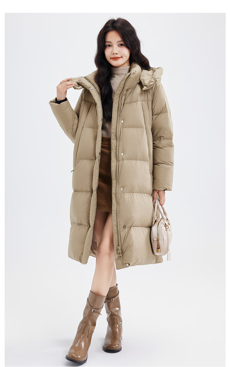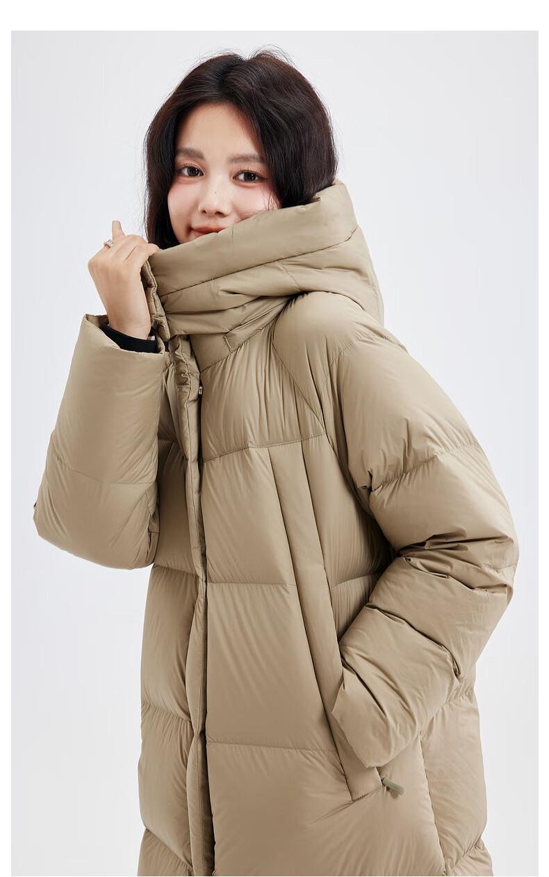 Xue Zhongfei's new versatile and fashionable soft puff mid-length women's down jacket is warm and cold-proof, fashionable and skin-friendly, khaki color|7101 S 160/84A