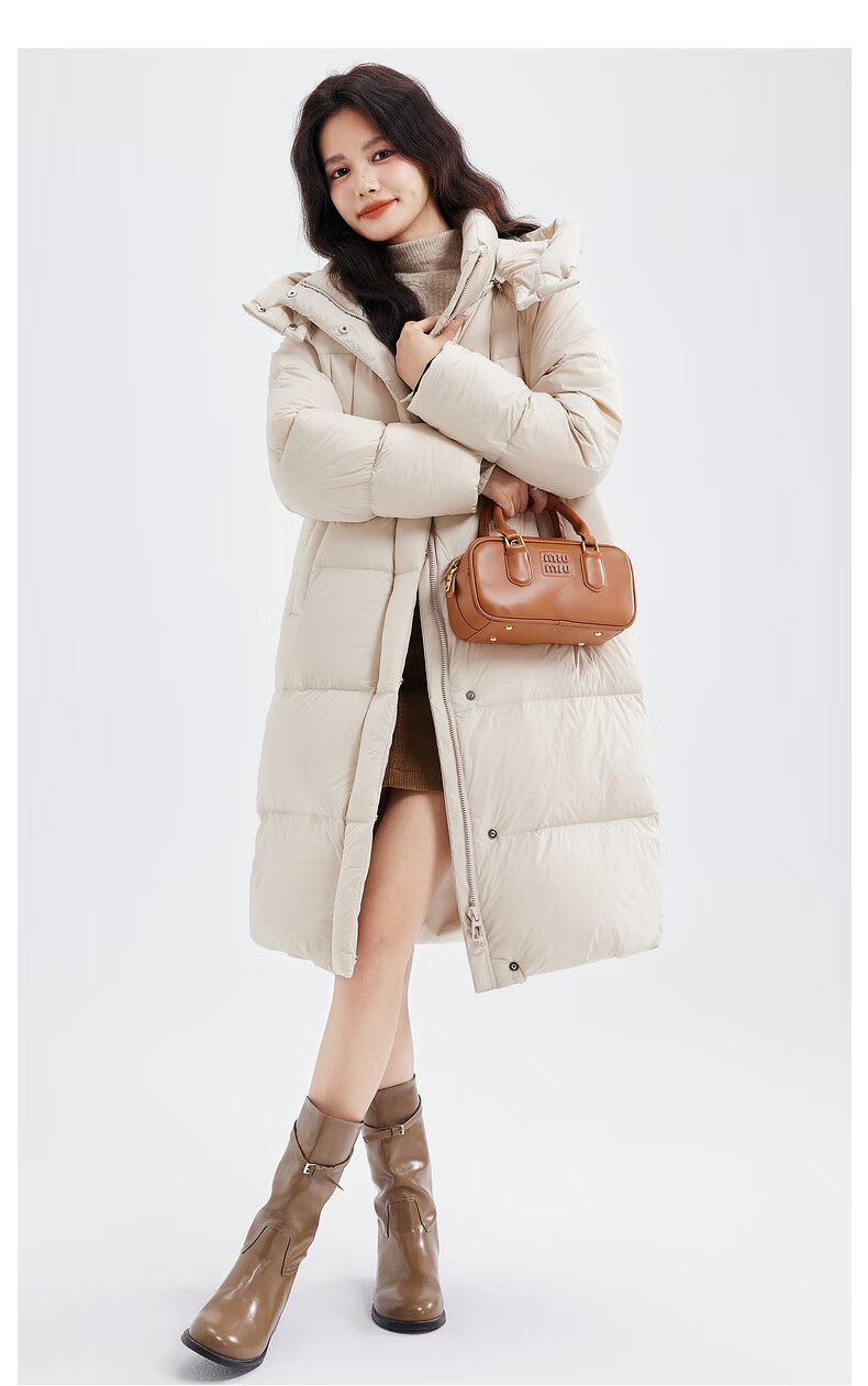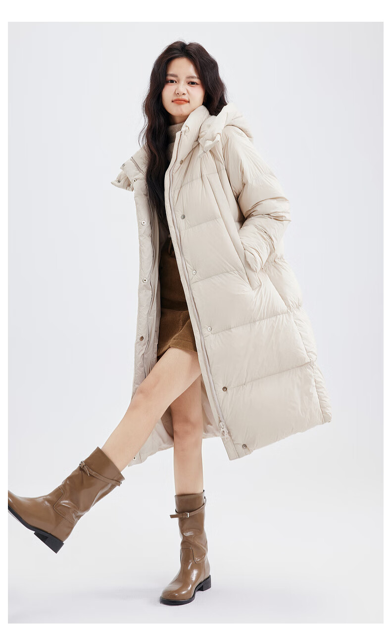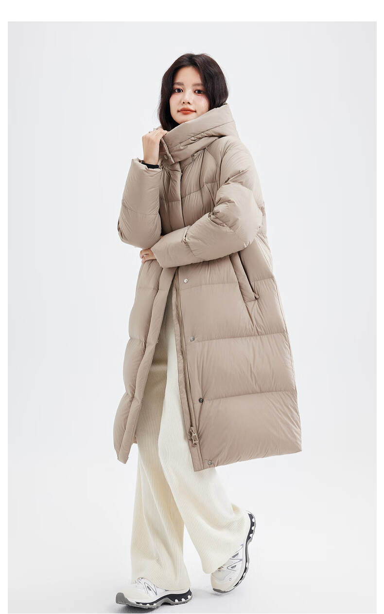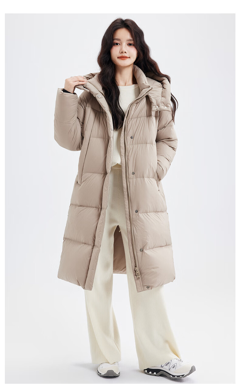 Xue Zhongfei's new versatile and fashionable soft puff mid-length women's down jacket is warm and cold-proof, fashionable and skin-friendly, khaki color|7101 S 160/84A