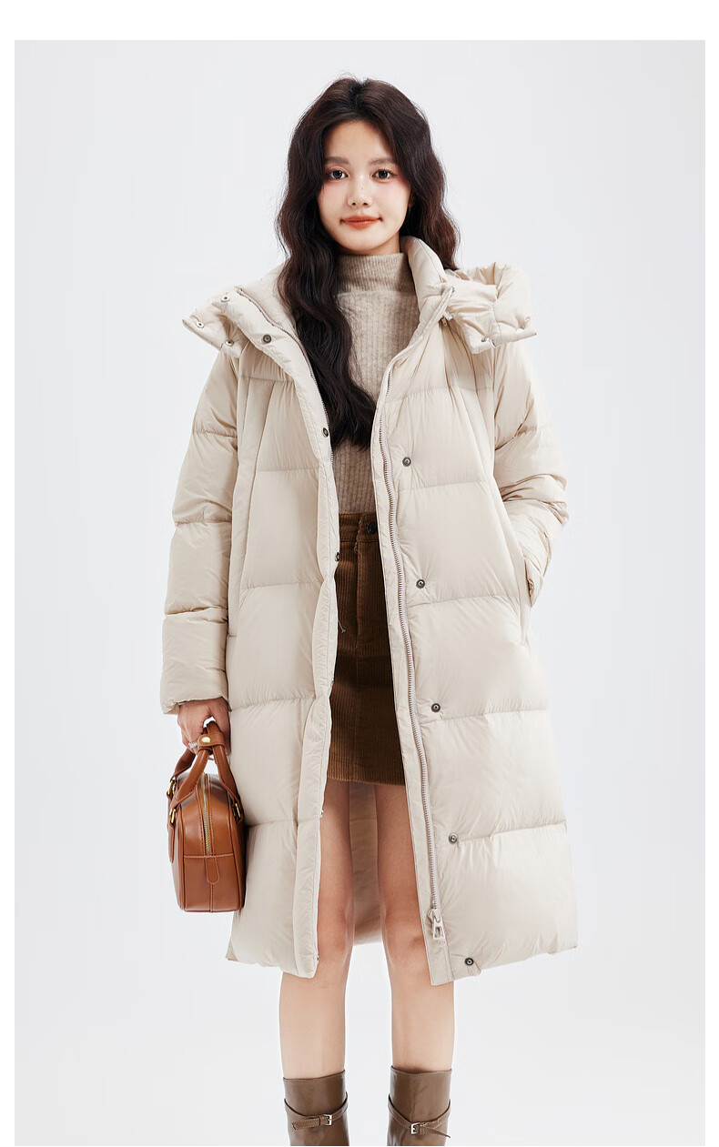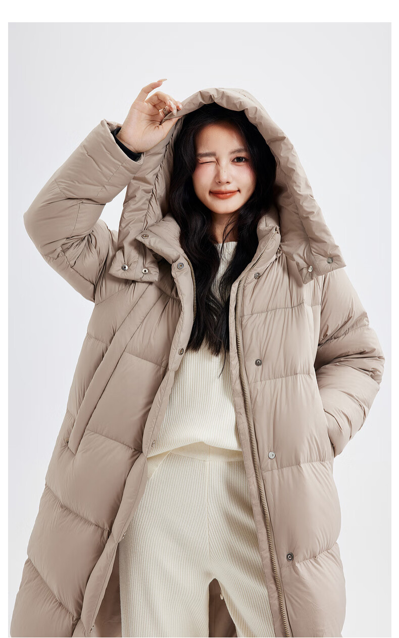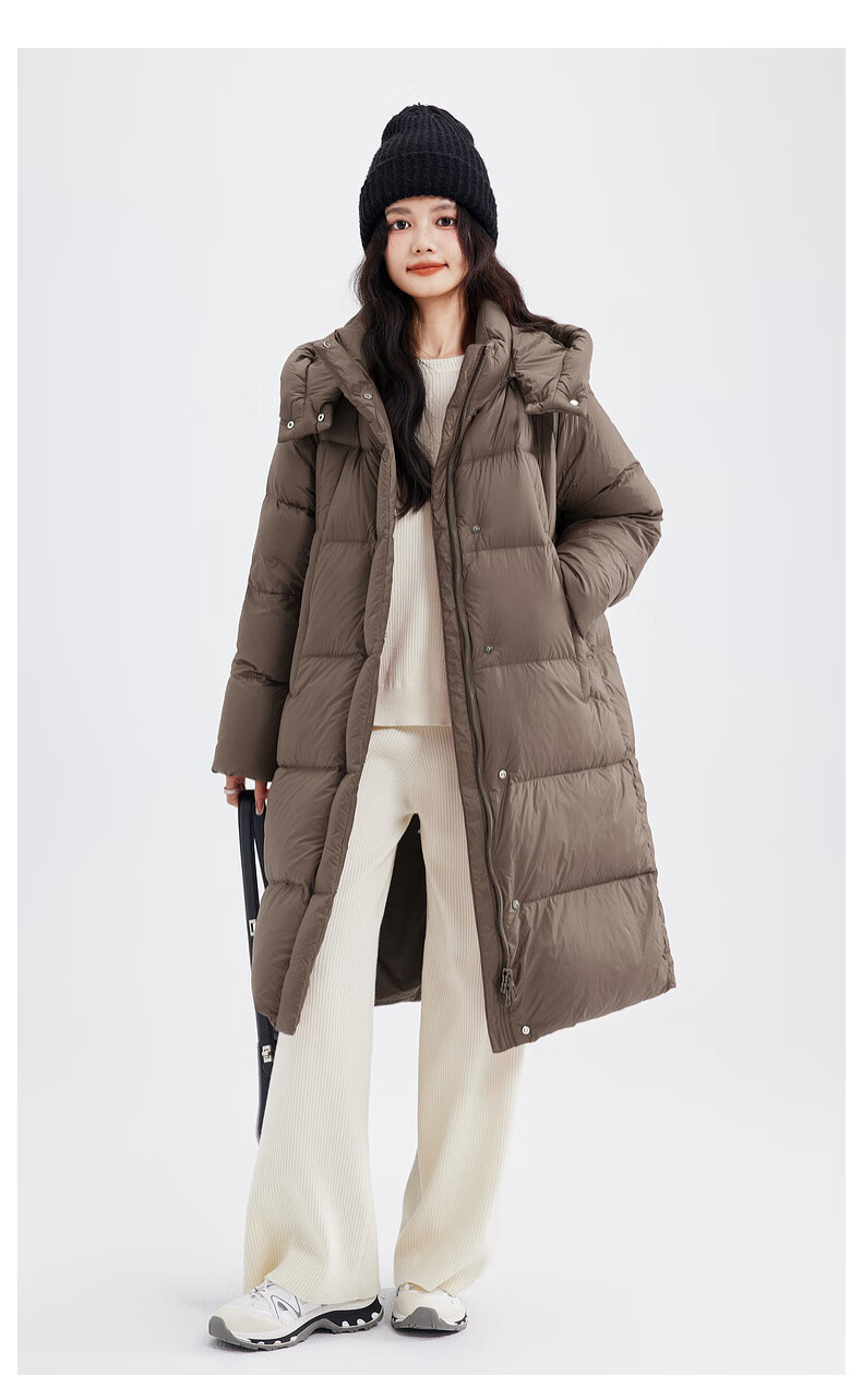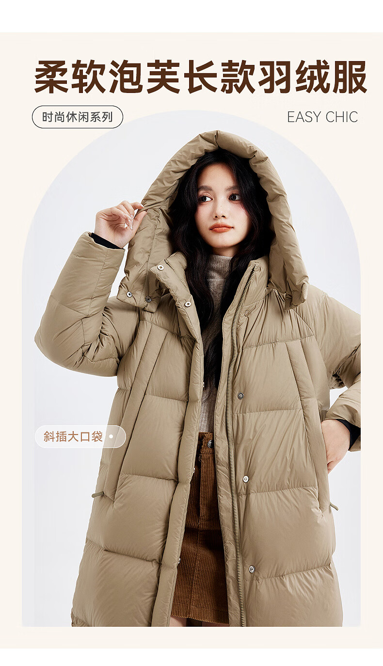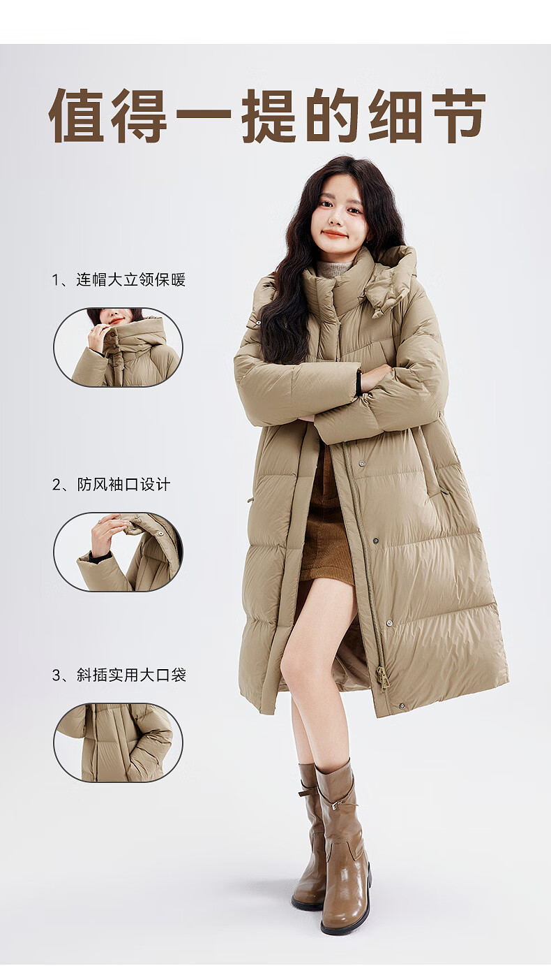 Xue Zhongfei's new versatile and fashionable soft puff mid-length women's down jacket is warm and cold-proof, fashionable and skin-friendly, khaki color|7101 S 160/84A