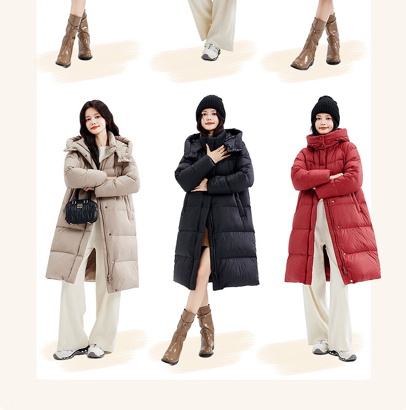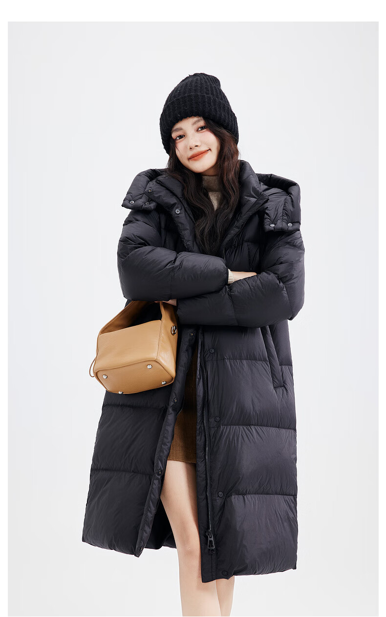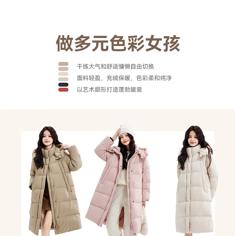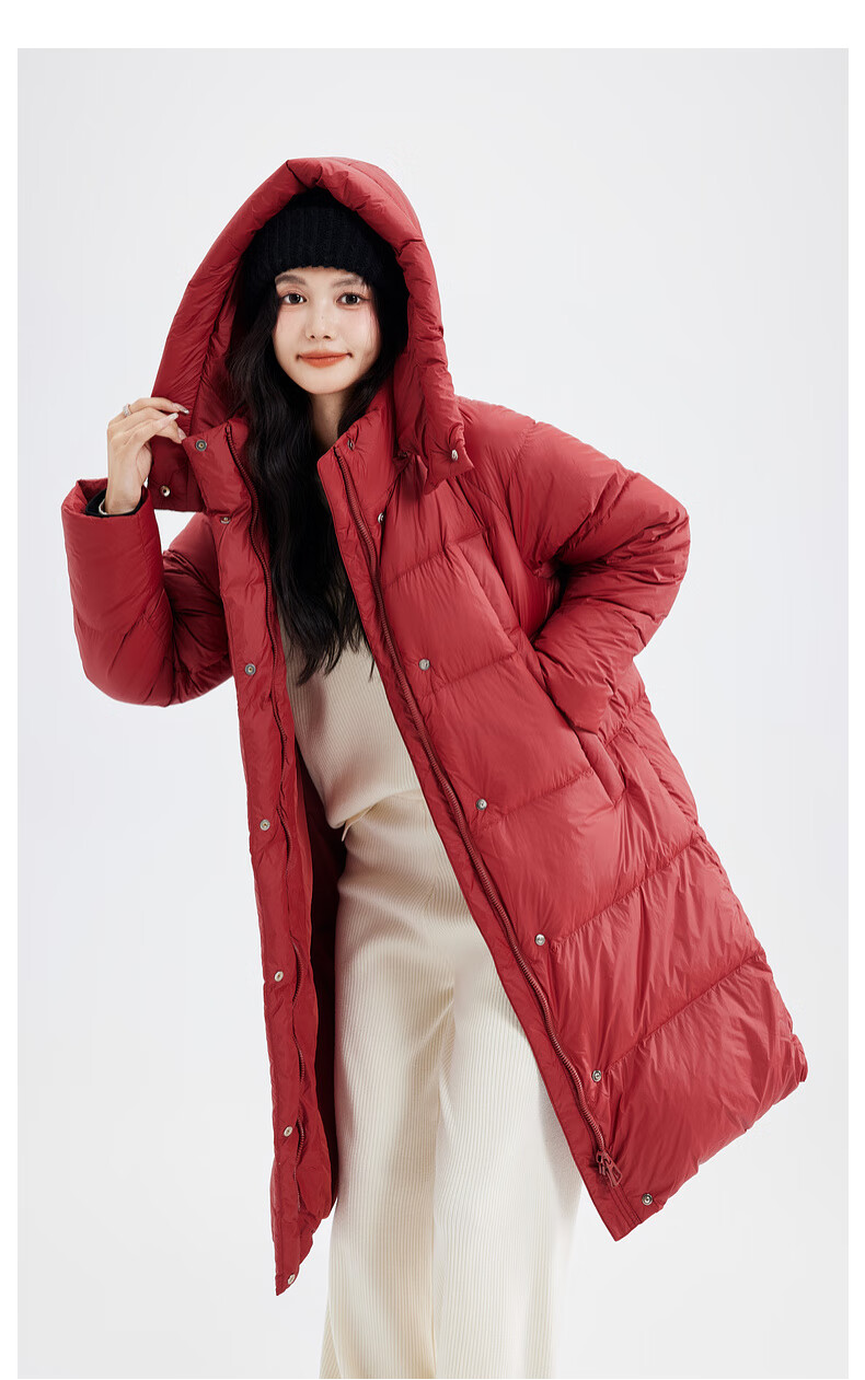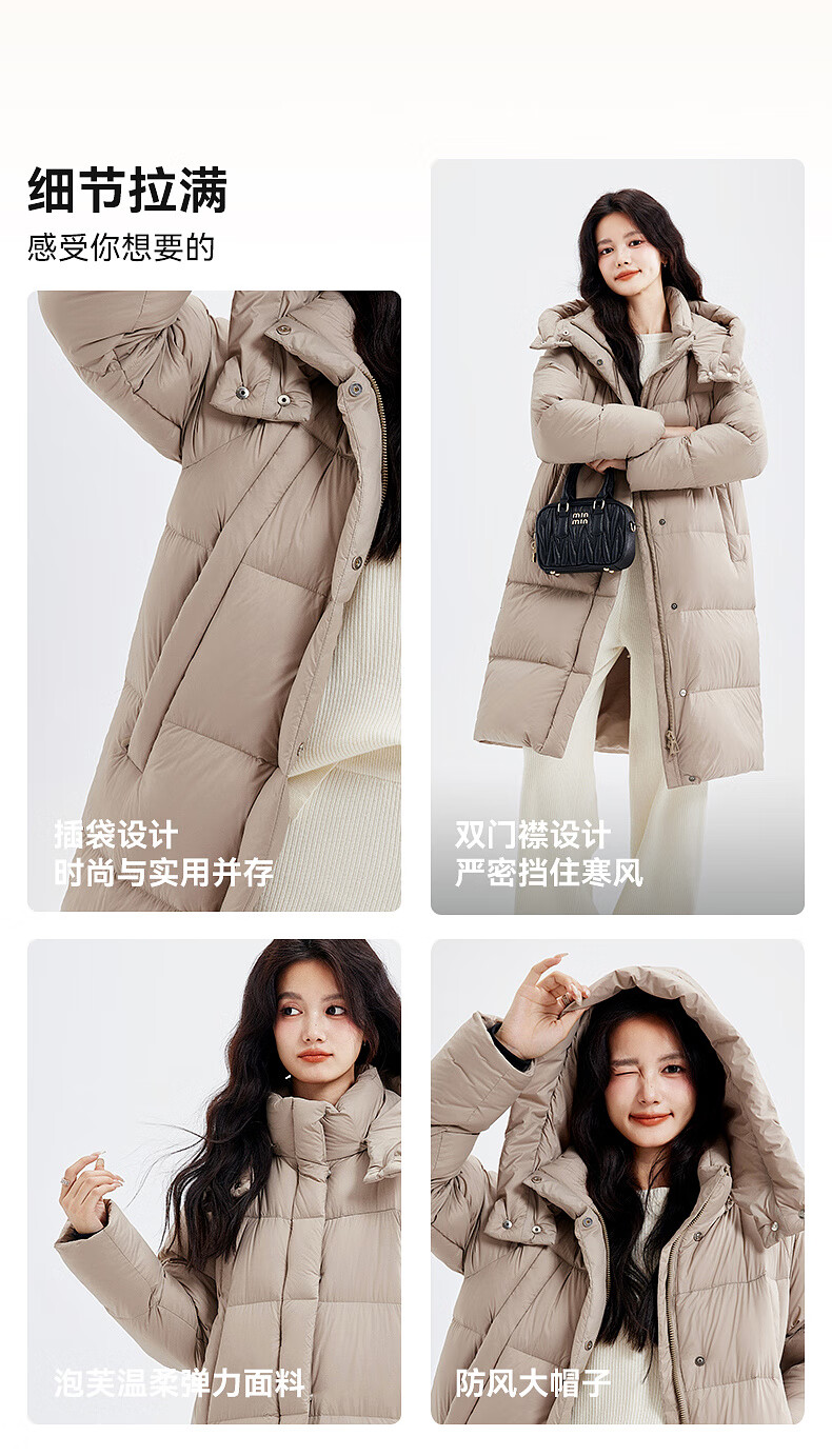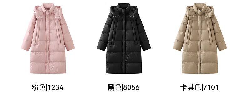 Xue Zhongfei's new versatile and fashionable soft puff mid-length women's down jacket is warm and cold-proof, fashionable and skin-friendly, khaki color|7101 S 160/84A