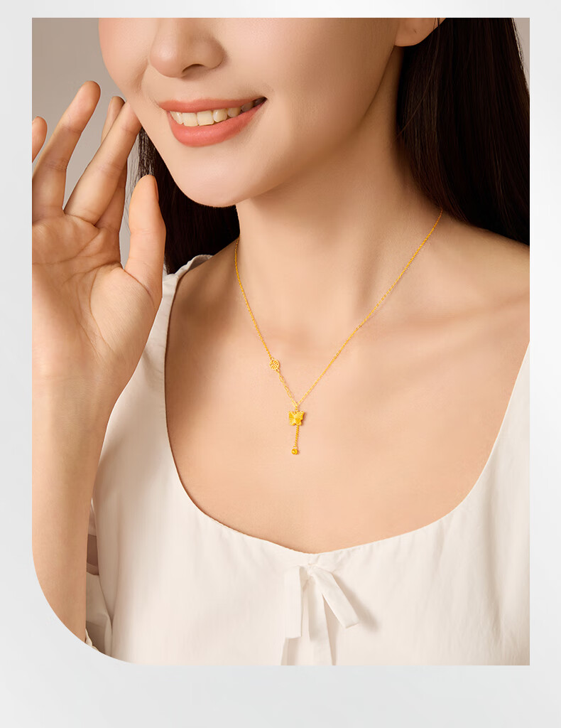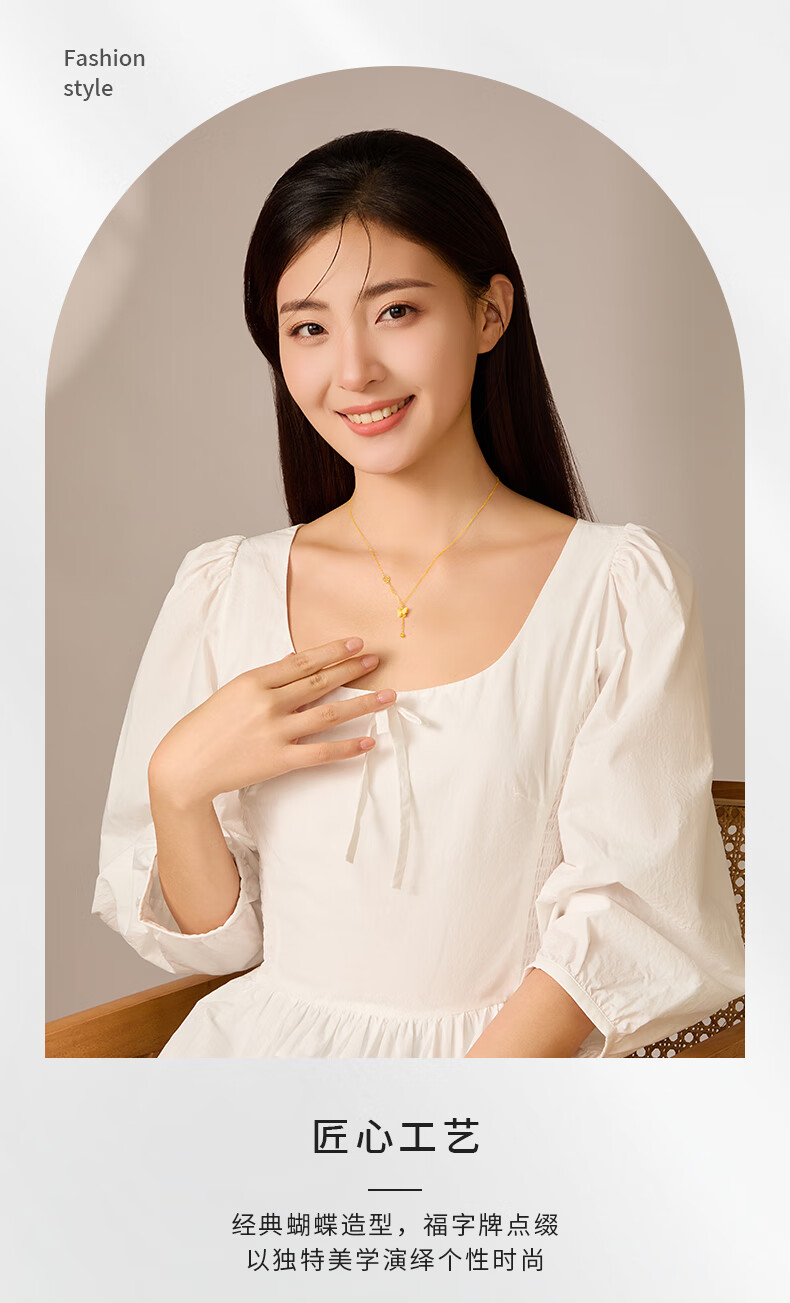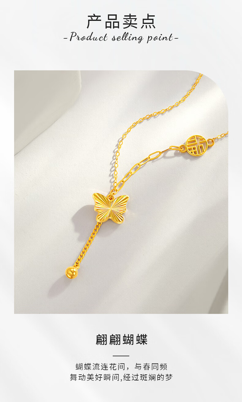 CHINA GOLD K gold necklace butterfly blessing word tassel pendant clavicle chain for mother and wife birthday gift about 1.3g