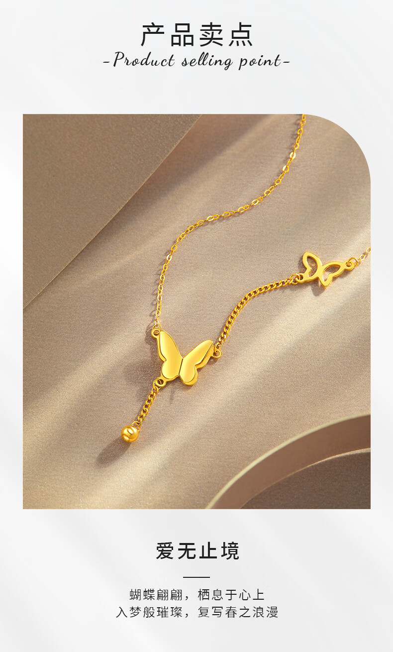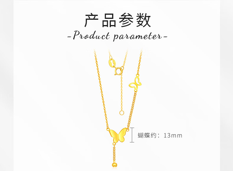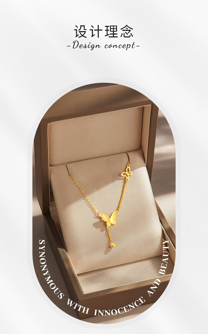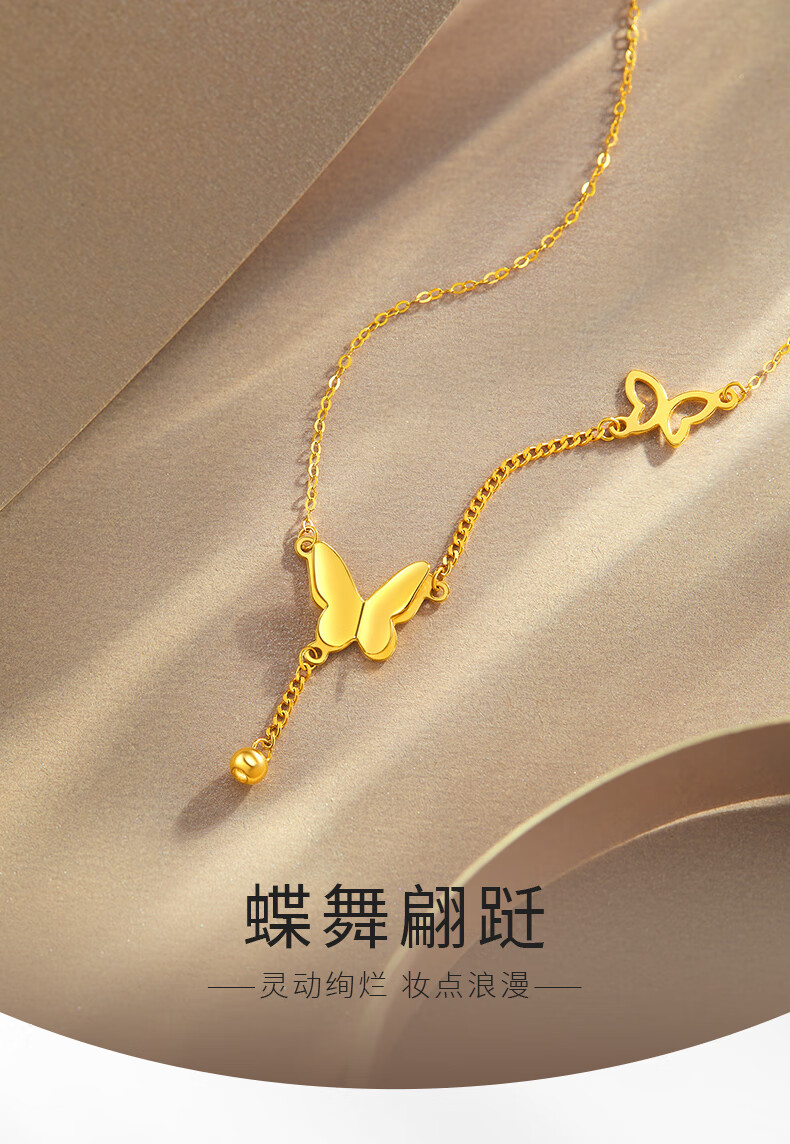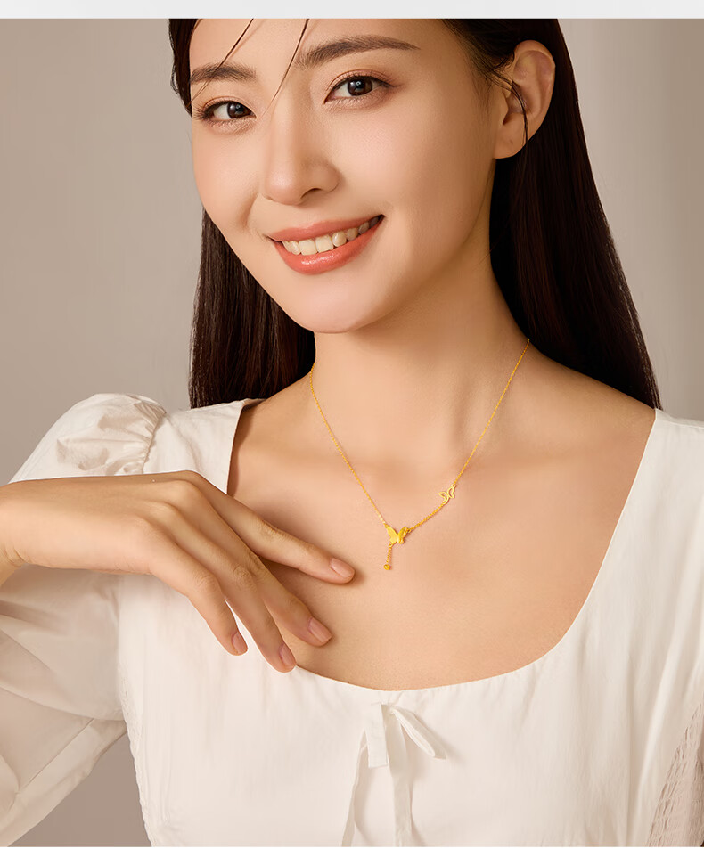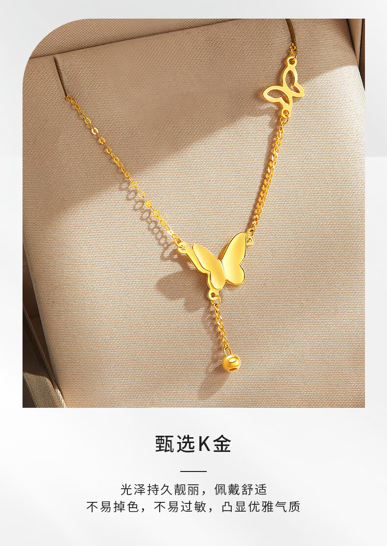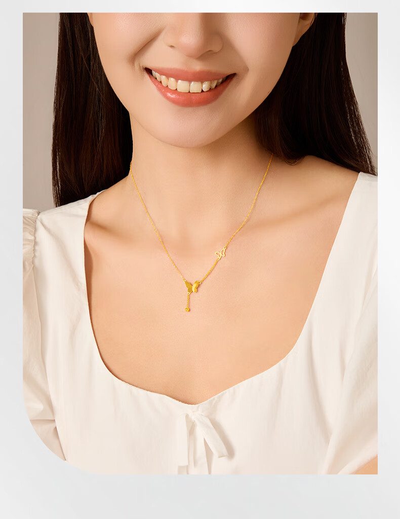 China Gold (CHINA GOLD) K golden necklace butterfly tassel set clavicle chain for mother, wife, birthday gift, Valentine's Day gift, about 1.2g