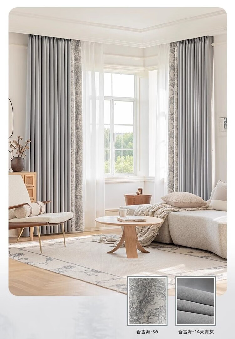 Jiameijia Drape Master Curtains Keqiao Chenille Custom Simple 2024 Blackout Light Luxury Installation Thickening Whole House Azure Gray I Custom Price Per Meter Contact Customer Service