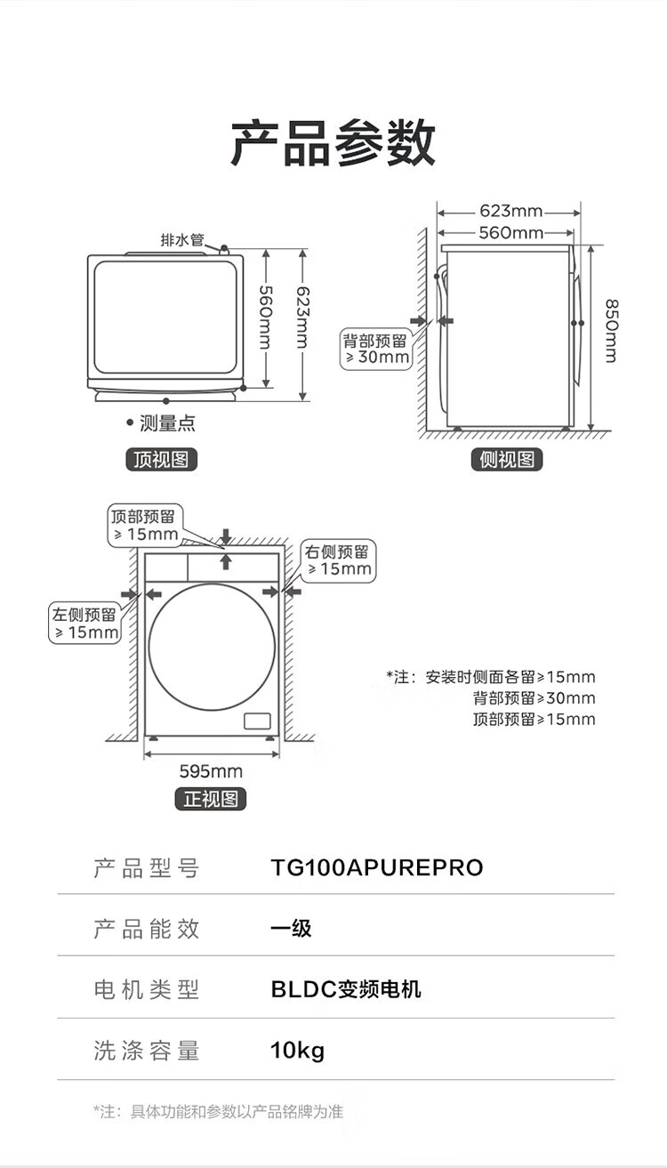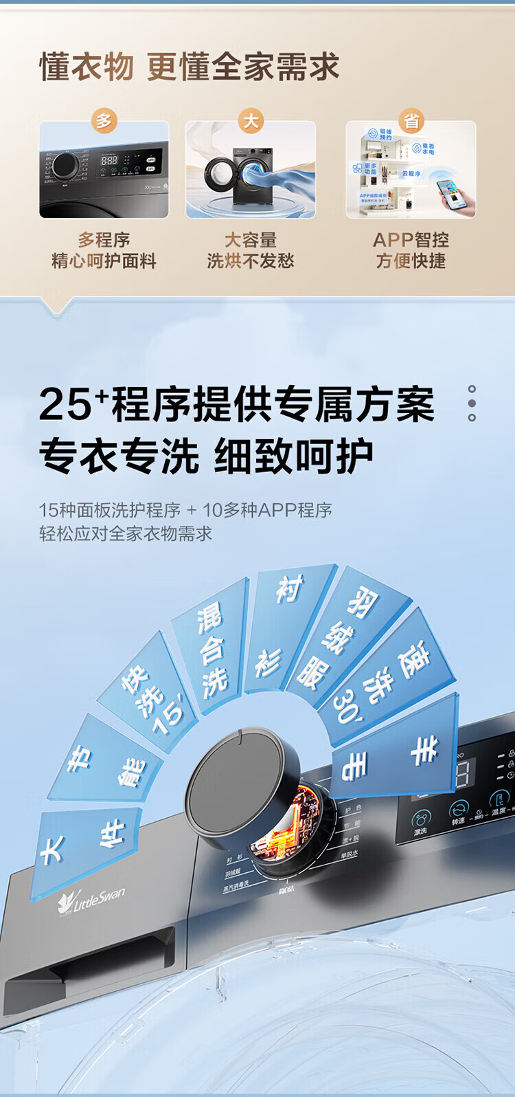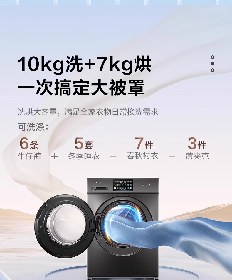 LittleSwan drum 10kg large capacity washing machine fully automatic sterilization, mite washing and drying BLDC frequency conversion TD100V23PRO TG100V23PRO elution upgraded version wash ratio 1.1