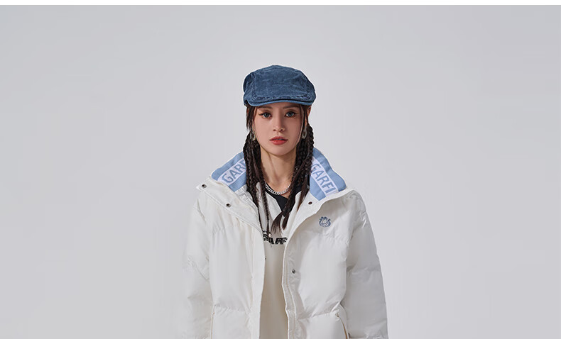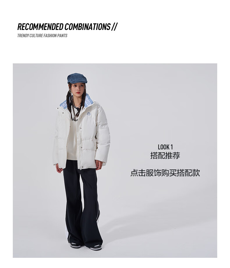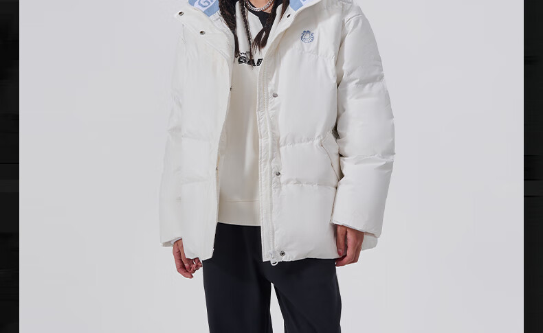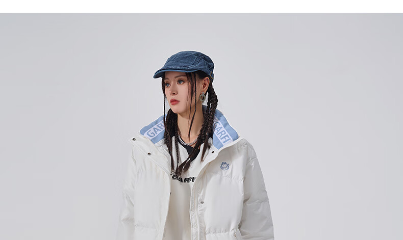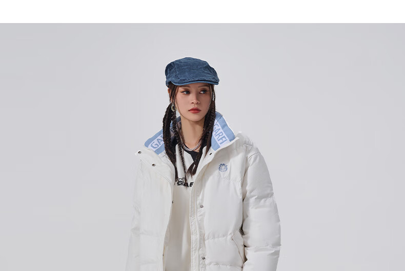 Fun2024 new autumn and winter trendy brand down jacket for women with contrasting color lapel letter print loose casual jacket warm white M