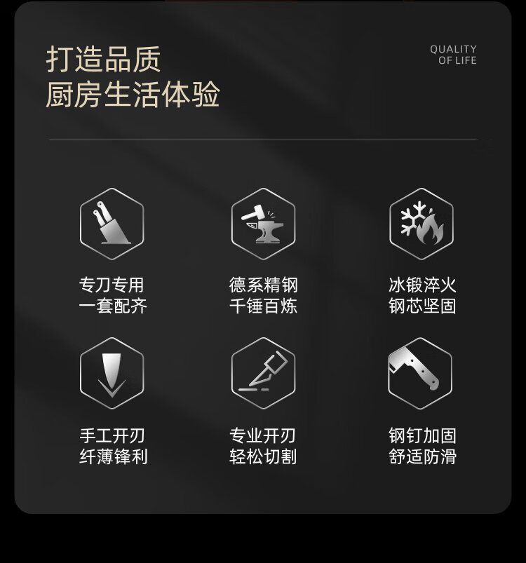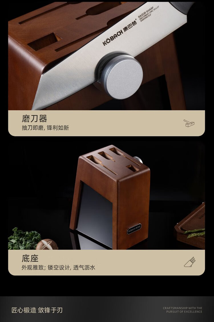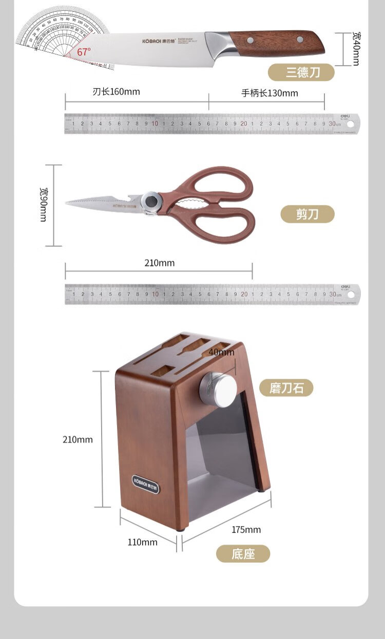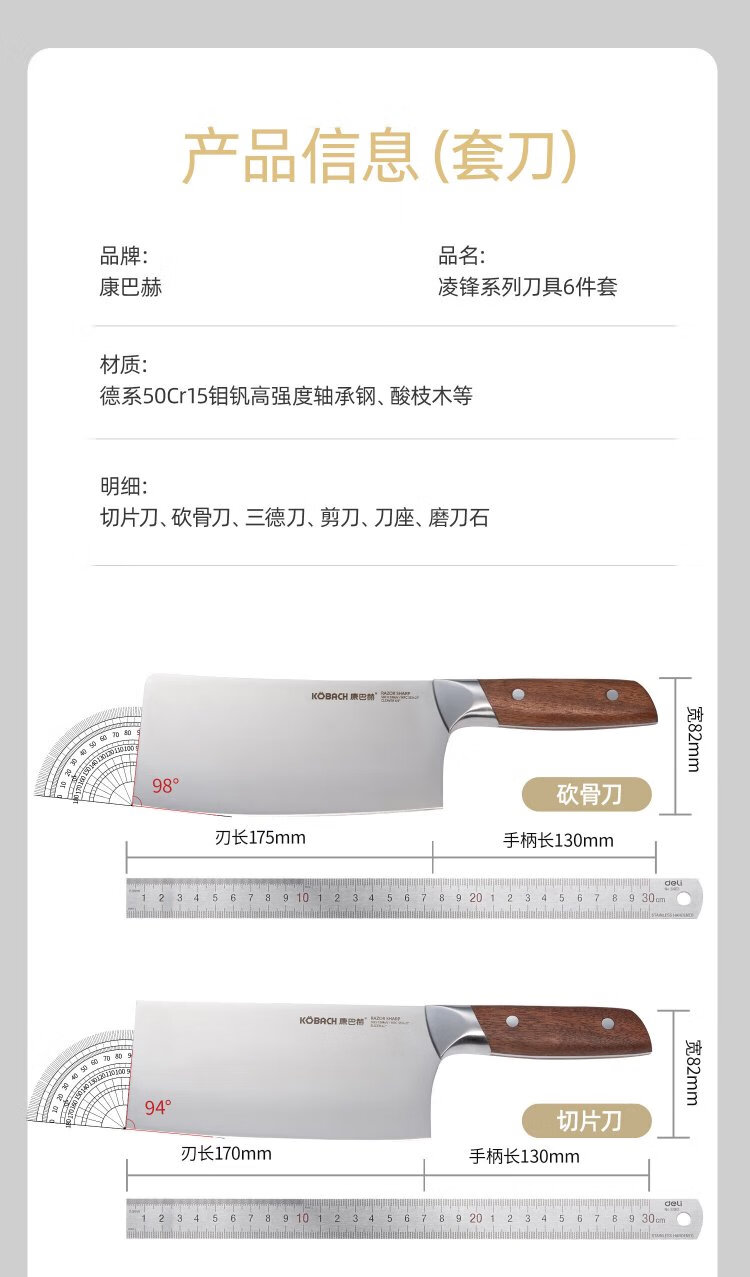 Konbach kitchen knife six-piece set household stainless steel vegetable cutting knife bone chopping knife fruit knife bone scissors with sharpener set knife set 6-piece