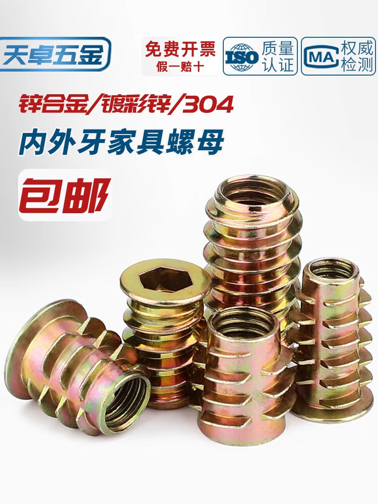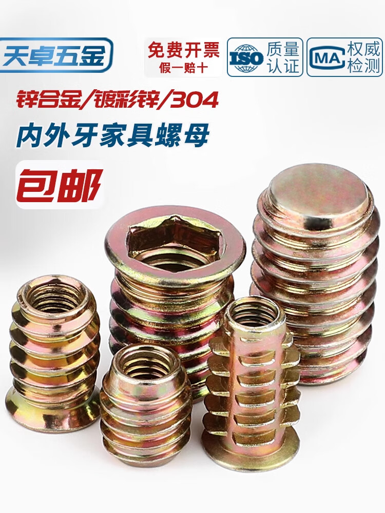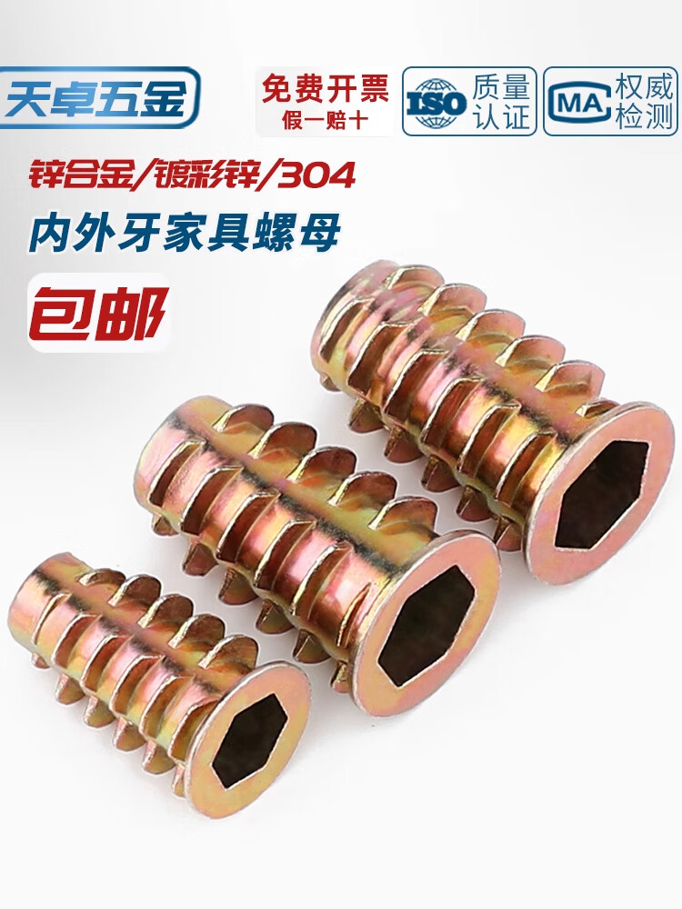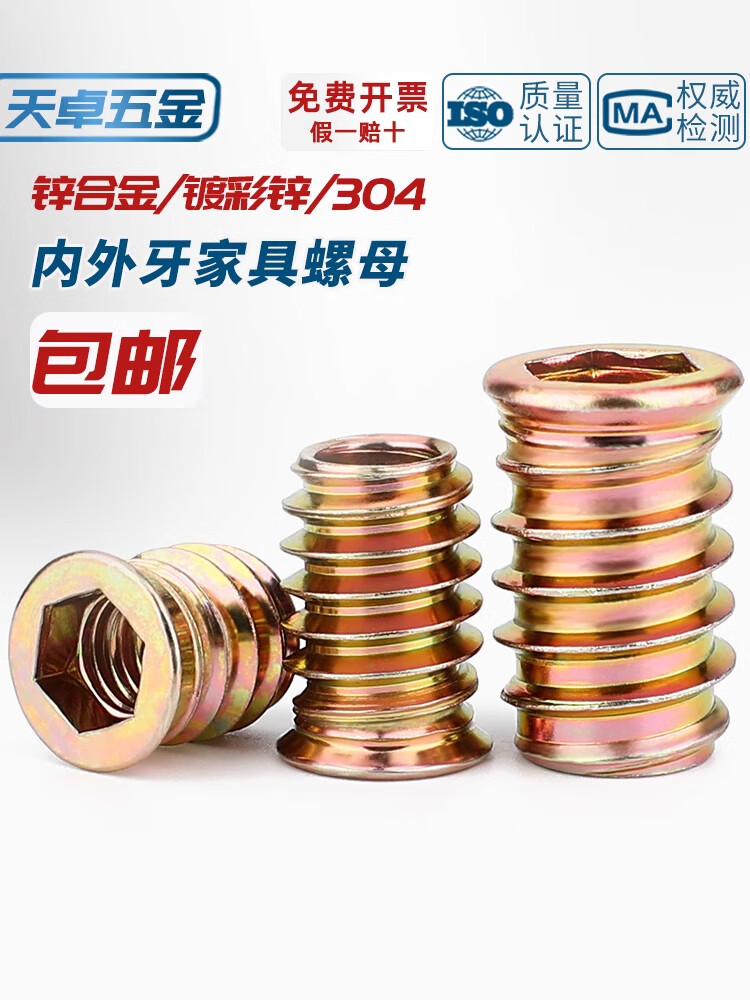 Tianzhuo Hardware Woodworking Internal and External Thread Nuts Countersunk Hexagonal Furniture Nuts Embedded Parts Trapezoidal Screw Caps MM4M5M6M8M10 with Intermediate M4*10 (50 pcs) Zinc Alloy