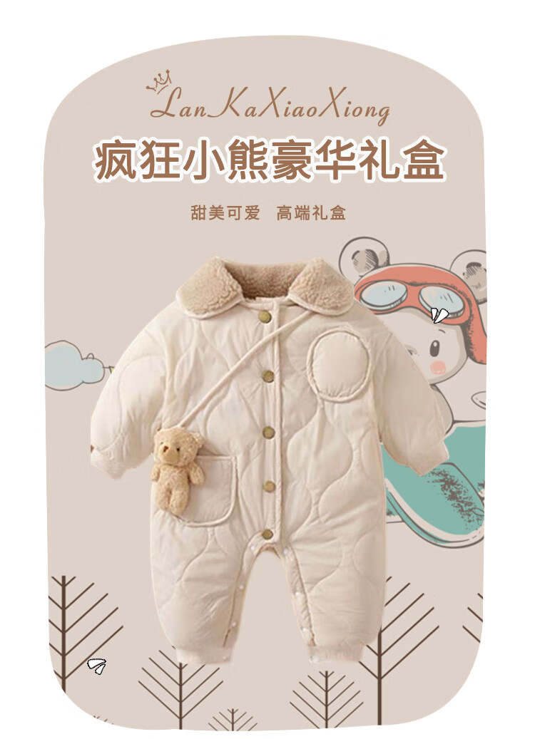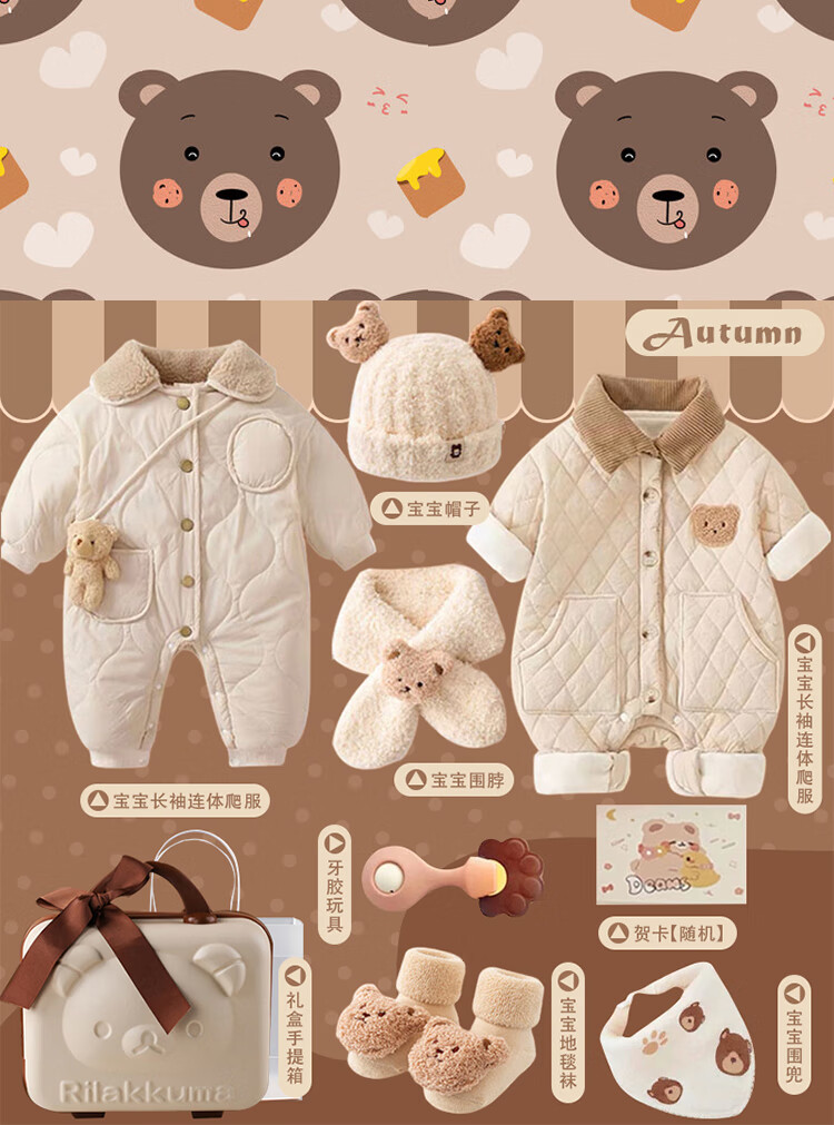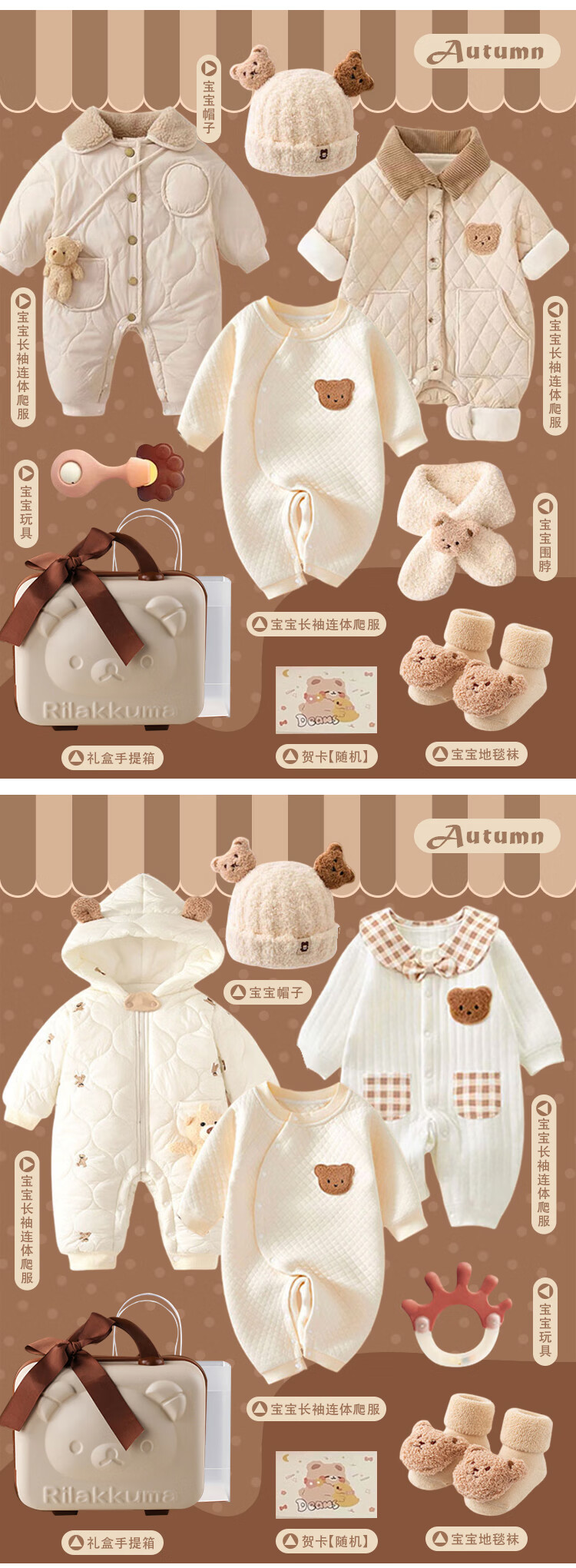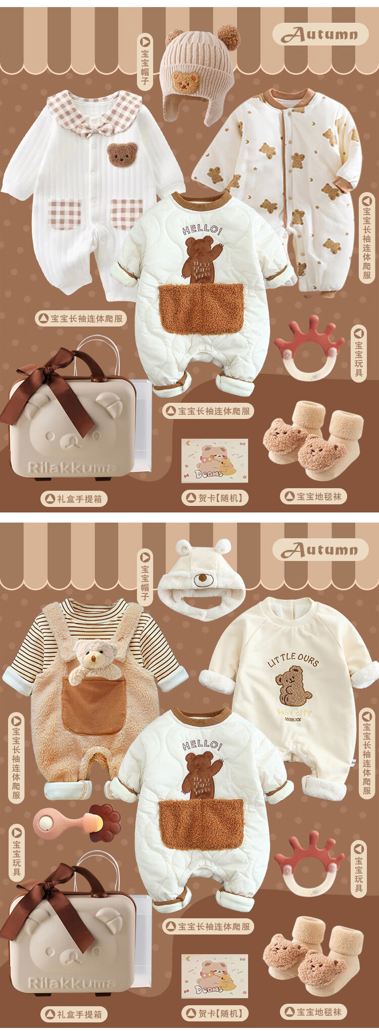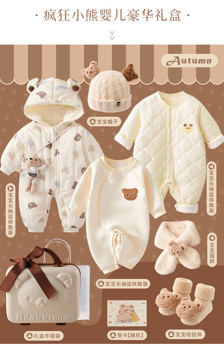 Lan Ka xiao xiong newborn baby meeting gift box, baby gift full moon gift set, high-end clothes for 100 days for pregnant women, autumn and winter Crazy Bear F style-gift box 66cm (baby 0-6 months) 100 days
