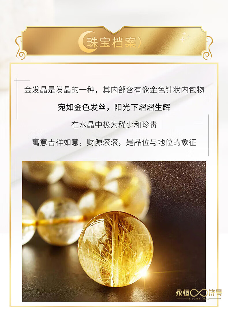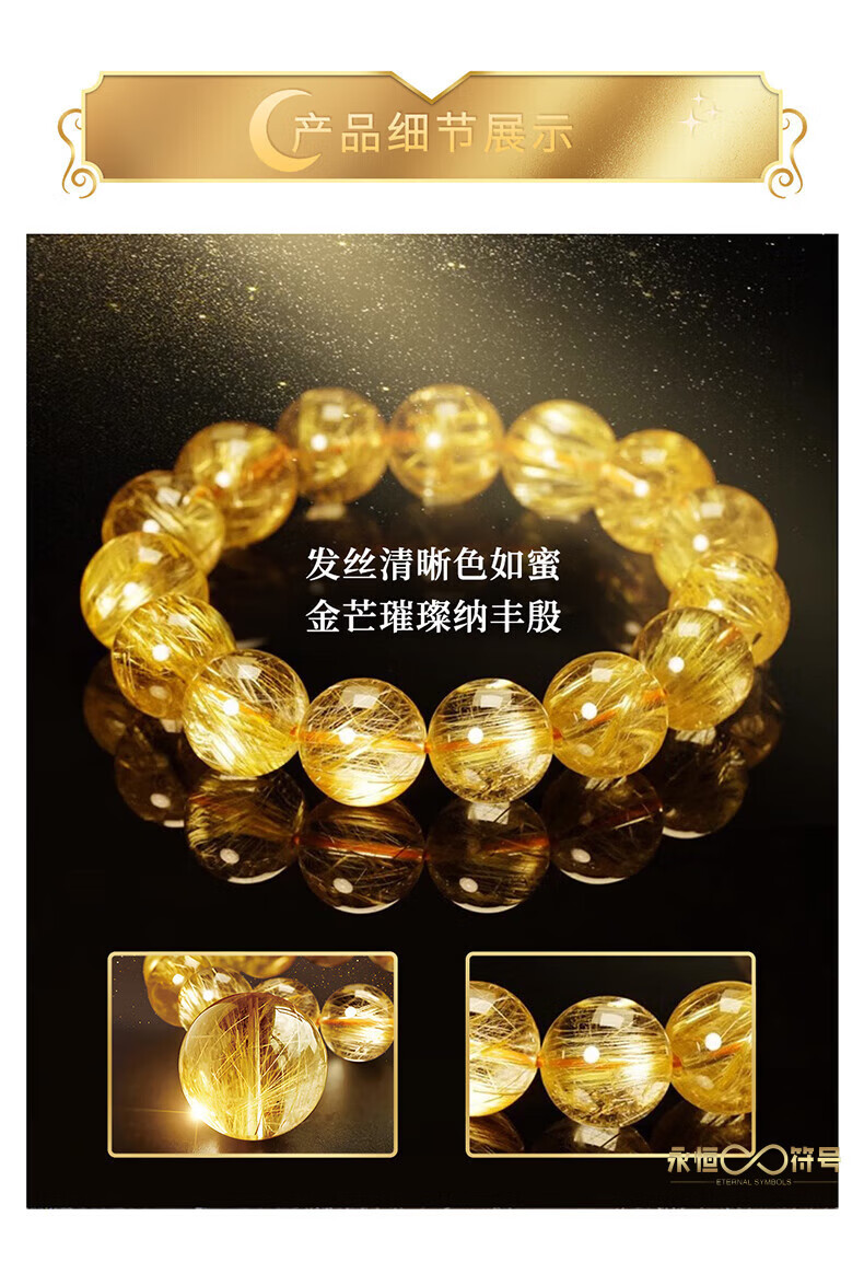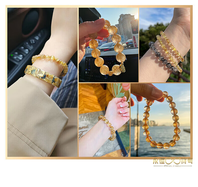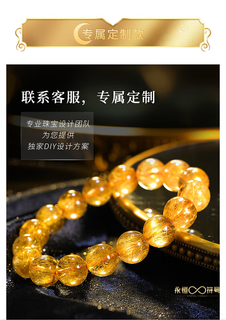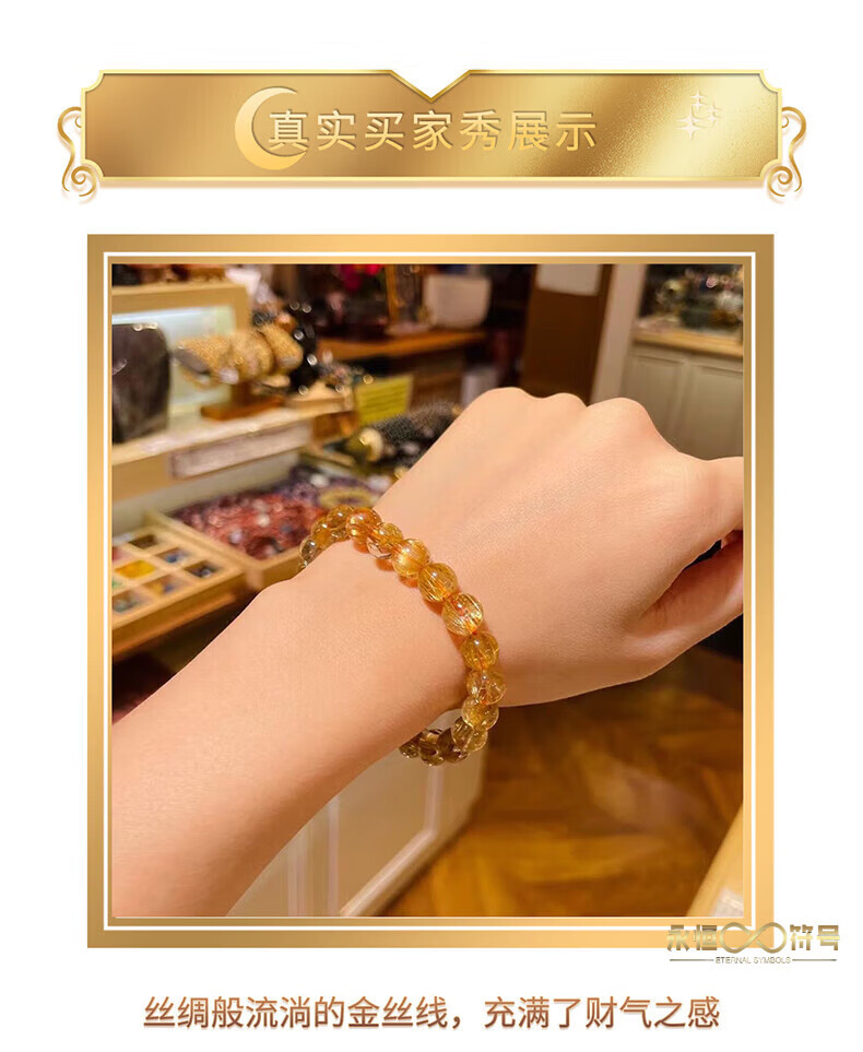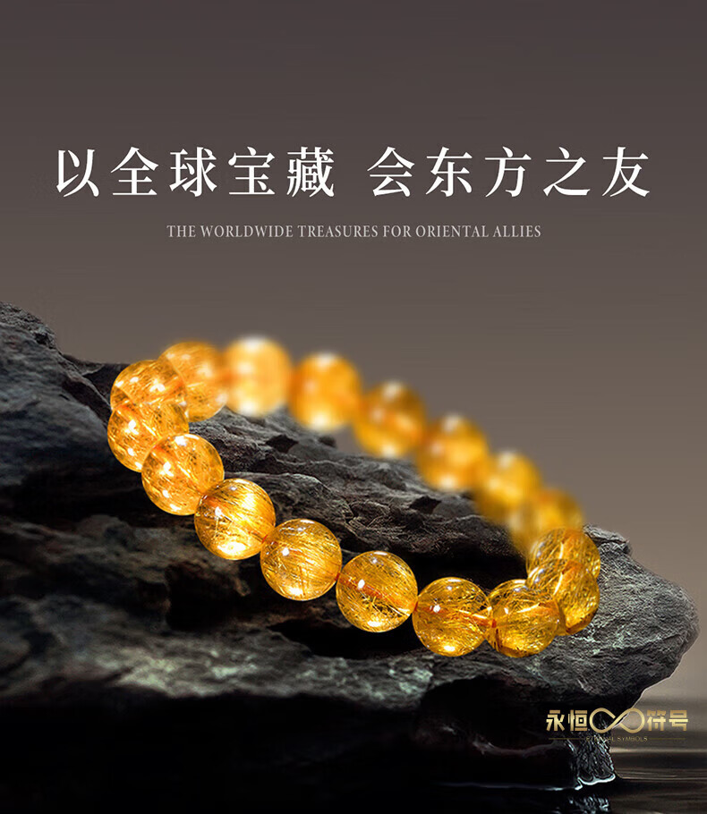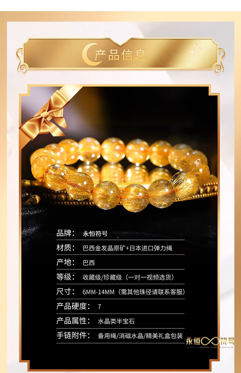Eternal Symbol Natural Blonde Crystal Raw Stone Bracelet for Women Brazilian Titanium Crystal Lucky Bracelet for Boys Birthday Gift Valentine's Day Collectible Blonde Crystal 8mm Gift Box