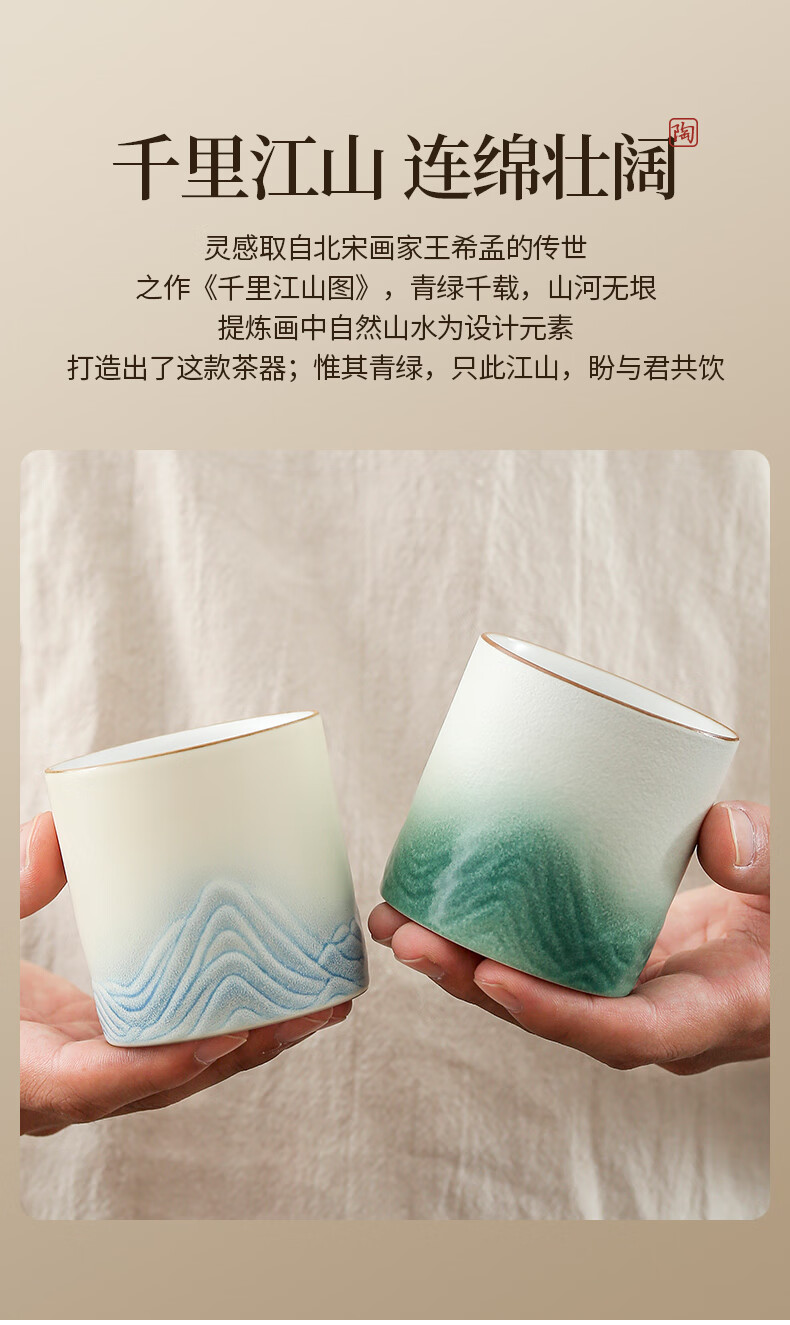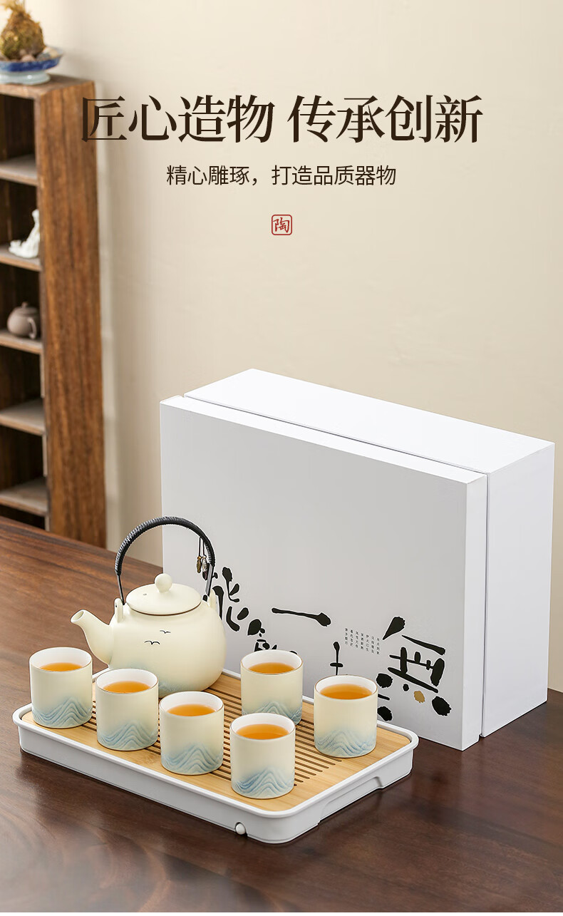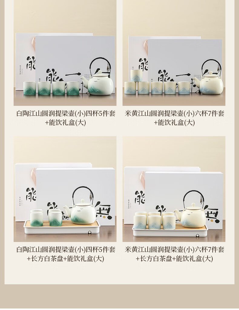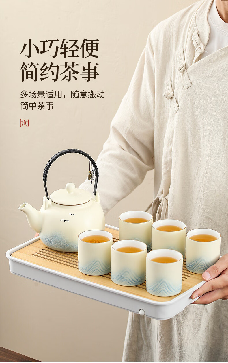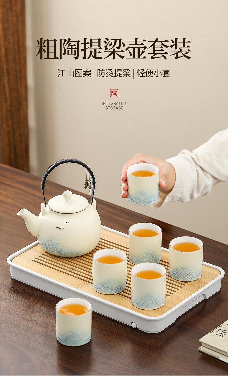 Xiangye large-capacity coarse pottery lifting kettle Kung Fu tea set tea set teapot tea cup housewarming gift souvenir Mihuang Jiangshan round lifting kettle 7-piece set + tea tray