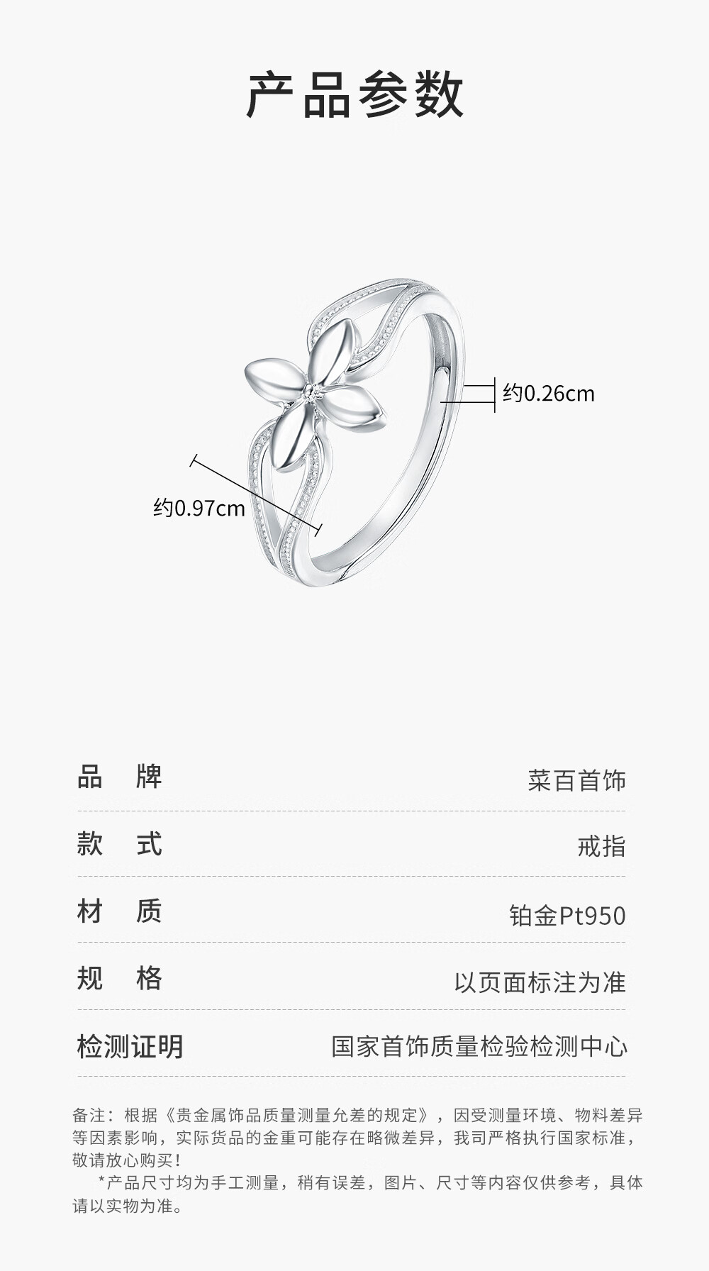 Caibai Jewelry Platinum Ring Pt950 Platinum Fashionable and Elegant Cross Flower Live Ring Price BJ Platinum Ring Approximately 3.25g