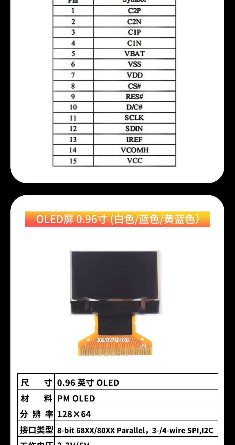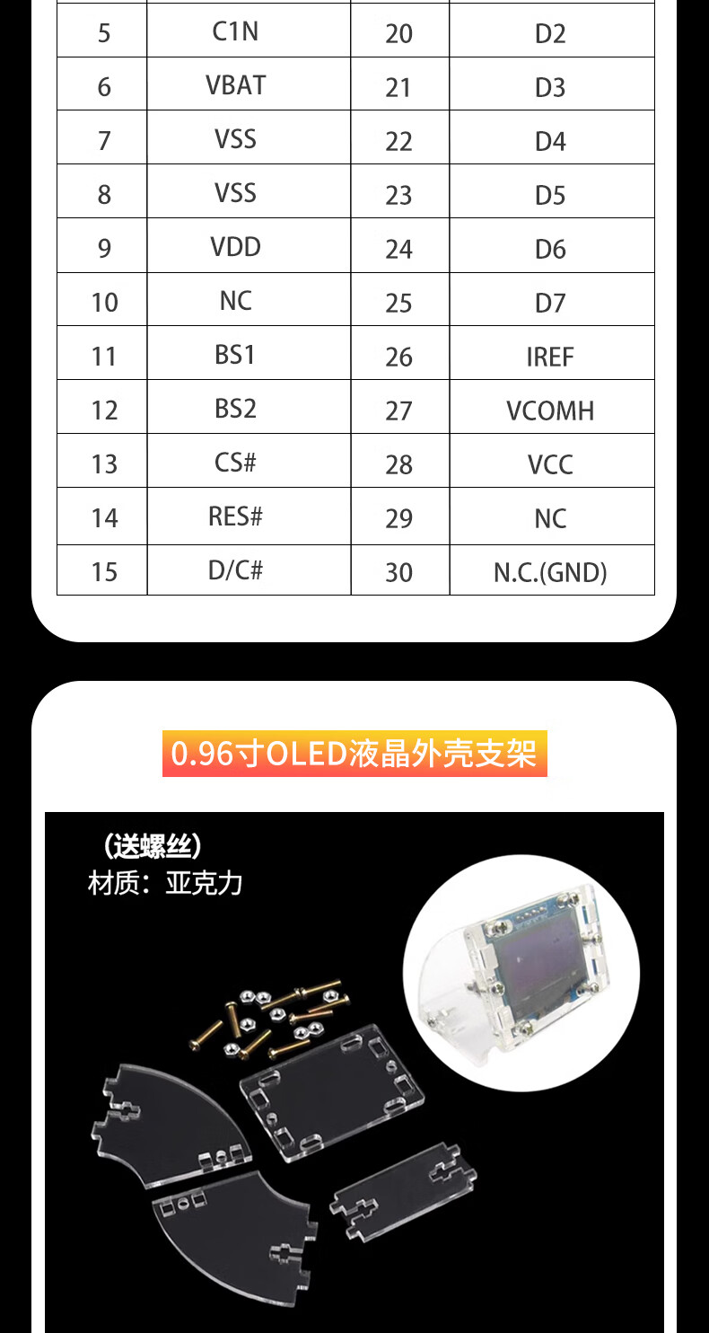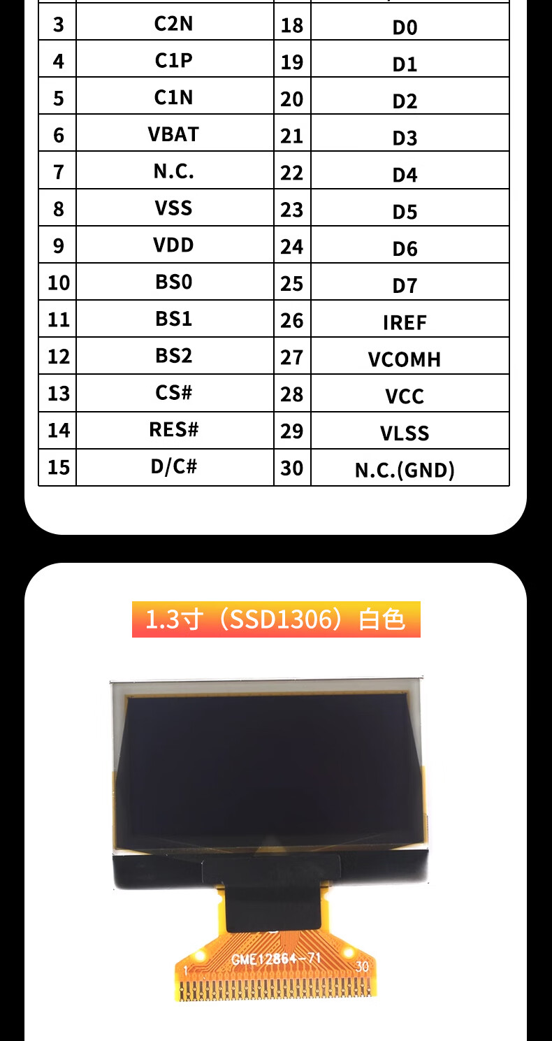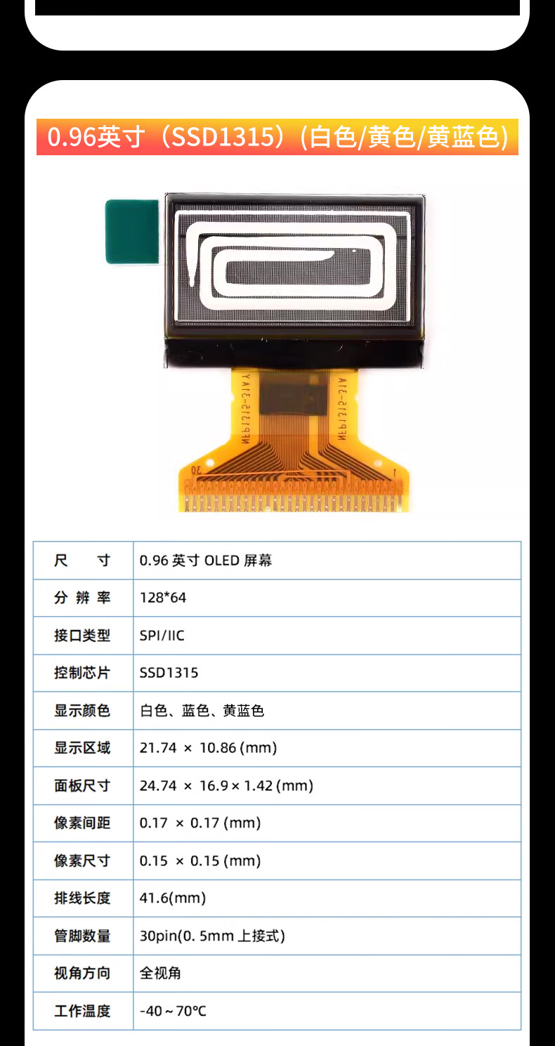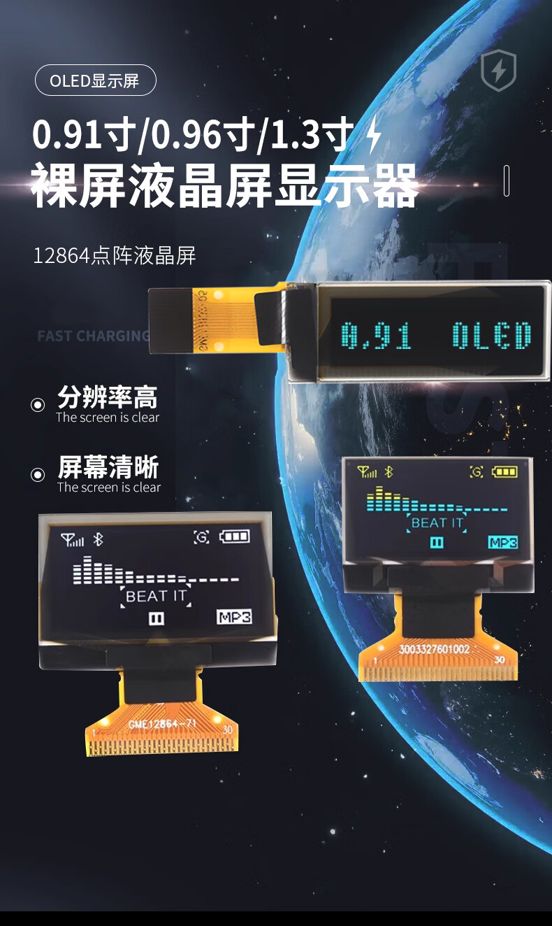 OLED display 0.91 inch/0.96 inch/1.3 inch bare screen LCD display 12864 dot matrix LCD screen OLED screen 0.96 inch white Please consult customer service for quotation for large quantities