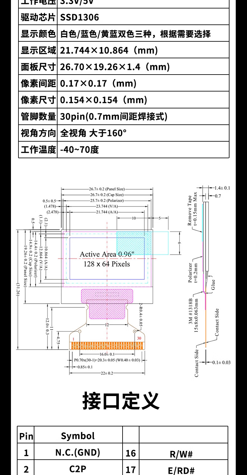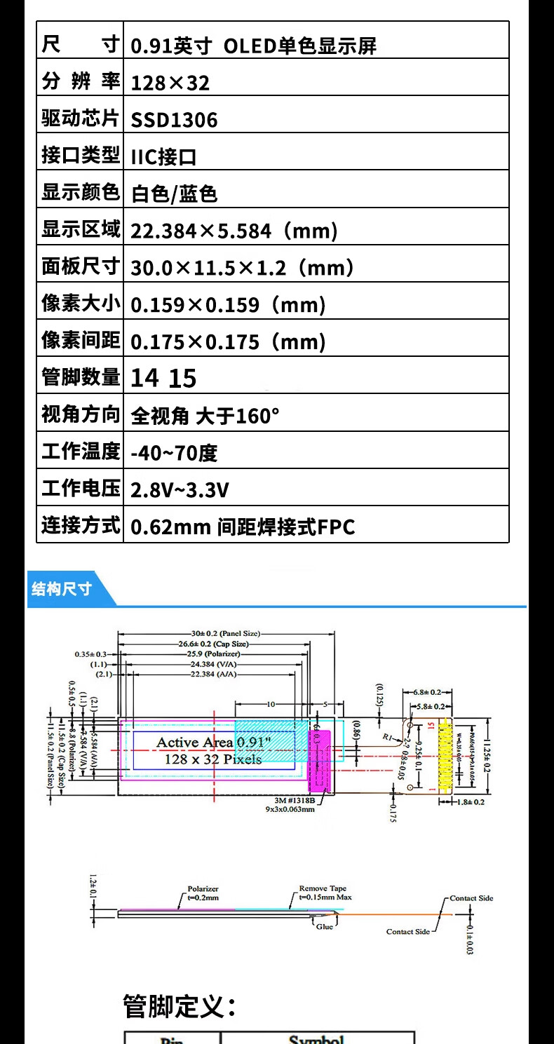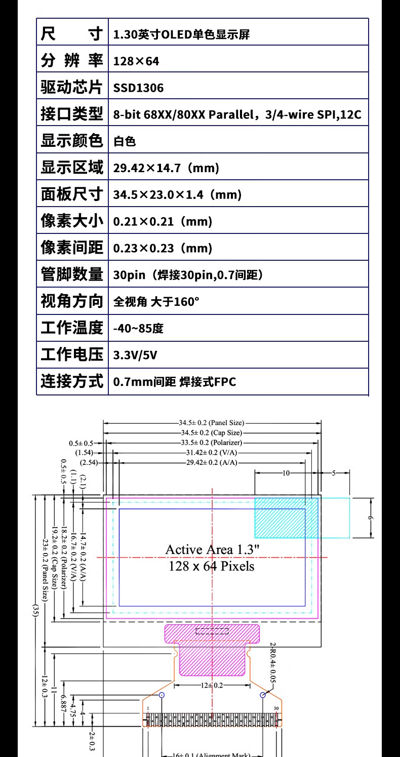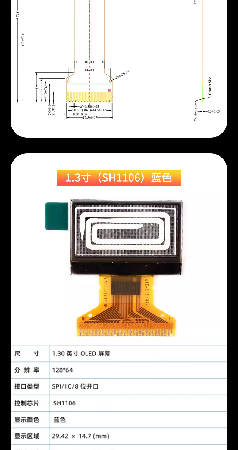 OLED display 0.91 inch/0.96 inch/1.3 inch bare screen LCD display 12864 dot matrix LCD screen OLED screen 0.96 inch white Please consult customer service for quotation for large quantities