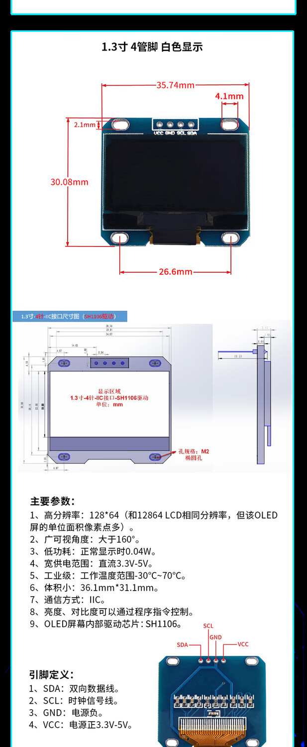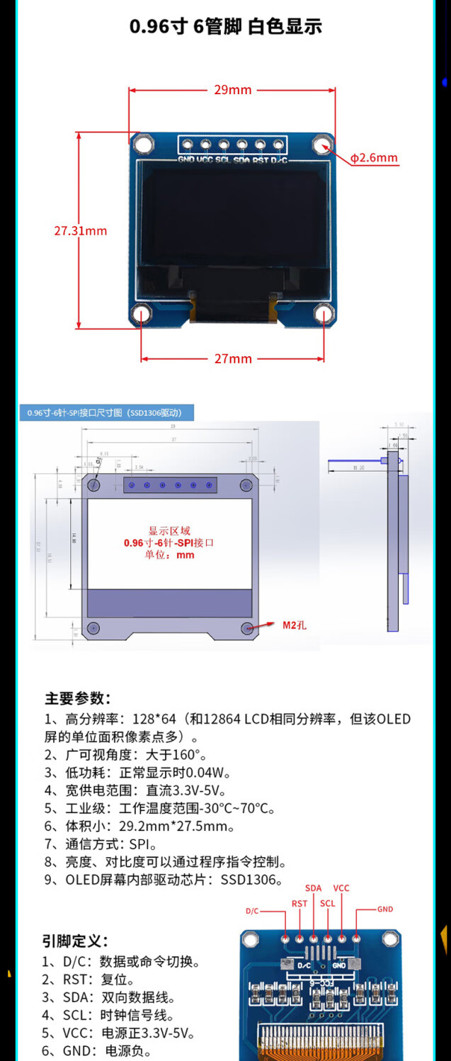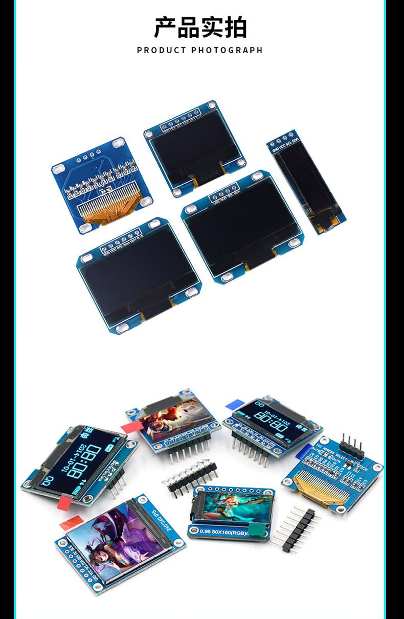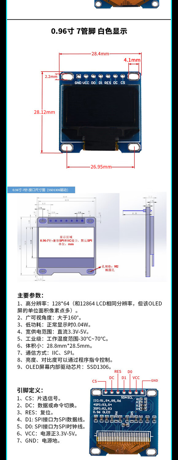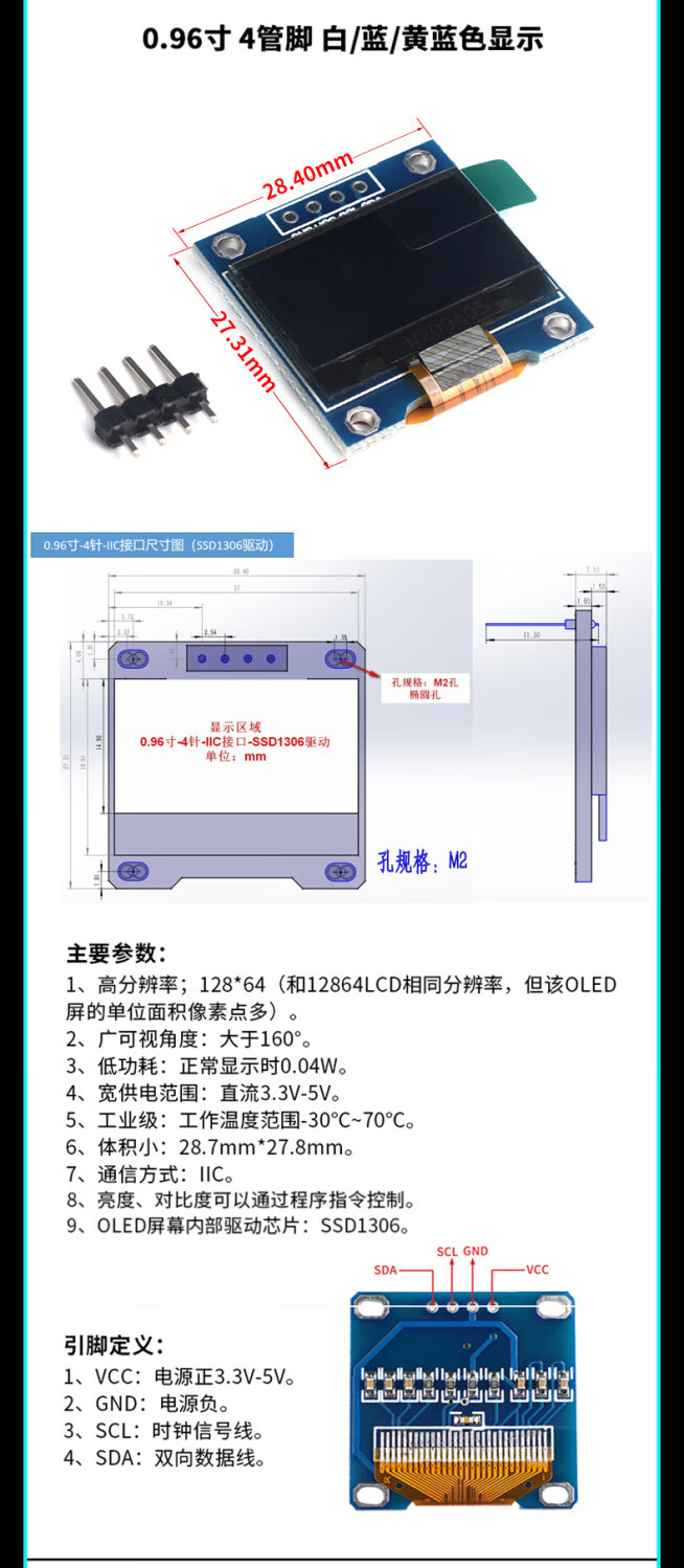 12864 screen 0.96-inch OLED display module 0.91 1.3-inch 1.54-inch LCD screen 6/7-pin IIC/SP 0.91-inch 4-pin white soldered pin header For large quantities, please consult customer service for quotation