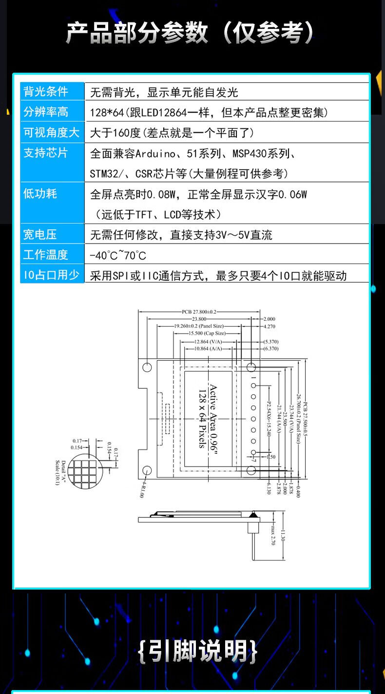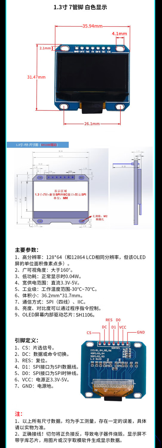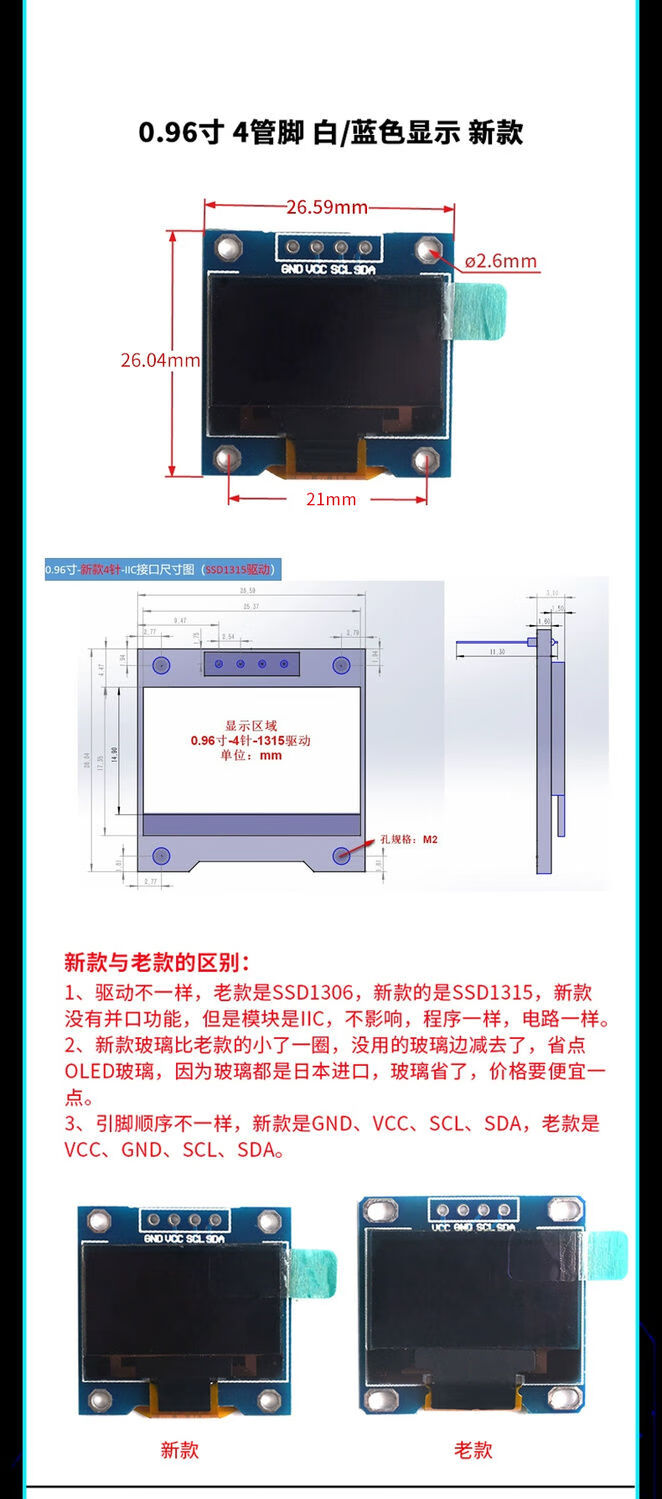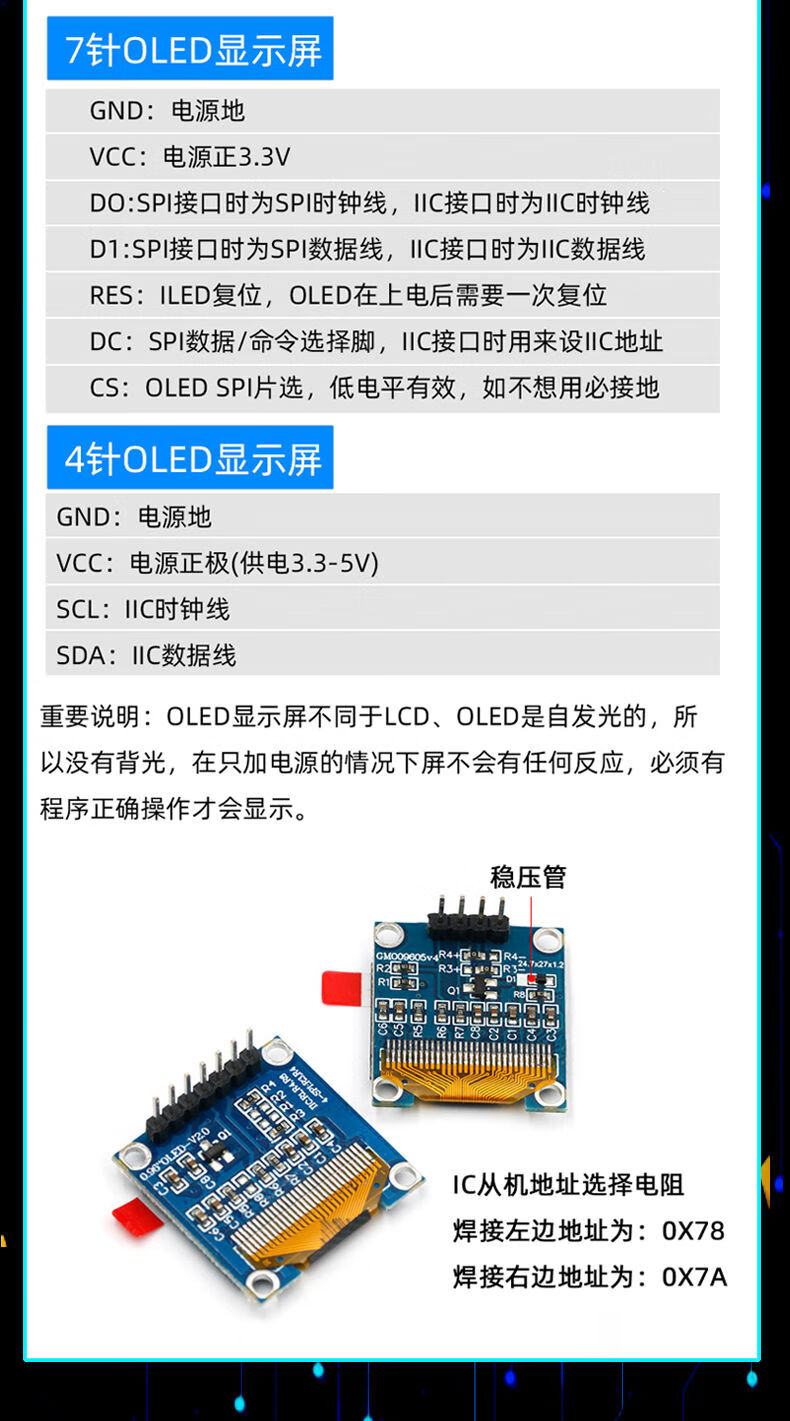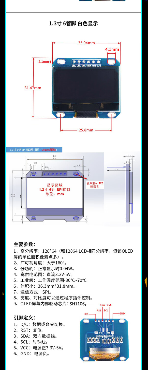 12864 screen 0.96-inch OLED display module 0.91 1.3-inch 1.54-inch LCD screen 6/7-pin IIC/SP 0.91-inch 4-pin white soldered pin header For large quantities, please consult customer service for quotation