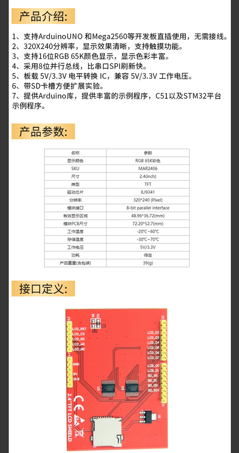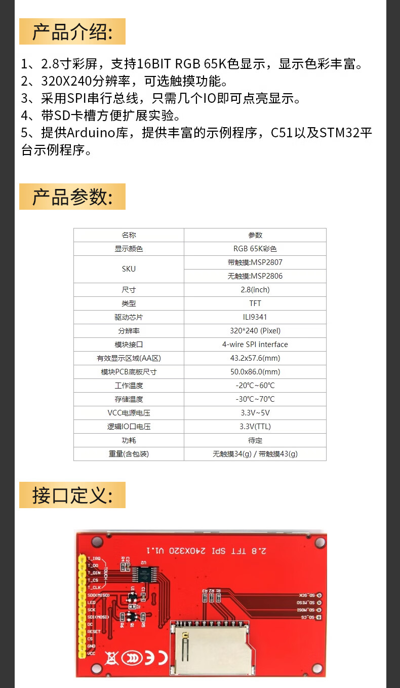 DZYJ color LCD screen module 1.8/2.0/2.4/2.8/3.2/3.5-inch TFT touch display SPI color screen 3.2-inch touch screen SPI 14p pin header
